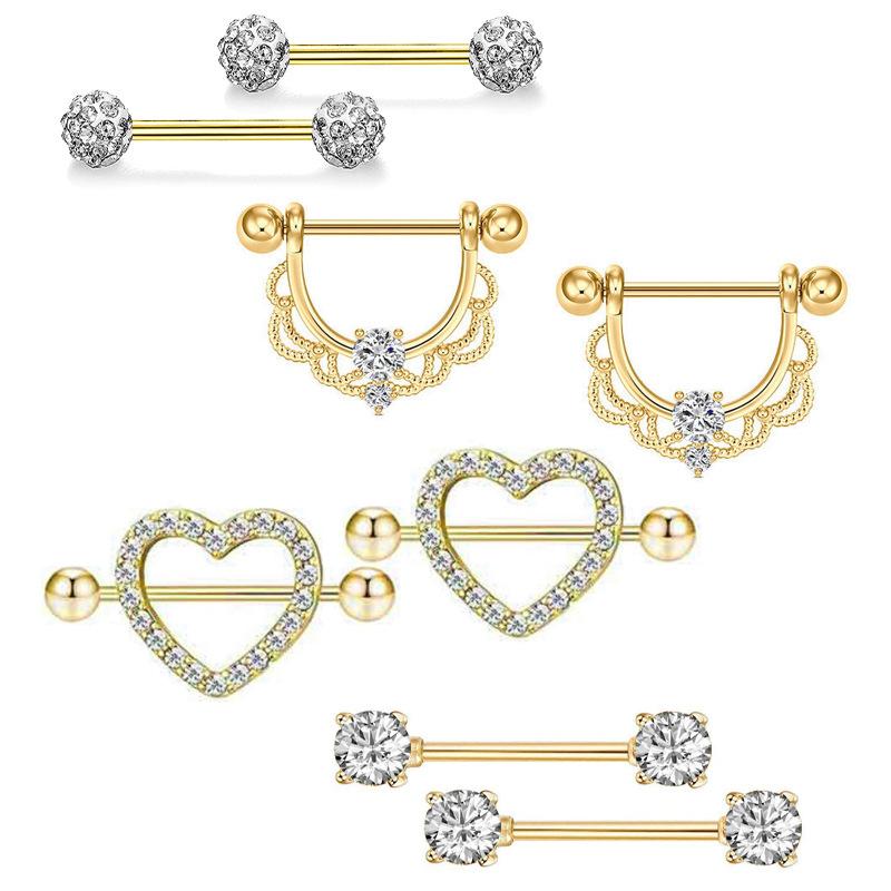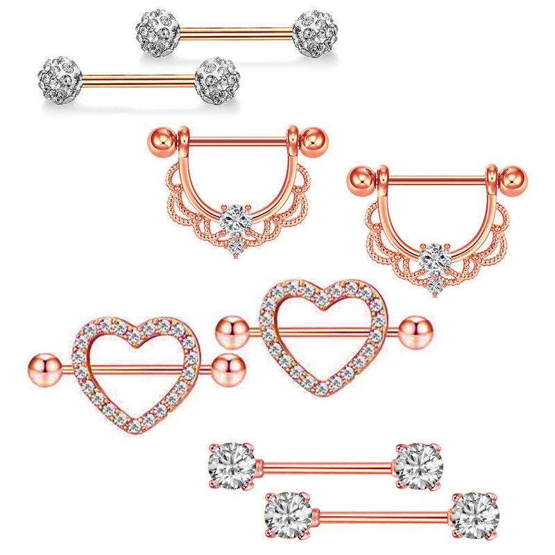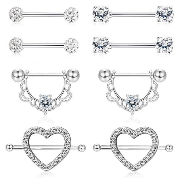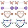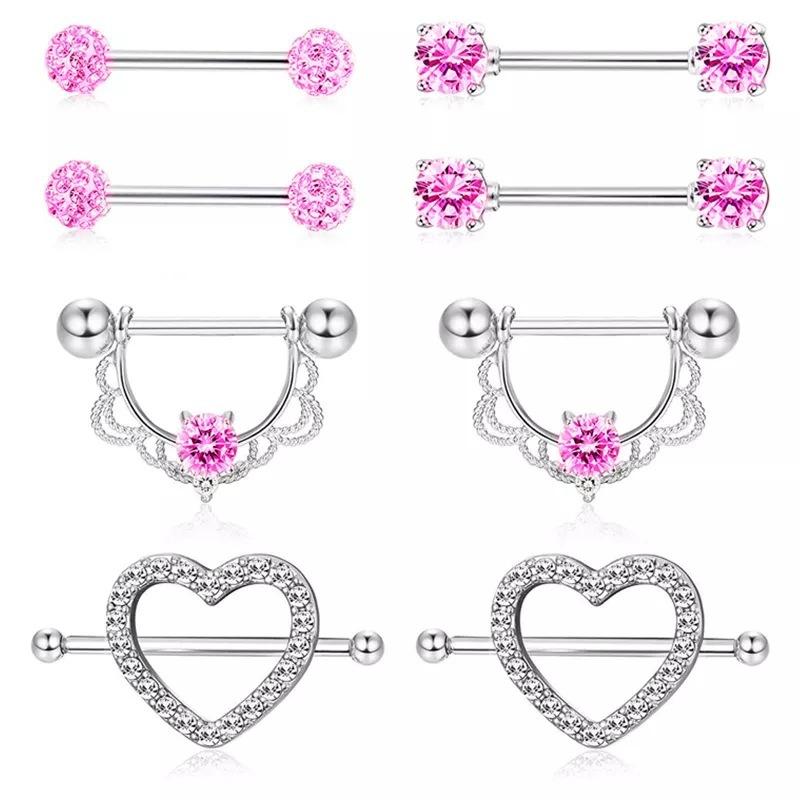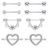 Anillos para pezones de acero inoxidable transfronterizo juego de 8 piezas corazón de durazno micro-set circonita multicolor tachuelas para pezones sexy anillos para lengua joyería para piercing