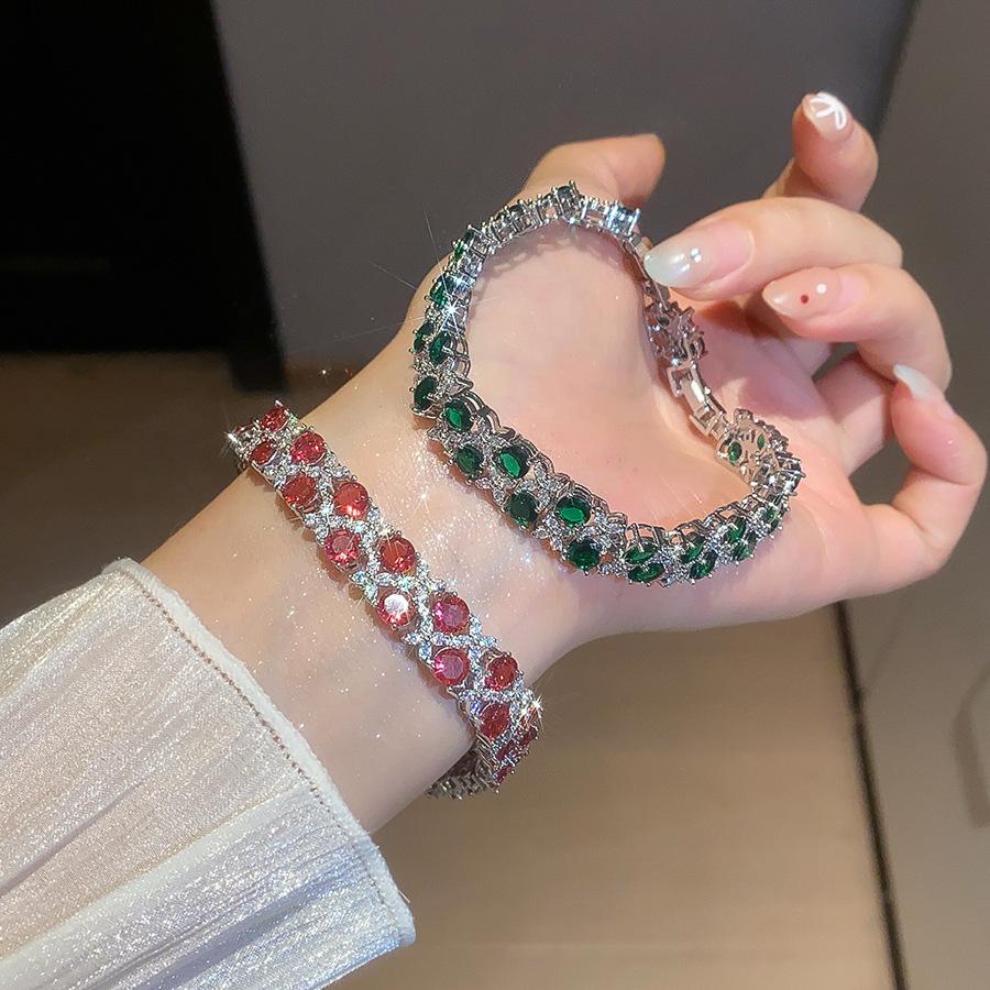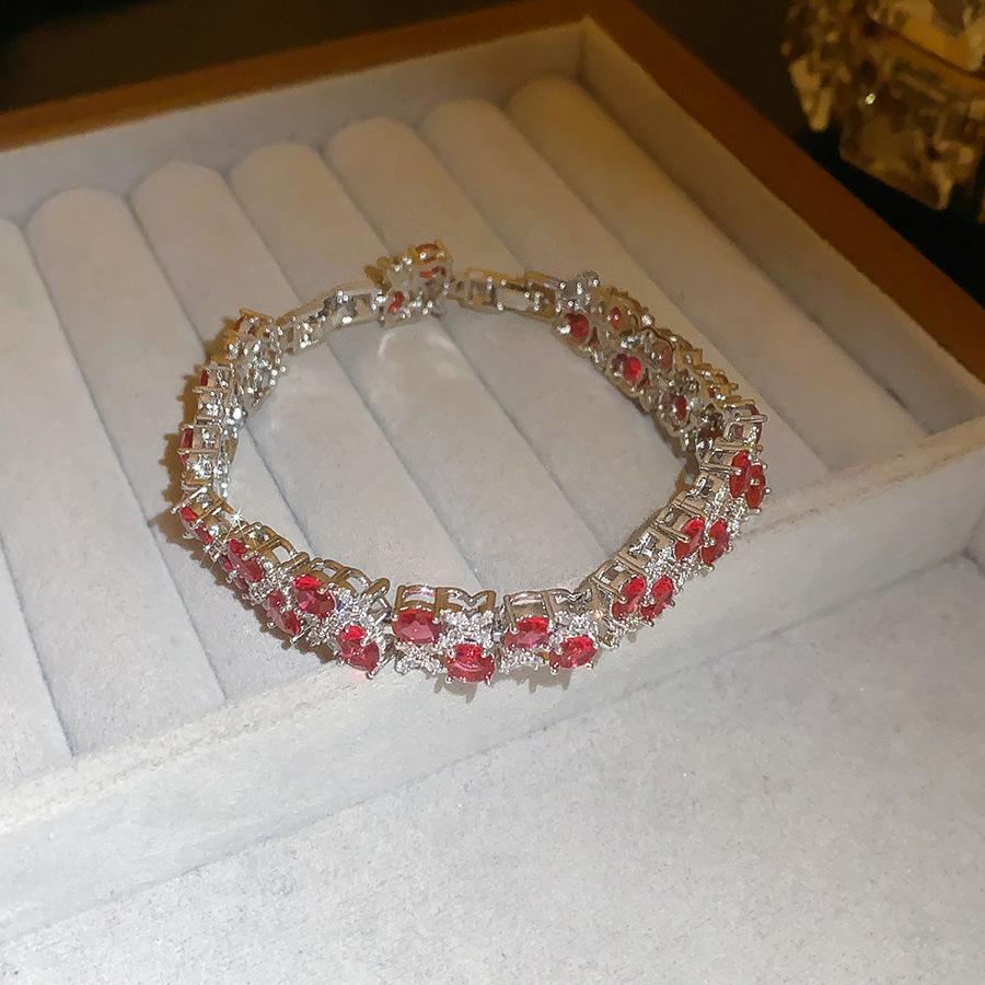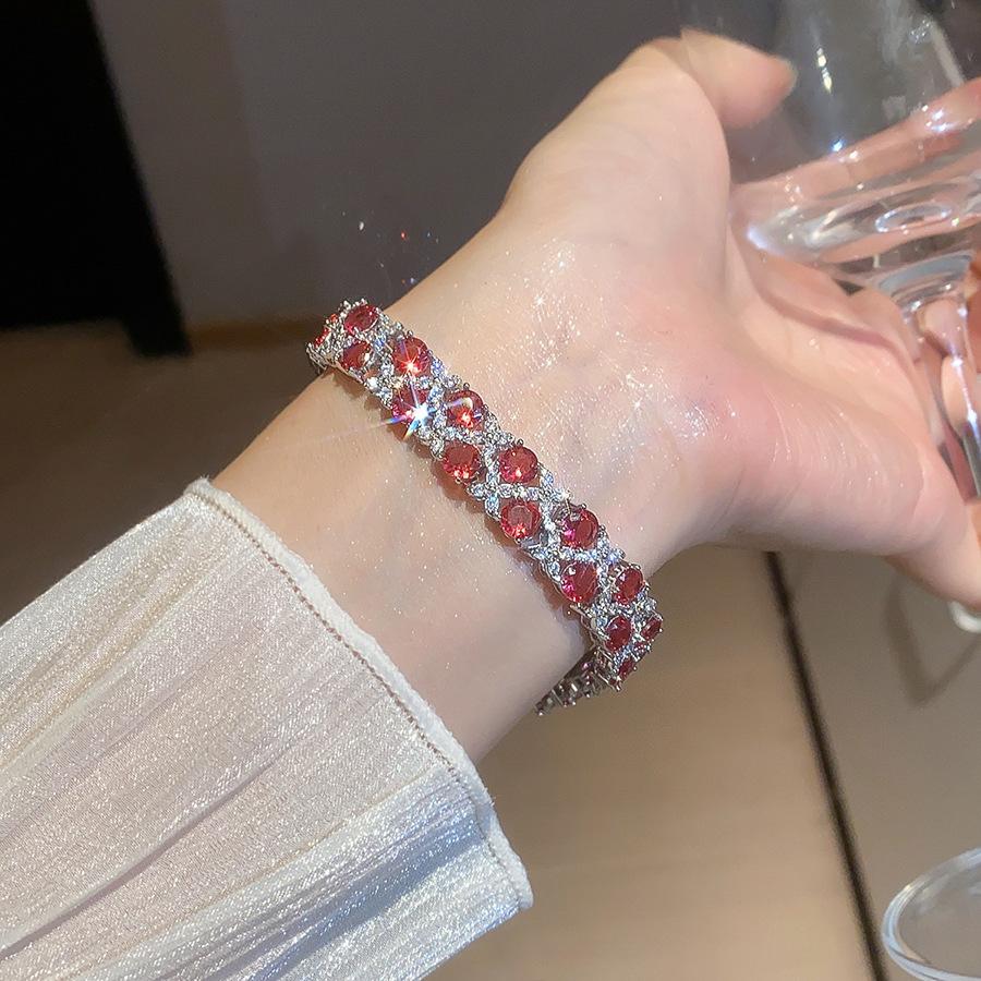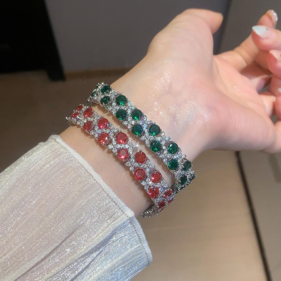 Pulsera de Cierre de Flor de Doble Capa de Zirconia Super Brillante Lujo Ligero de Alta Gama Exquisita Pulsera Personalidad Moda Versátil Joyería de Mano Mujeres