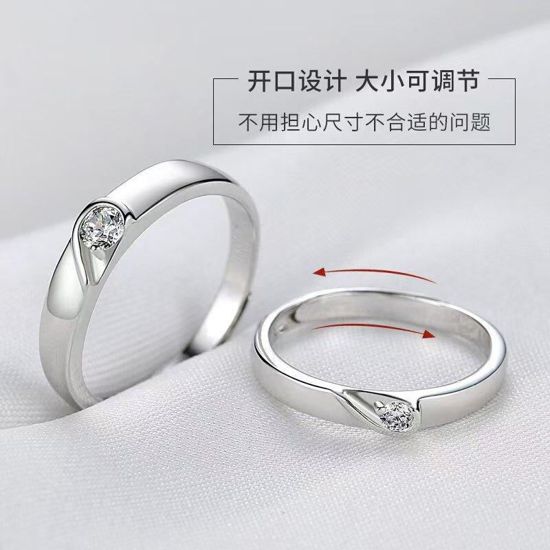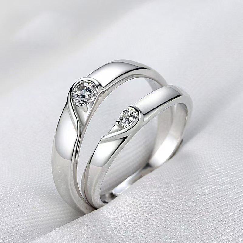 Anillo de Pareja Un Par de Anillos Sencillos de Moda Elegantes para Hombre y Mujer Estilo Coreano Combinable Anillo de Circonia Apertura Anillo de Diamante de Simulación para Boda