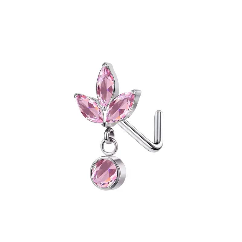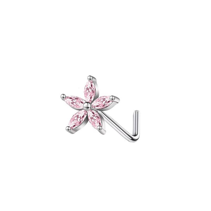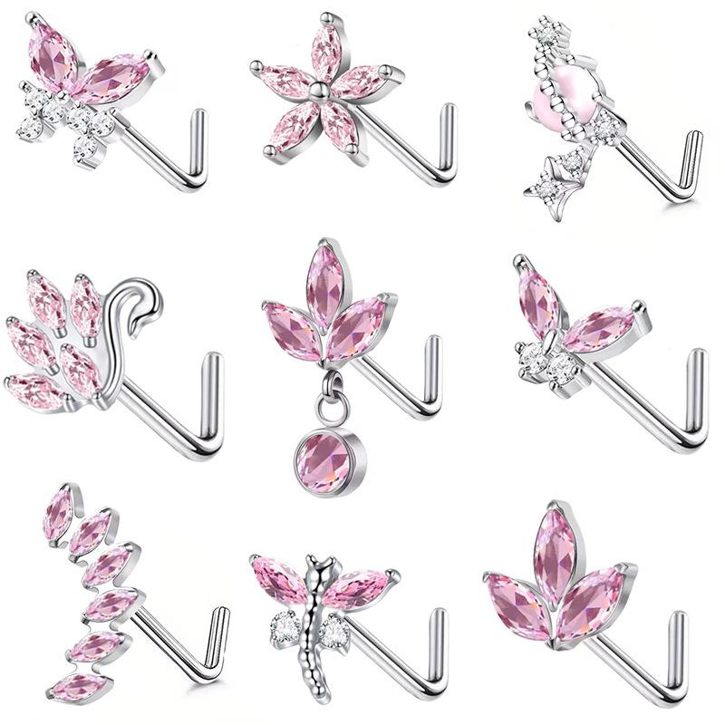 Set de 9 piezas de piercing de nariz de acero inoxidable transfronterizo serie rosa varios estilos incrustados con circonita anillo de nariz súper brillante piercing de moda