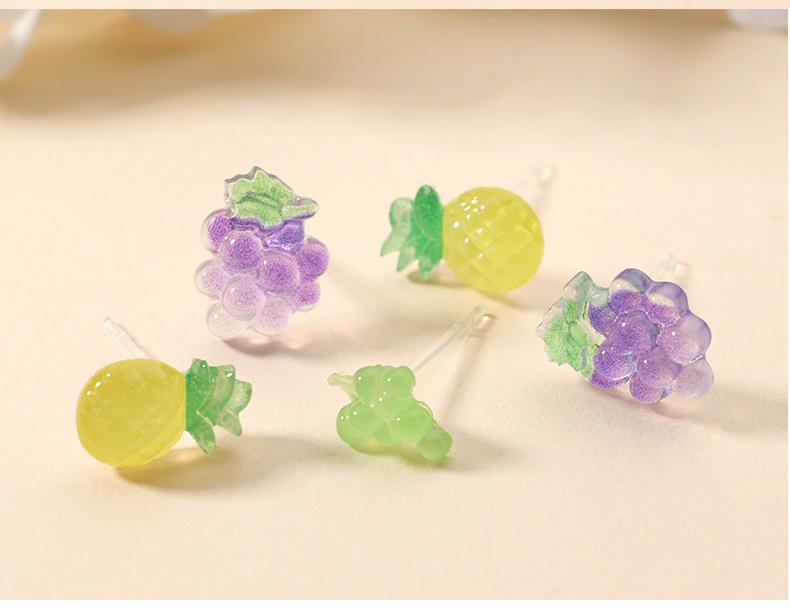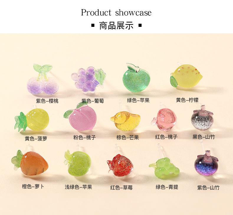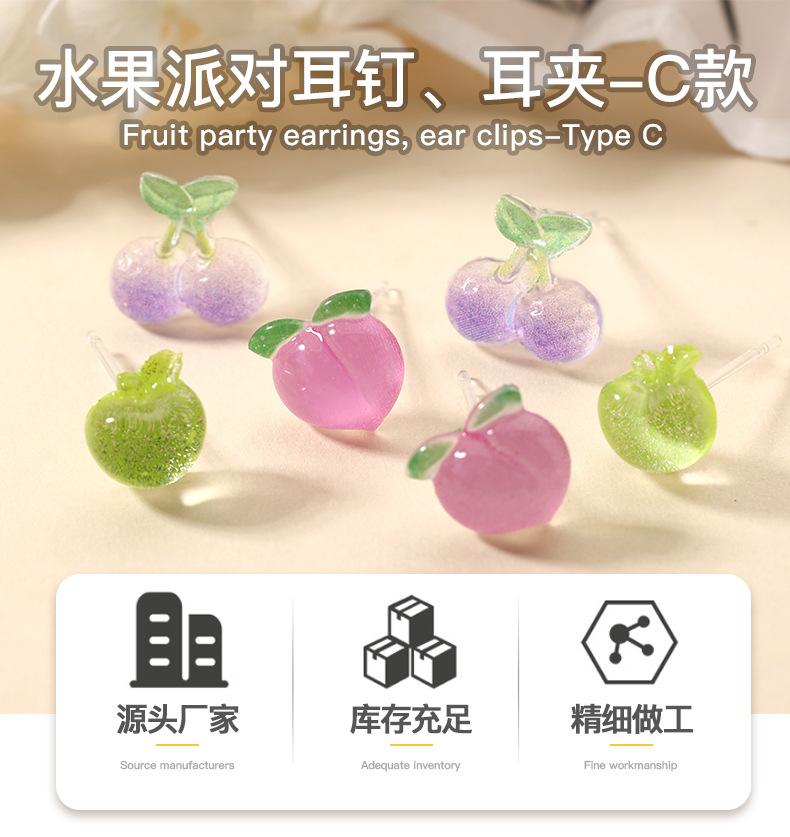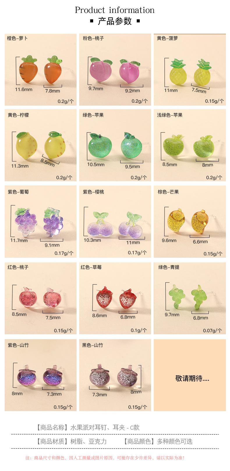 Mini joyería estilo coreano resina acrílica serie de frutas tridimensionales fresa cereza aretes de botón clips para orejas simple estudiante mujeres
