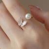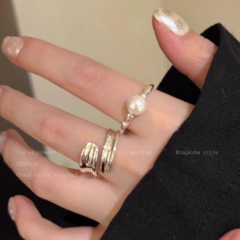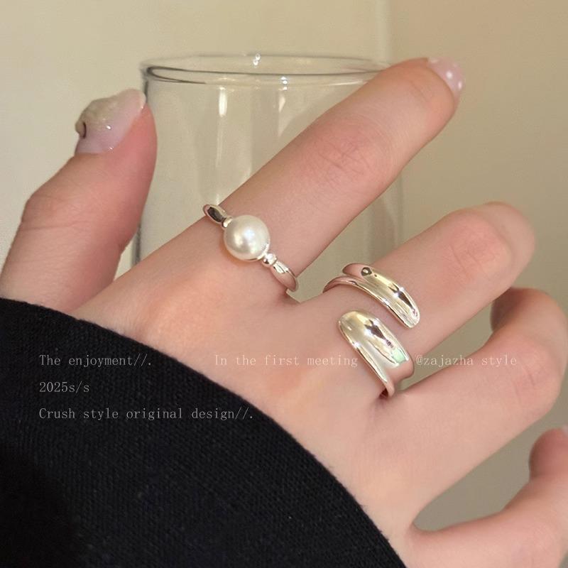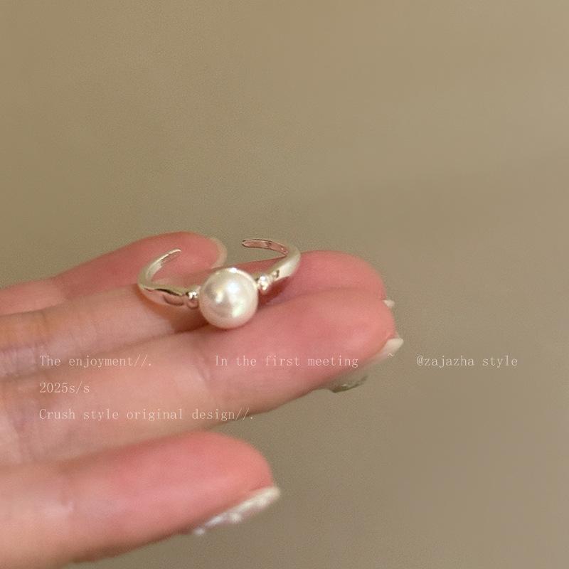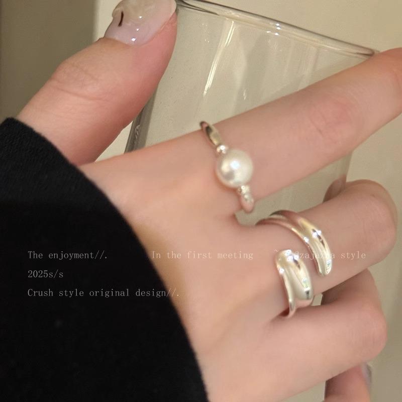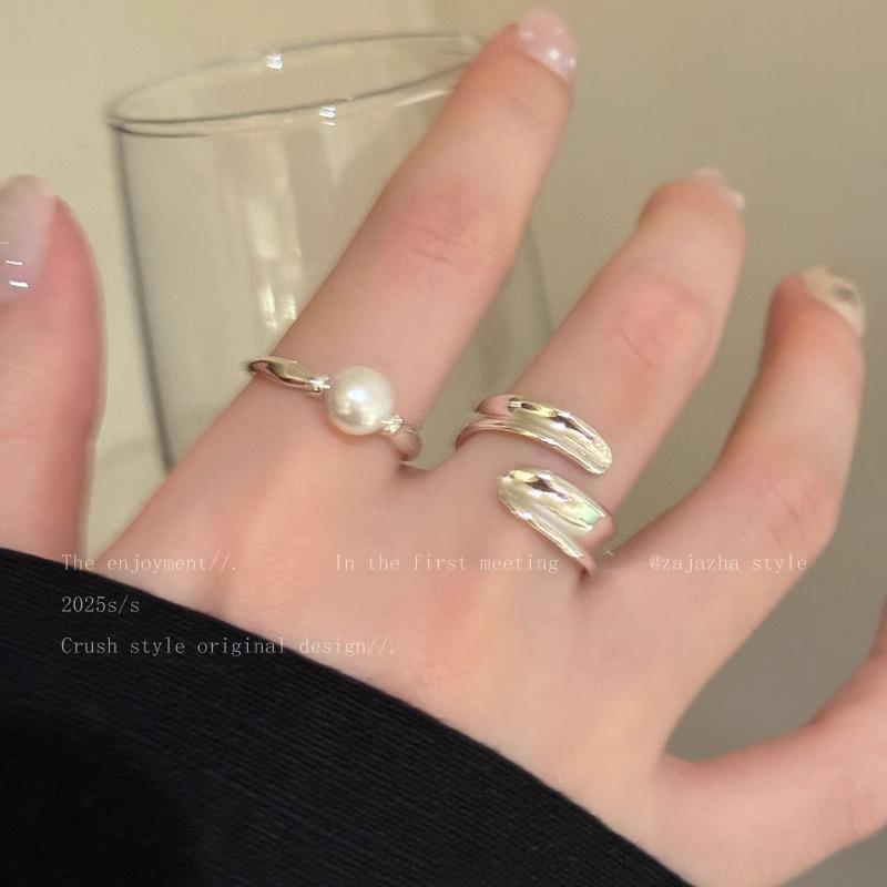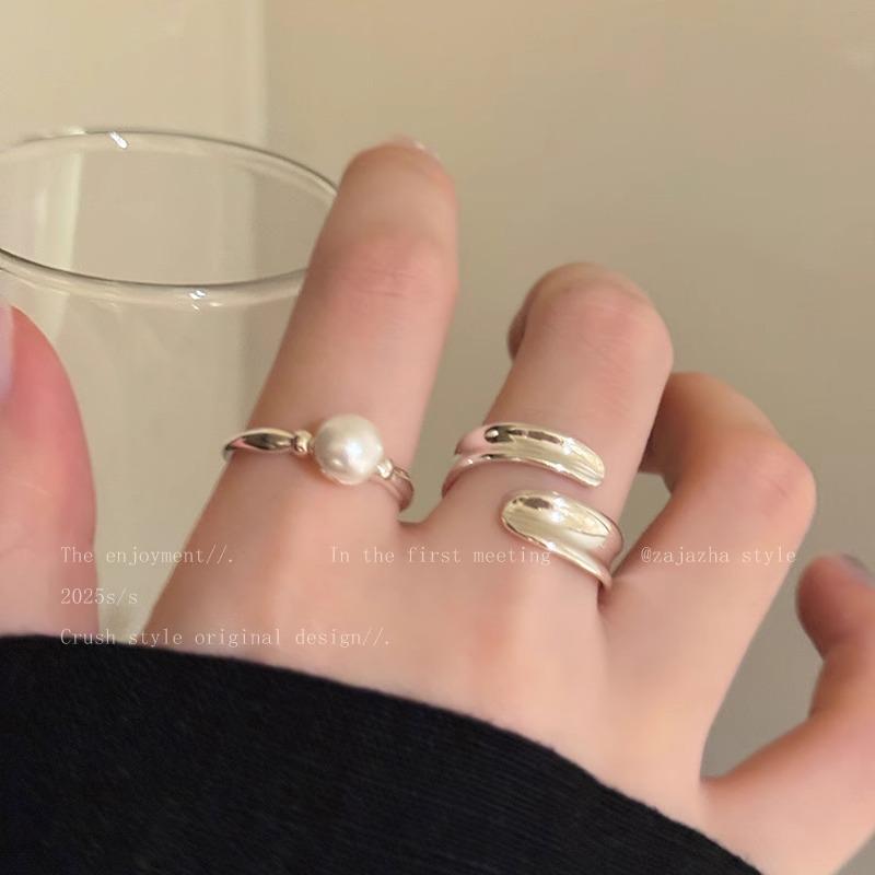 Anillo Suave de Metal con Perla Estilo Francés para Dedo Índice Abierto Apilable Versátil Exquisito Nicho de Alta Gama Sencillo Anillo de Moda