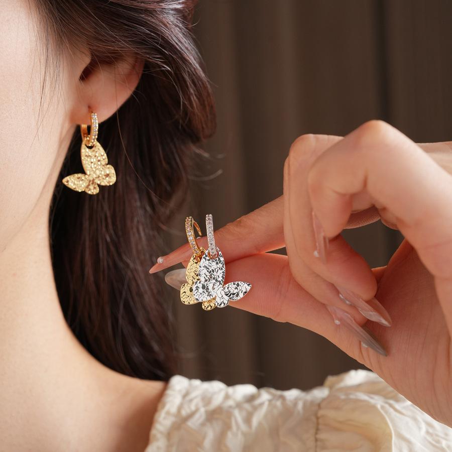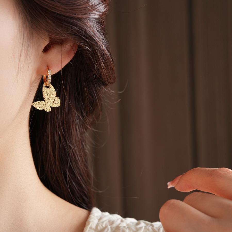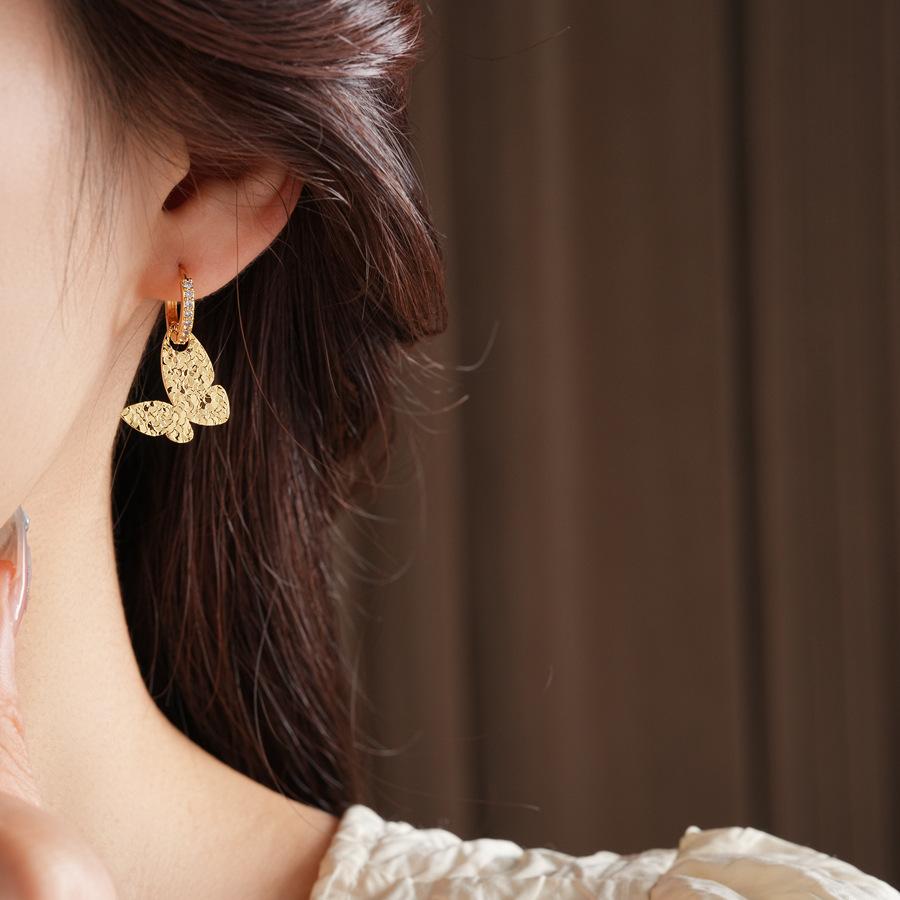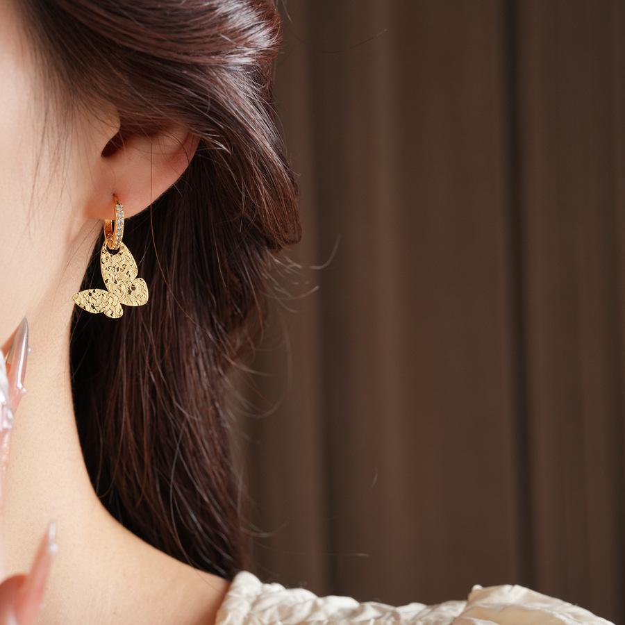 Oro de 18K Oro Real Electrochapado Mariposa Hebilla de Oreja Nicho Lujo Ligero Joker Aretes Lujo Ligero Alto Sentido Aretes Simples Venta al por Mayor