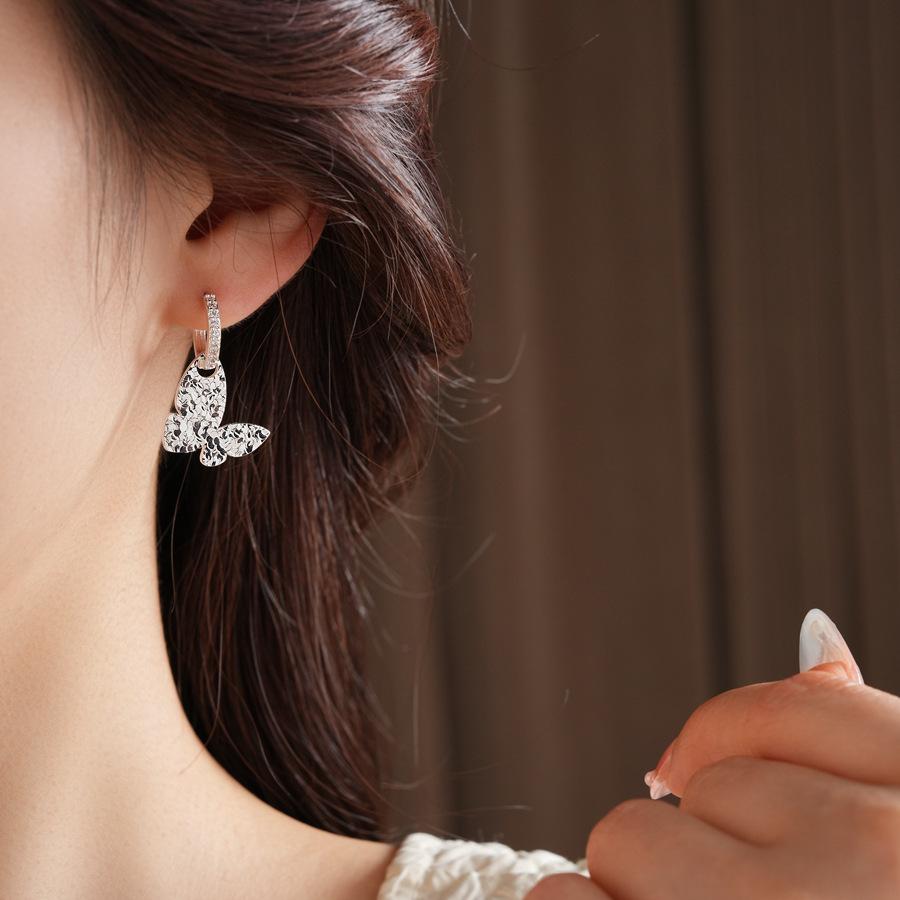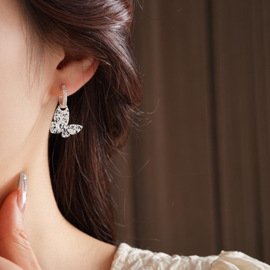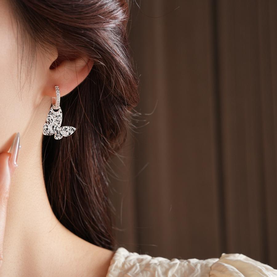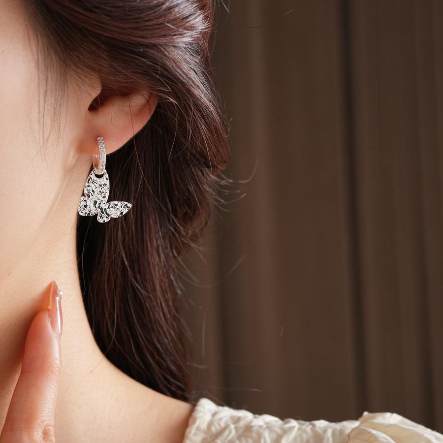 Oro de 18K Oro Real Electrochapado Mariposa Hebilla de Oreja Nicho Lujo Ligero Joker Aretes Lujo Ligero Alto Sentido Aretes Simples Venta al por Mayor