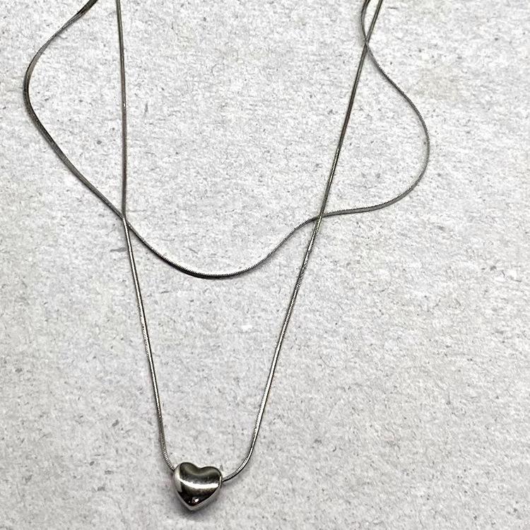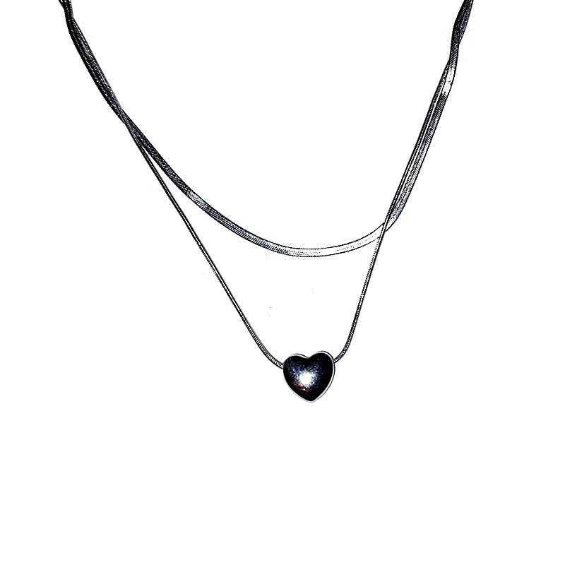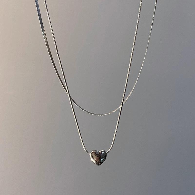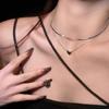 Collar de Amor de Doble Capa Plateado Estilo Frío para Mujer Diseño Nicho de Lujo Ligero Cadena Clavicular Apilada Accesorios Elegantes de Chica Picante