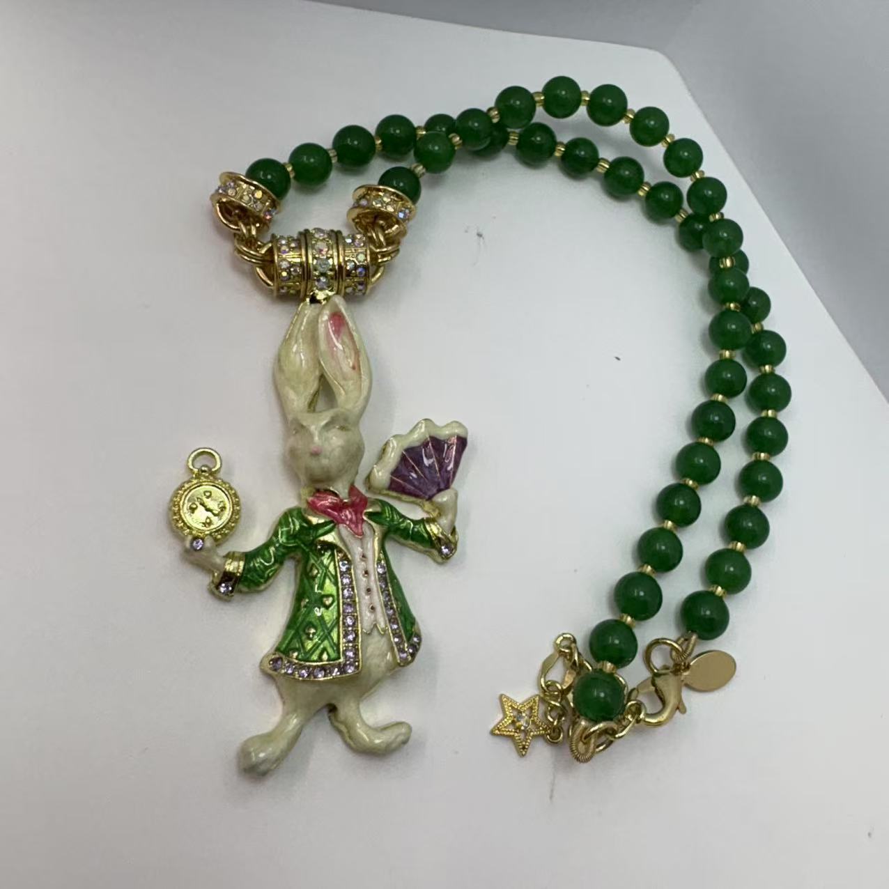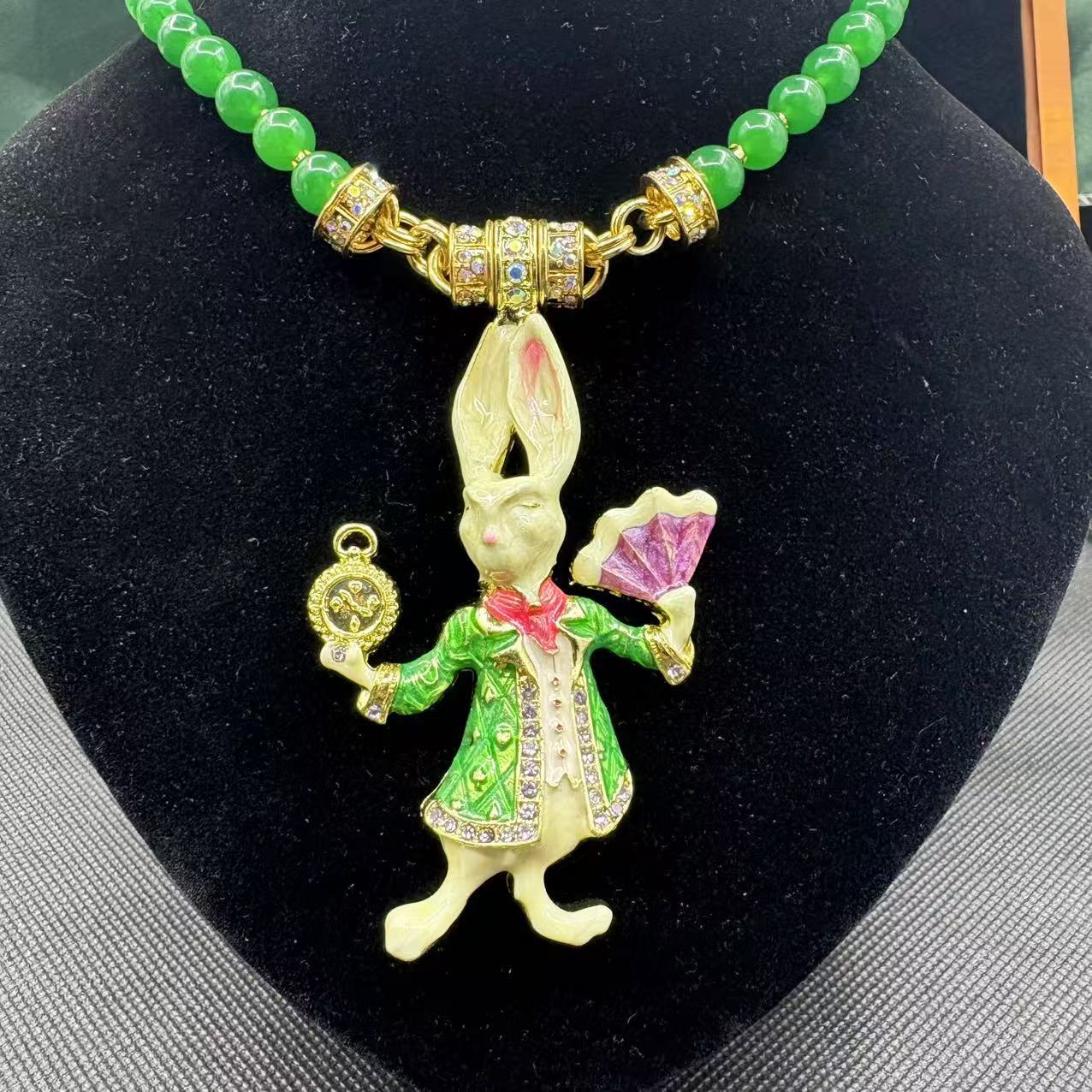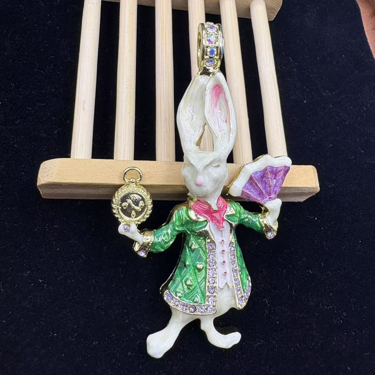 Exquisito Colgante Vintage con Tema de Animales, con Estras Checas Rosadas, con un Diseño de Conejo Caballero