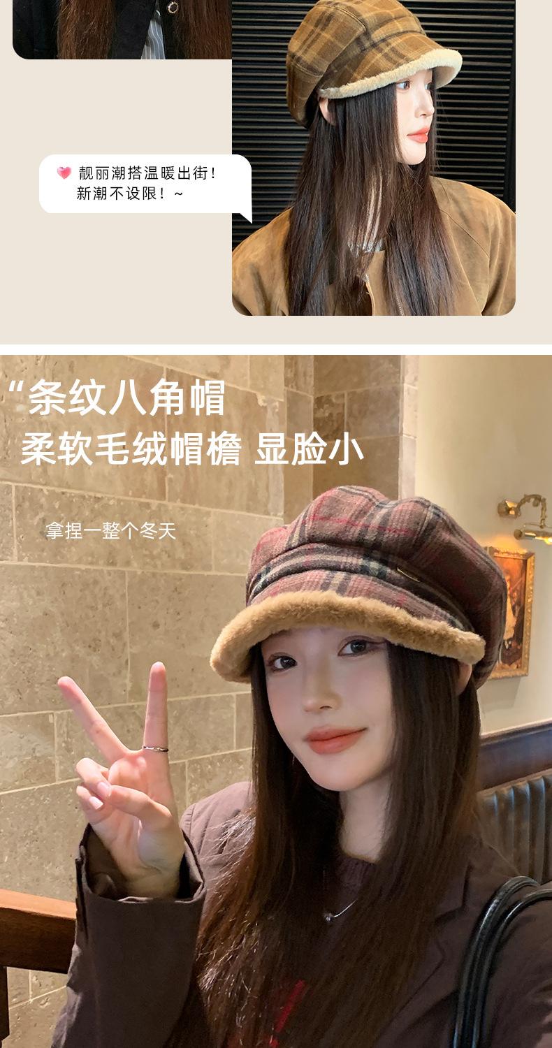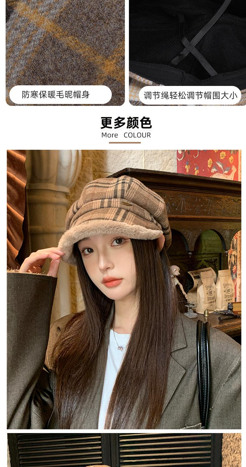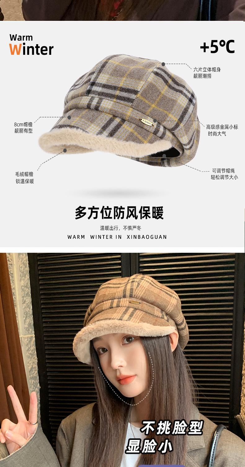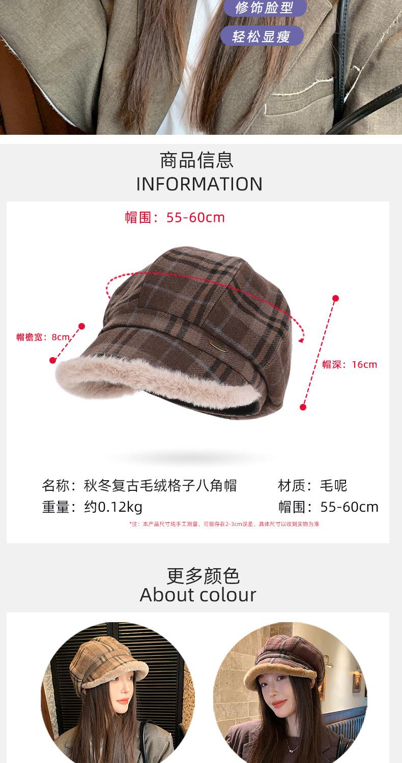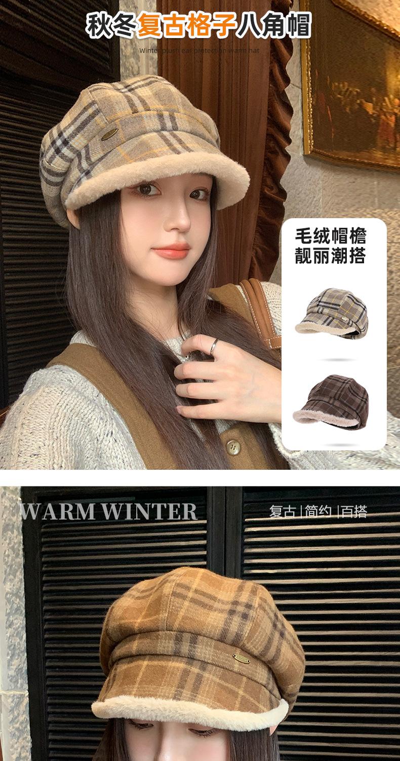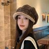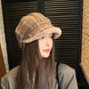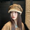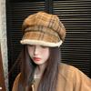 Sombrero octogonal retro de felpa cálido a cuadros de otoño e invierno versátil muestra cara pequeña boina de alta gama sombrero de pintor de pico de pato