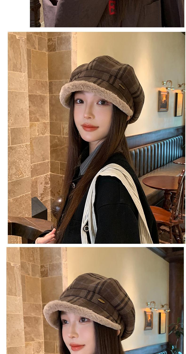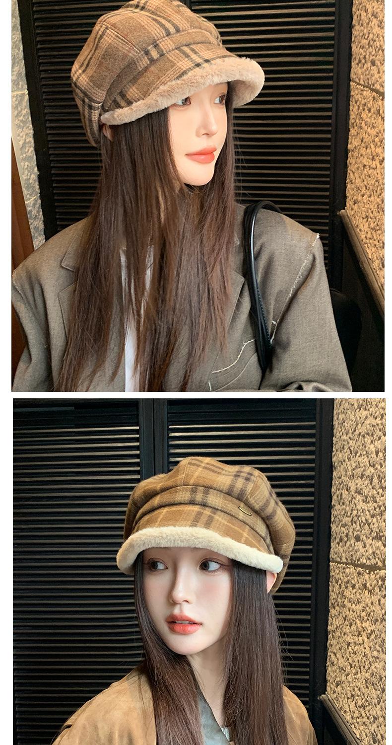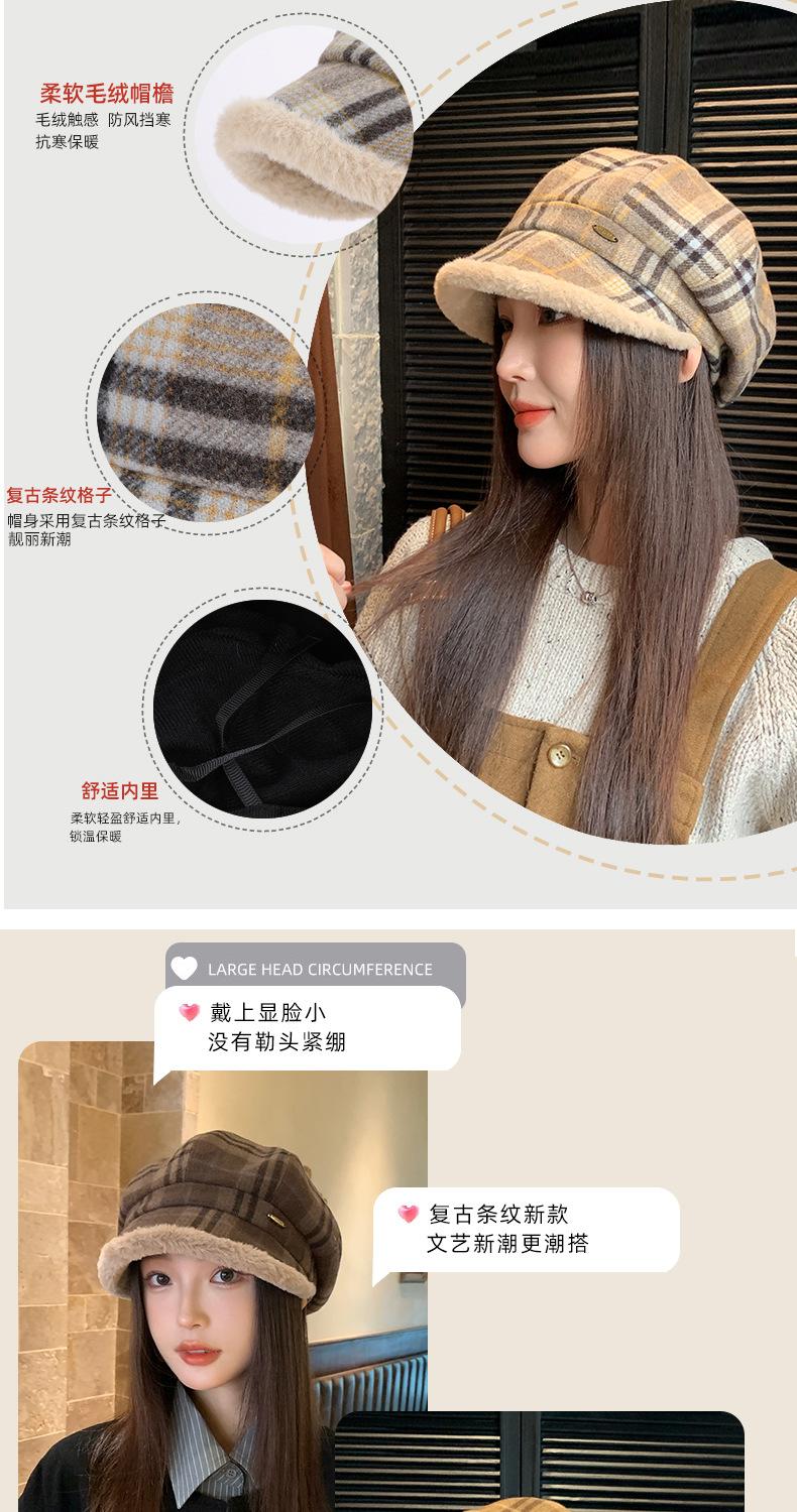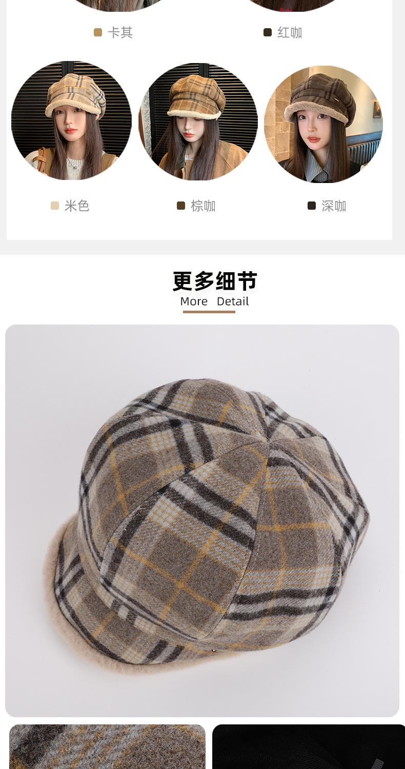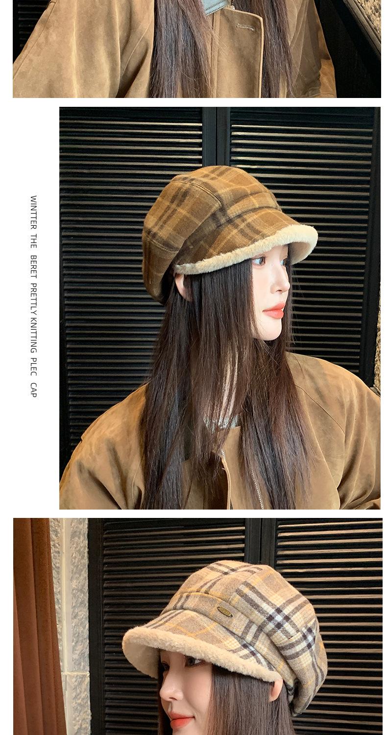 Sombrero octogonal retro de felpa cálido a cuadros de otoño e invierno versátil muestra cara pequeña boina de alta gama sombrero de pintor de pico de pato