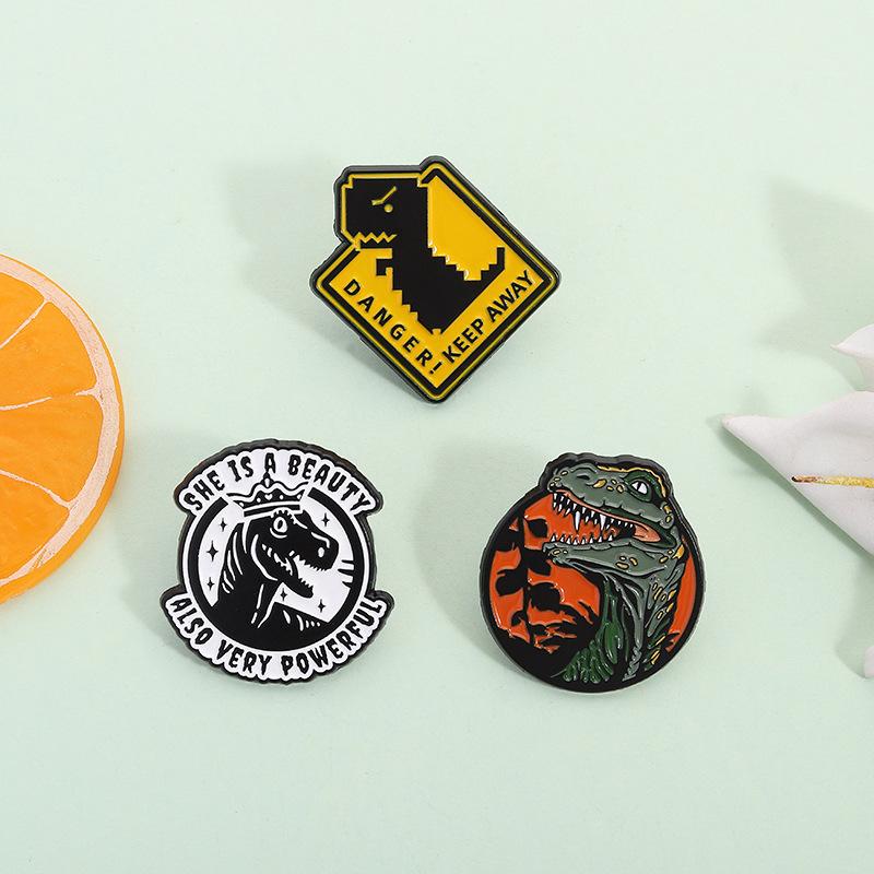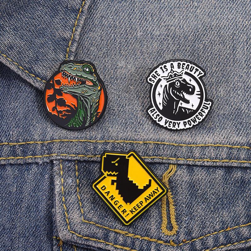 Amazon Nuevo Pin de Dinosaurio Pequeño Insignia Accesorio de Ropa Letra Animal Broche Colorido Irregular Pin de Metal