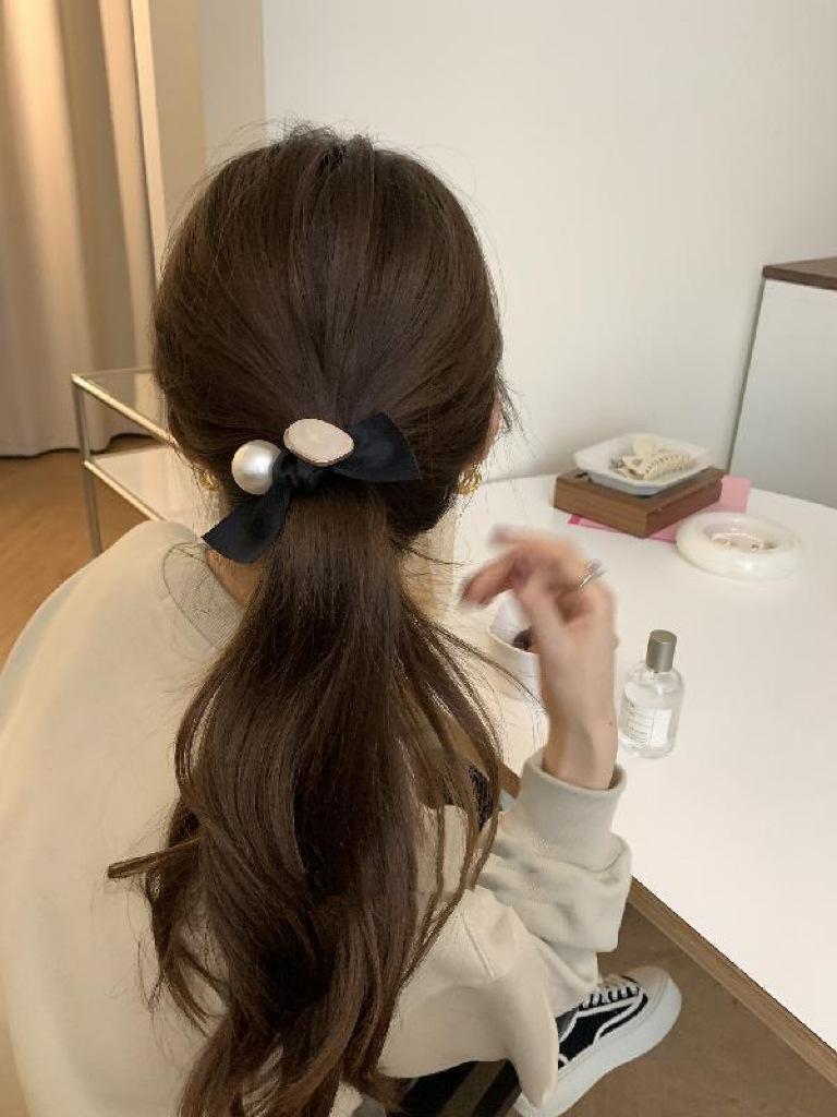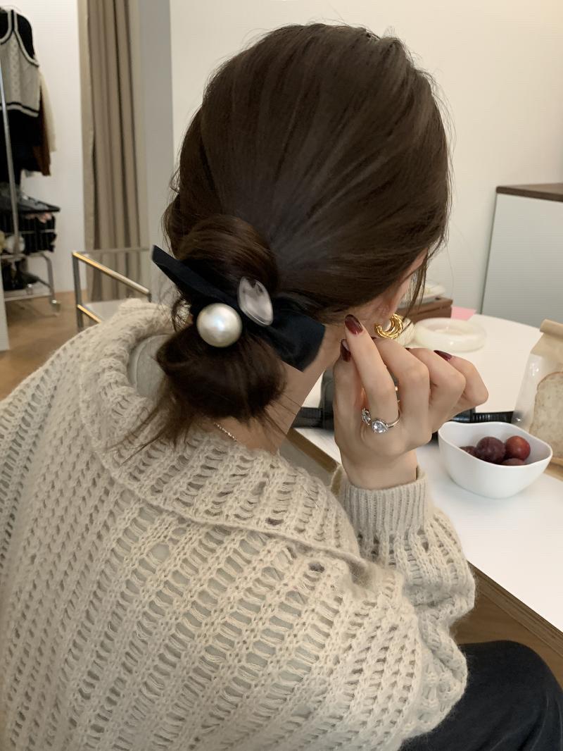Acetic acid large pearl hair ring-beige, Acetic acid large pearl hair ring-Gray