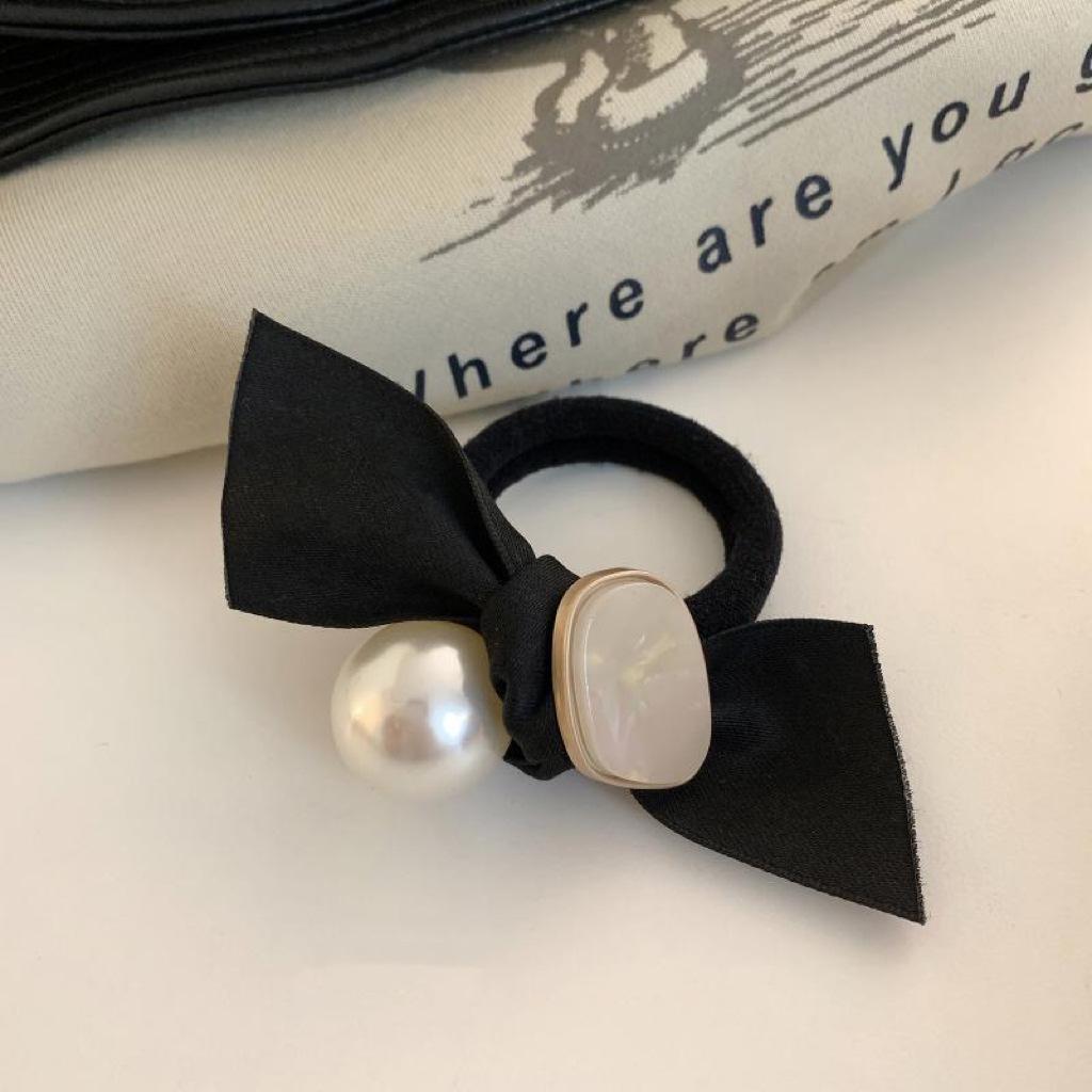 Lazo Retro Francés Cuerda para el Cabello Lazo Banda para el Cabello Alta Elasticidad Duradero Anillo para el Cabello de Perlas Accesorios para el Cabello de Cola de Caballo Elegantes de Alta Gama