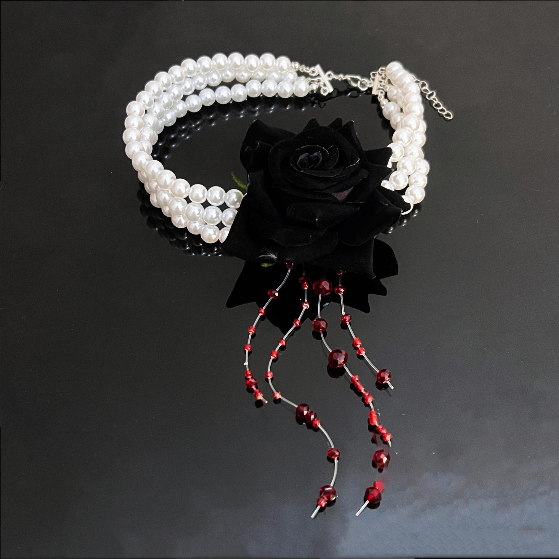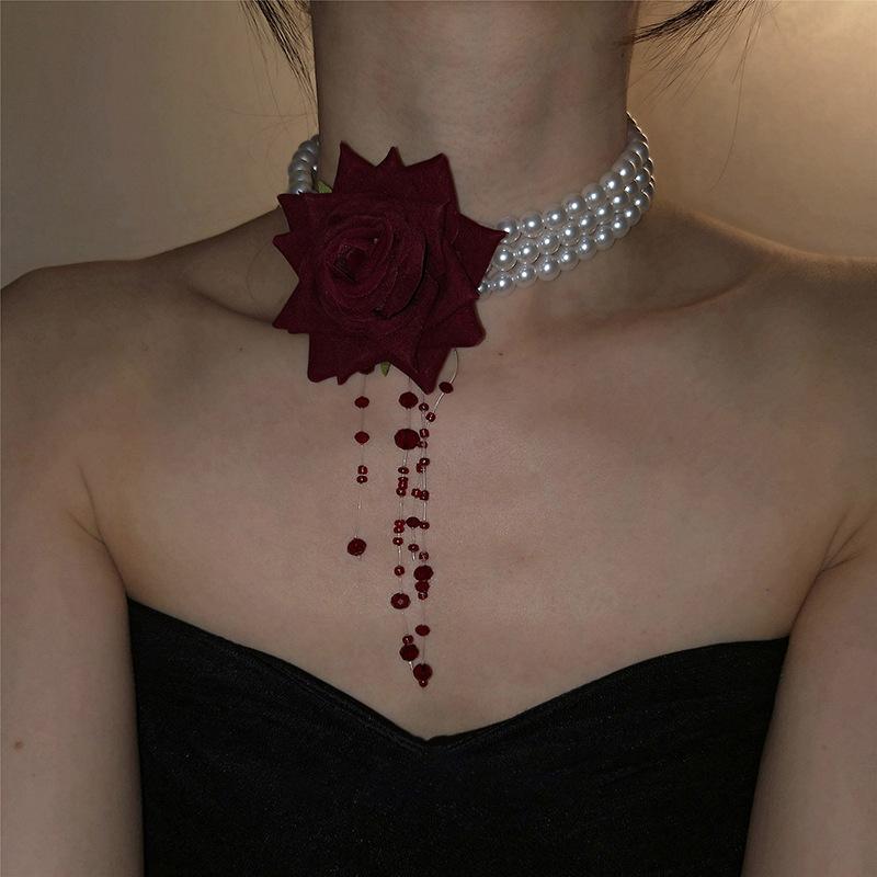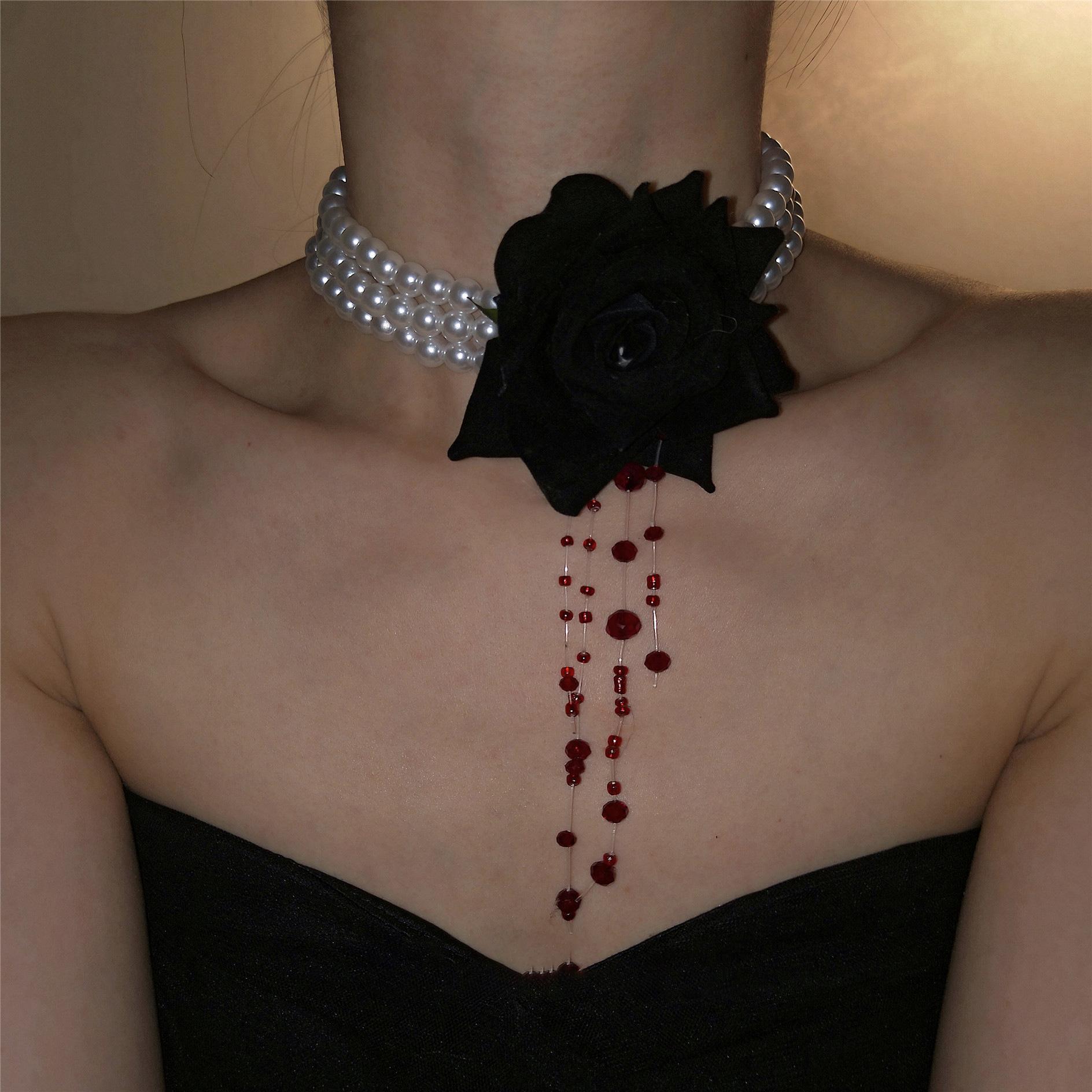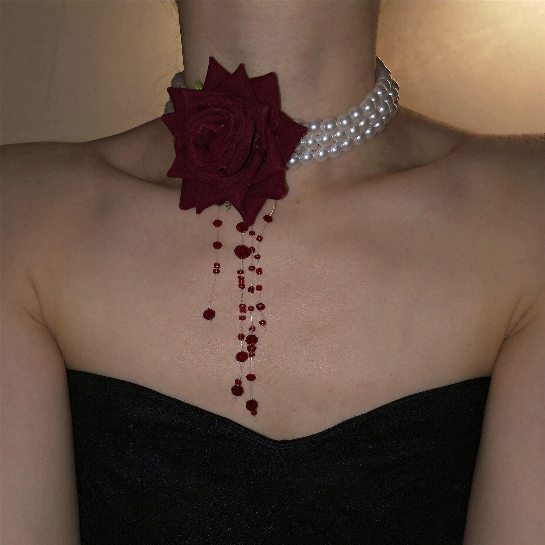 Collar de Flores Multicapa con Cuentas de Perlas Francesas Moda Temperamento Versátil Cadena Clavícula Nicho Joyería de Alta Gama Venta al por Mayor
