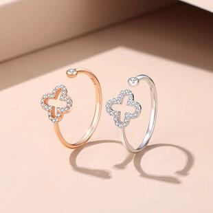 Anillo de trébol de cuatro hojas hueco para mujer, anillo de dedo índice con flor de circón ligero de lujo, moderno y fresco, anillo de apertura ajustable |