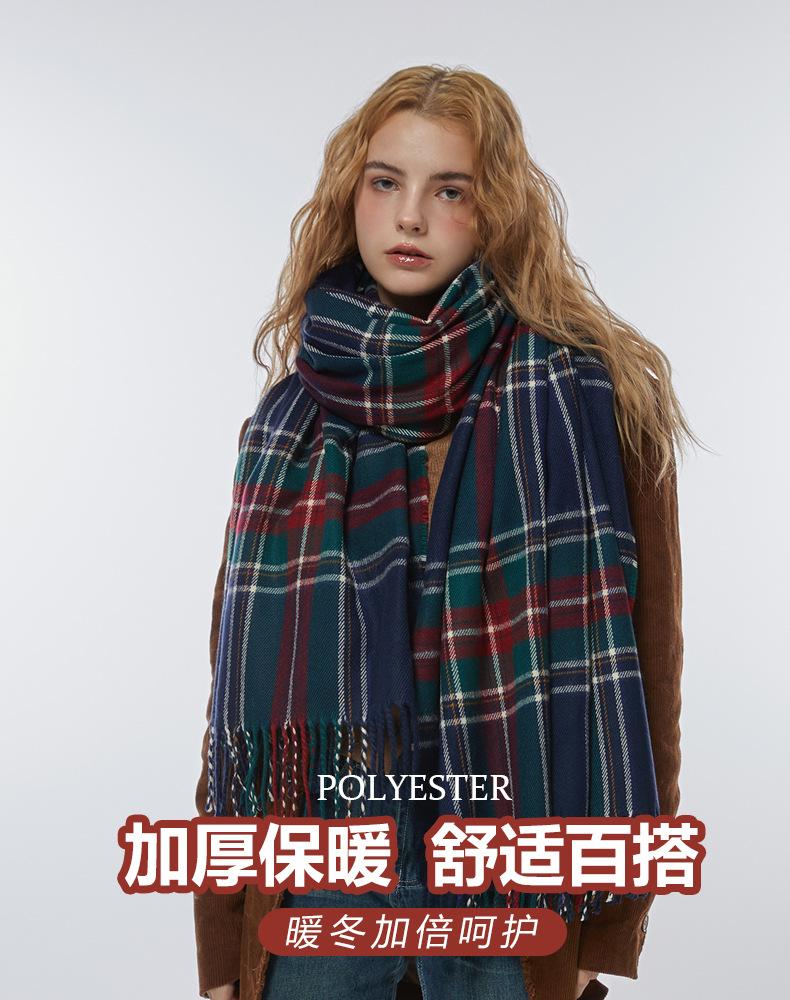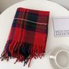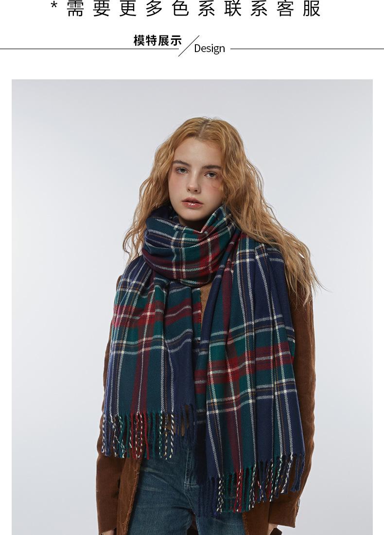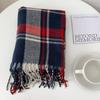Bufanda de cachemira acrílica de 350 g de alta calidad, vintage, a cuadros de color contrastante, invierno, estudiante, artística, cálida, a cuadros