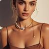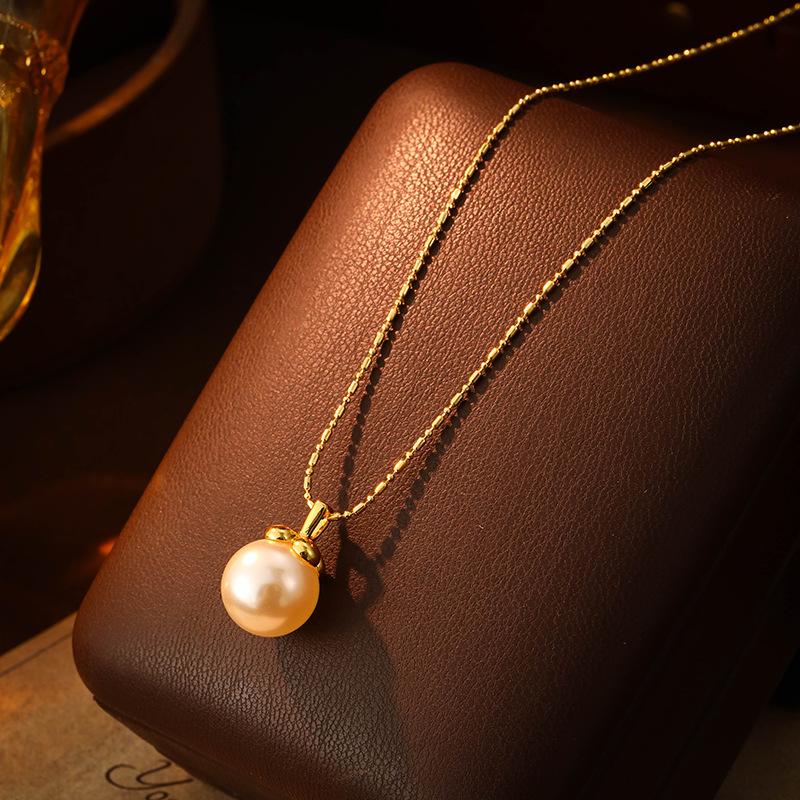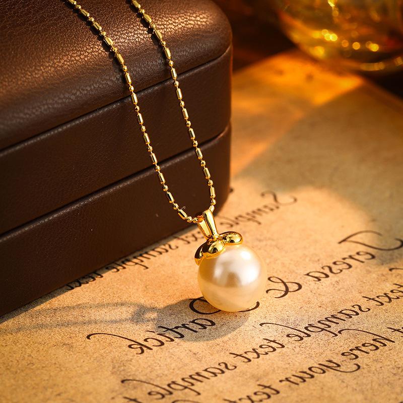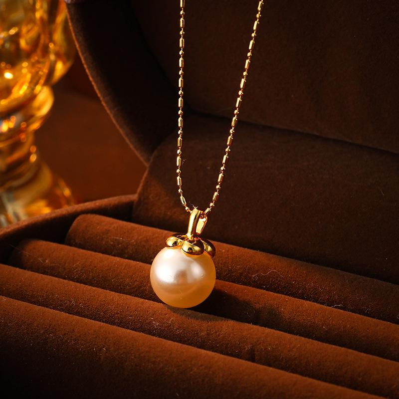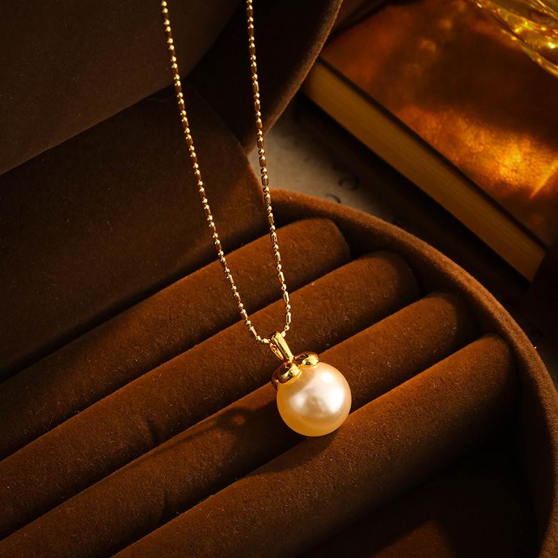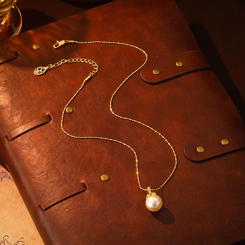 Collar con colgante de perla elegante retro francés simple de alta gama moda temperamento exquisito versátil cadena clavicular