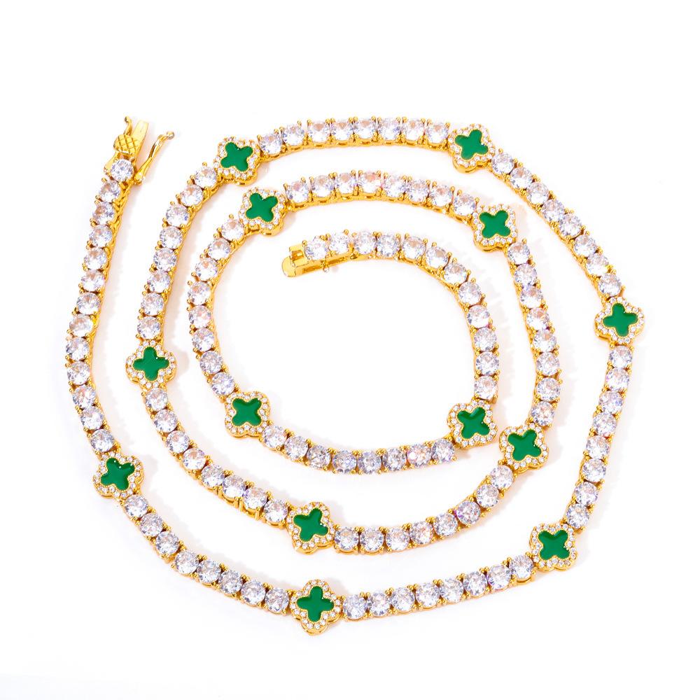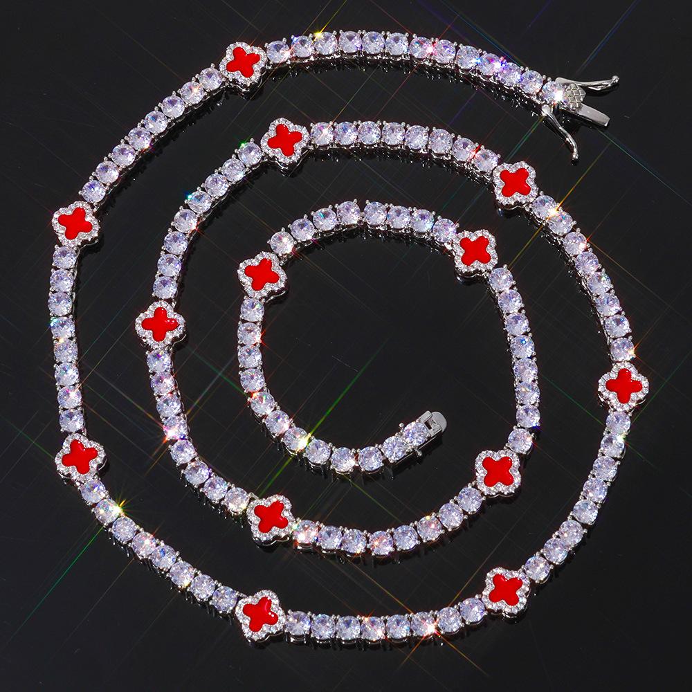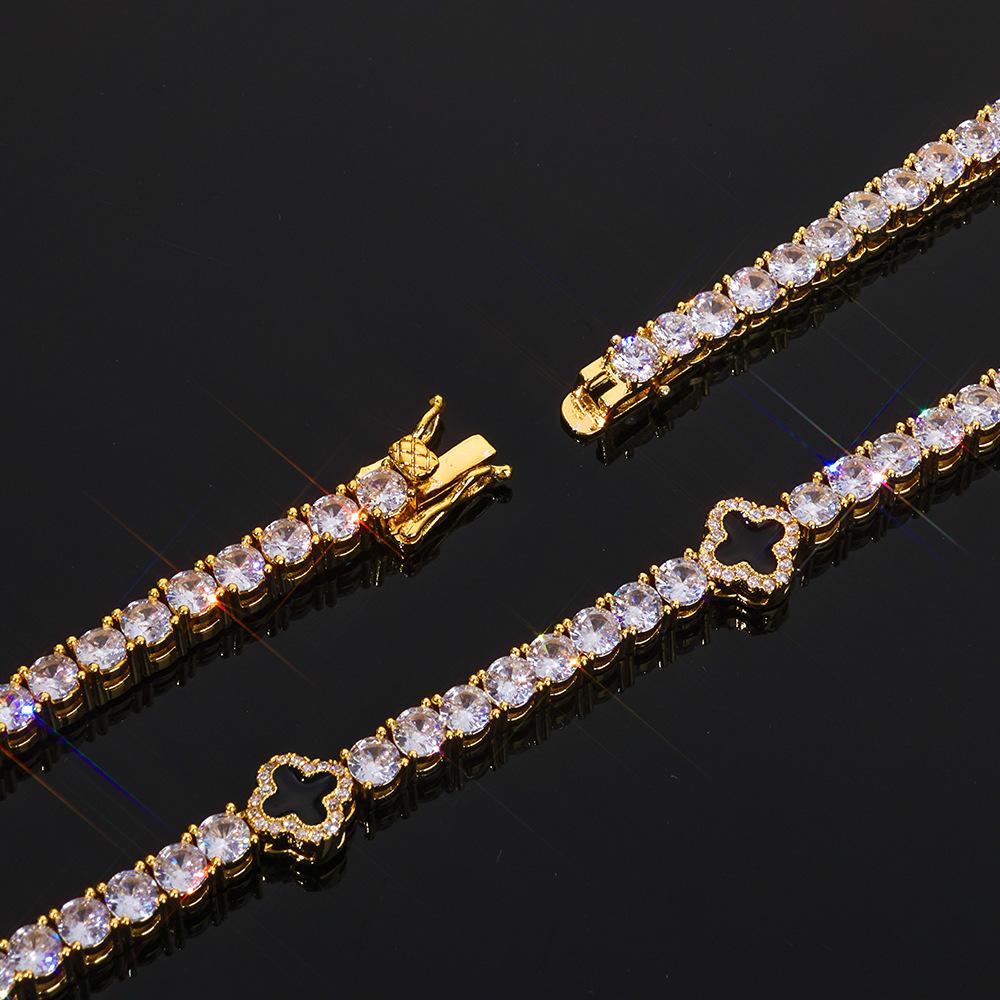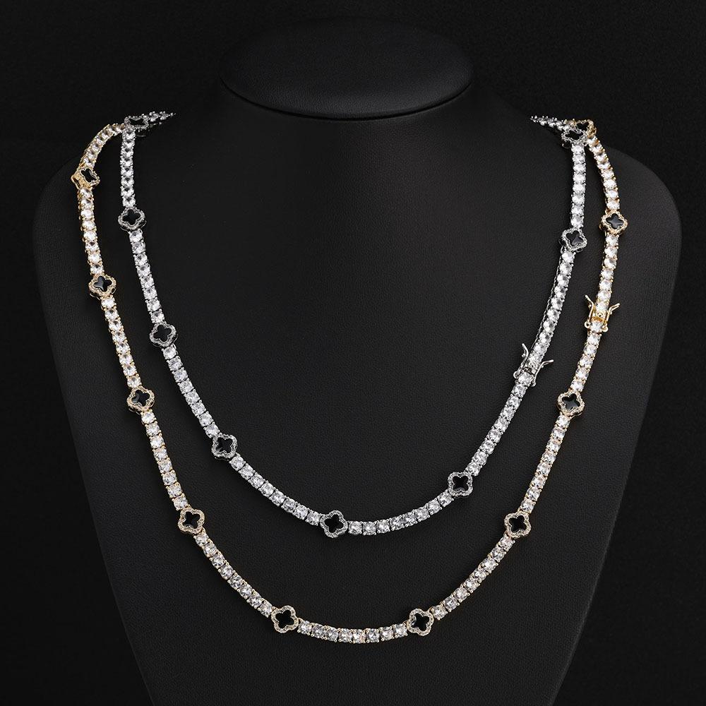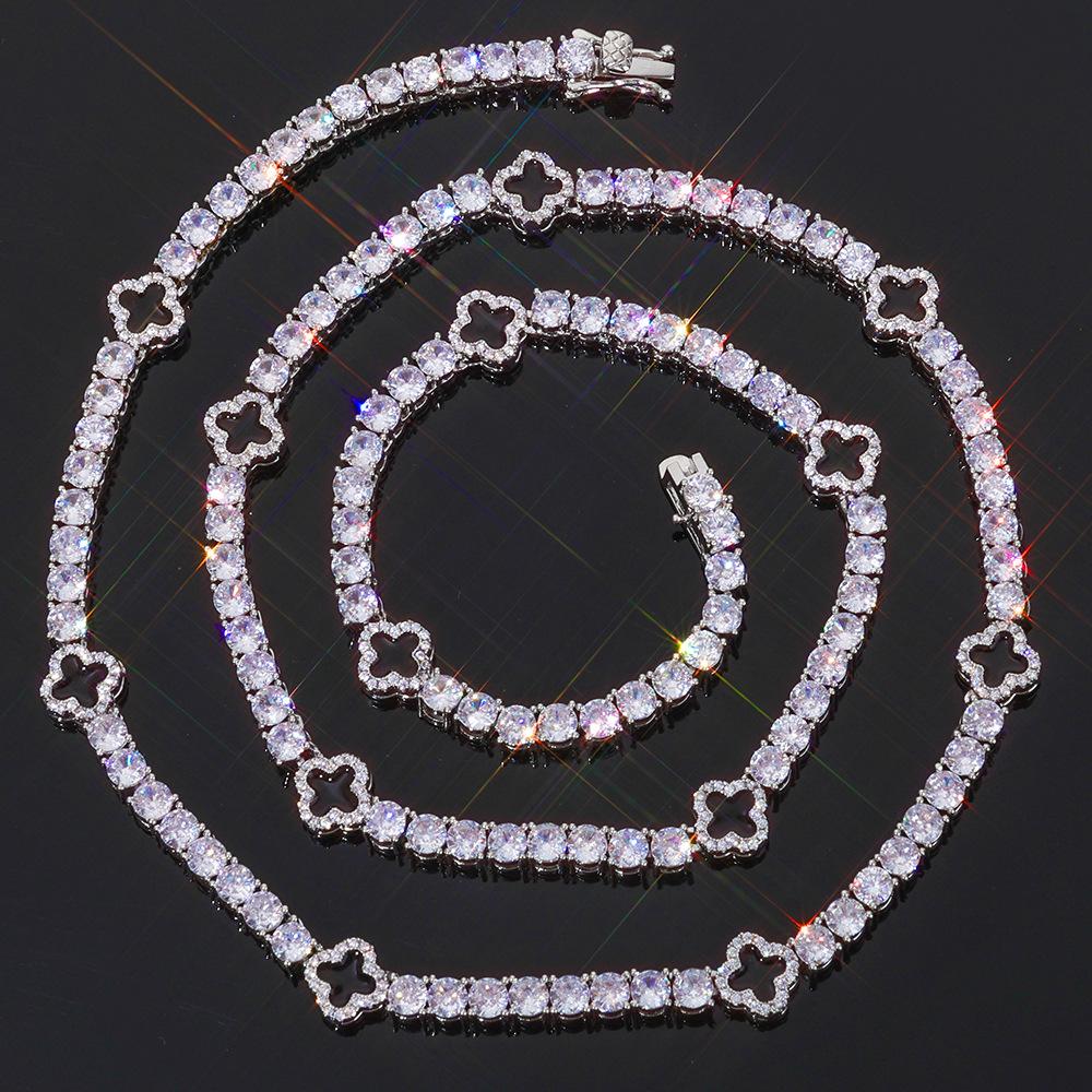 Collar de Cadena de Tenis de Zirconia Estilo Ins Transfronterizo Europeo y Americano, Trébol de Cuatro Hojas para Mujer, Joyería de Alta Gama, Cadena para Clavícula Hip-Hop