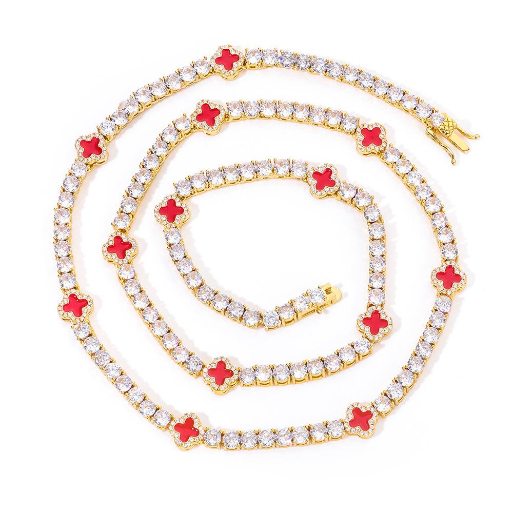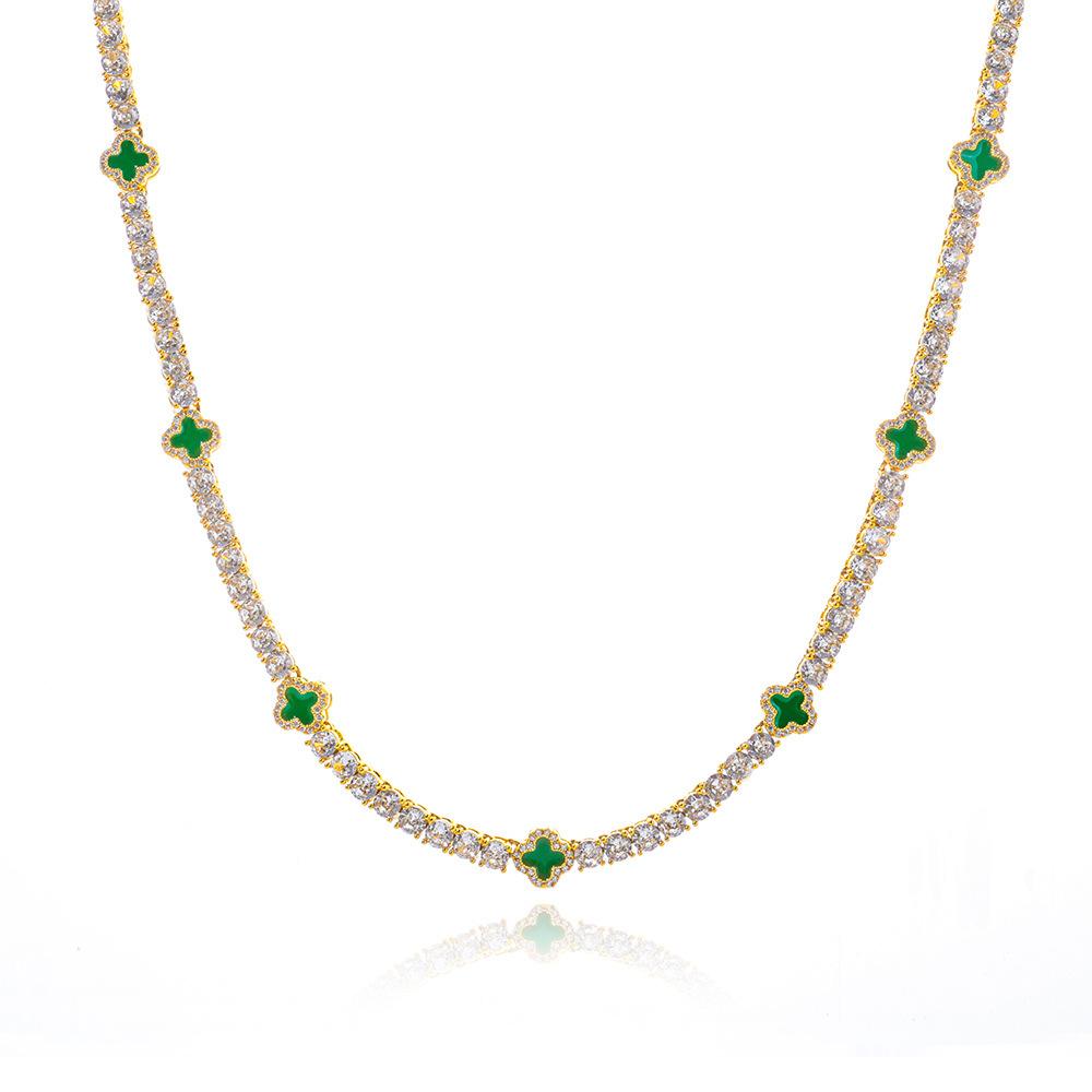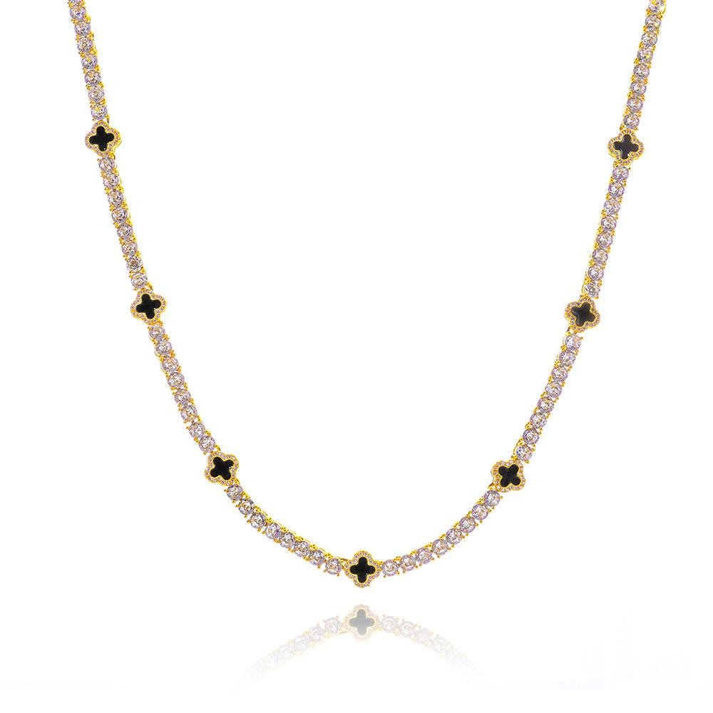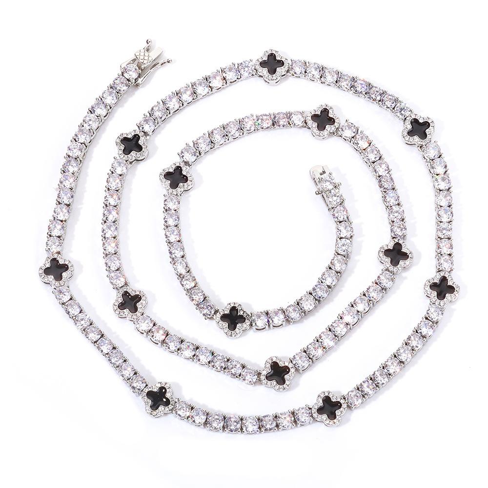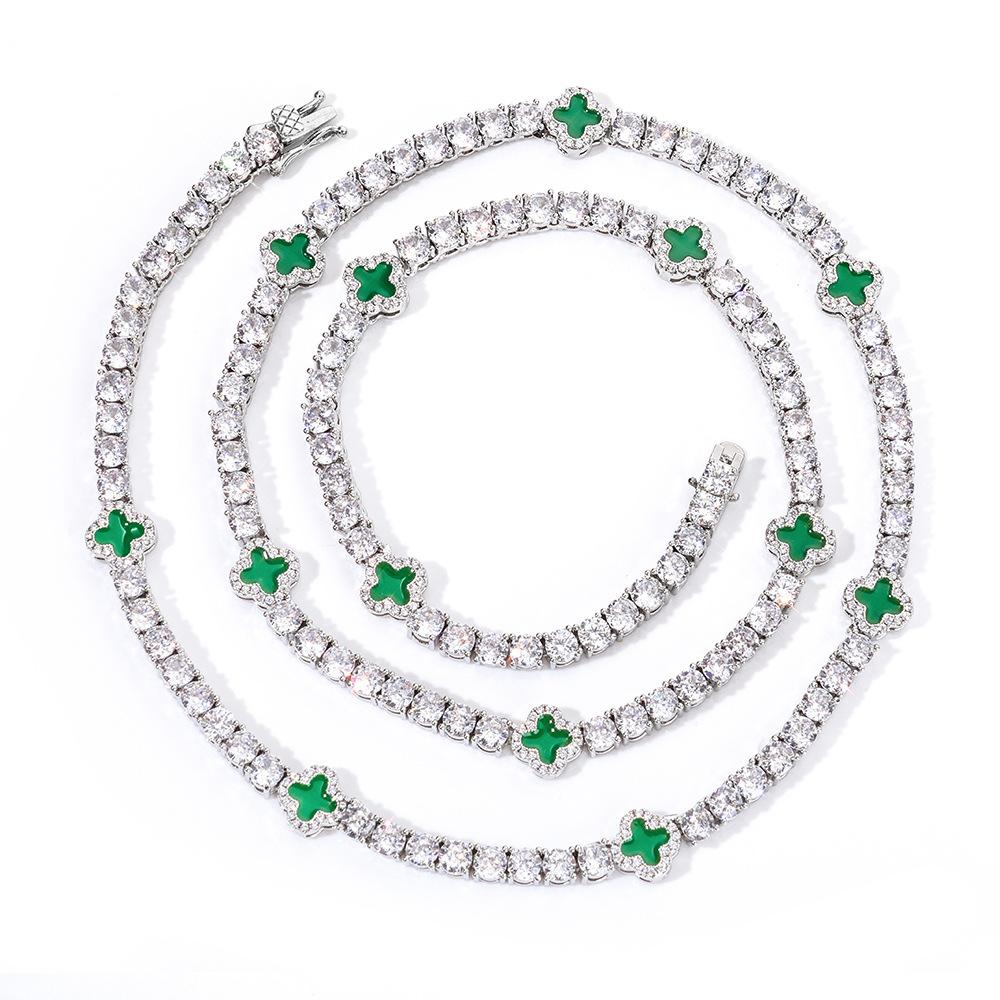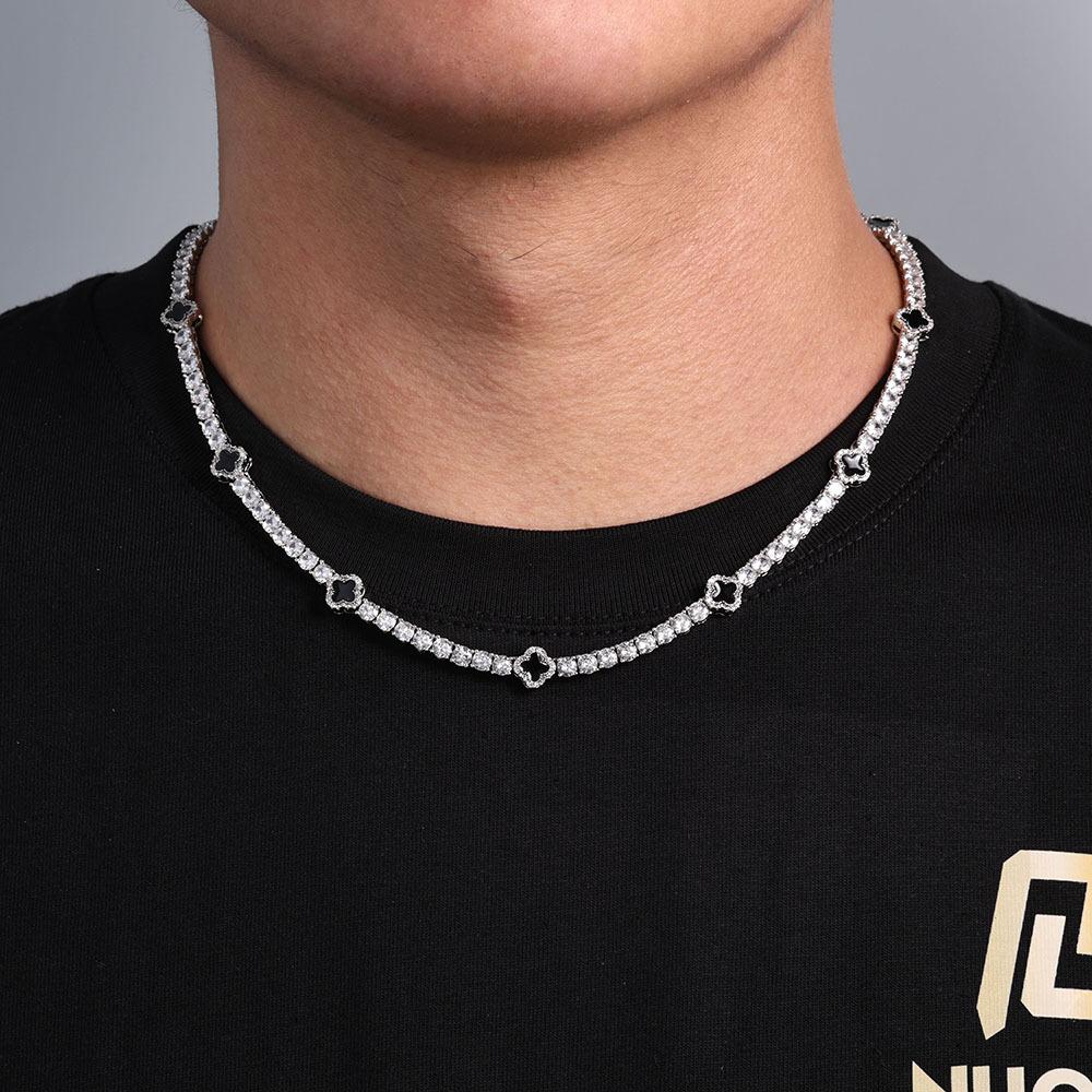 Collar de Cadena de Tenis de Zirconia Estilo Ins Transfronterizo Europeo y Americano, Trébol de Cuatro Hojas para Mujer, Joyería de Alta Gama, Cadena para Clavícula Hip-Hop