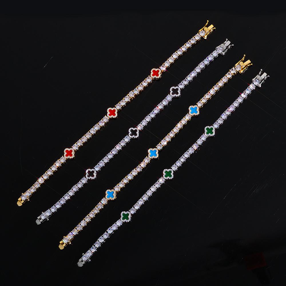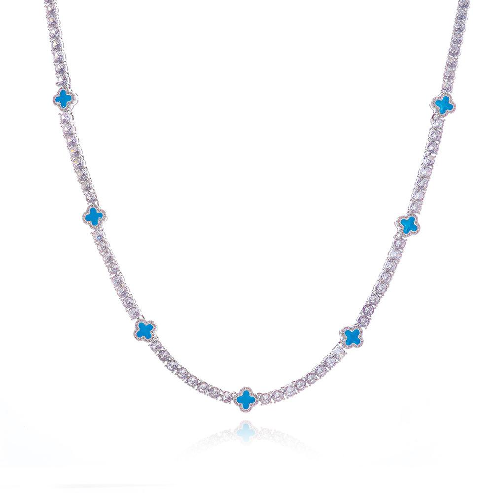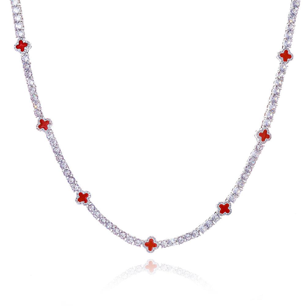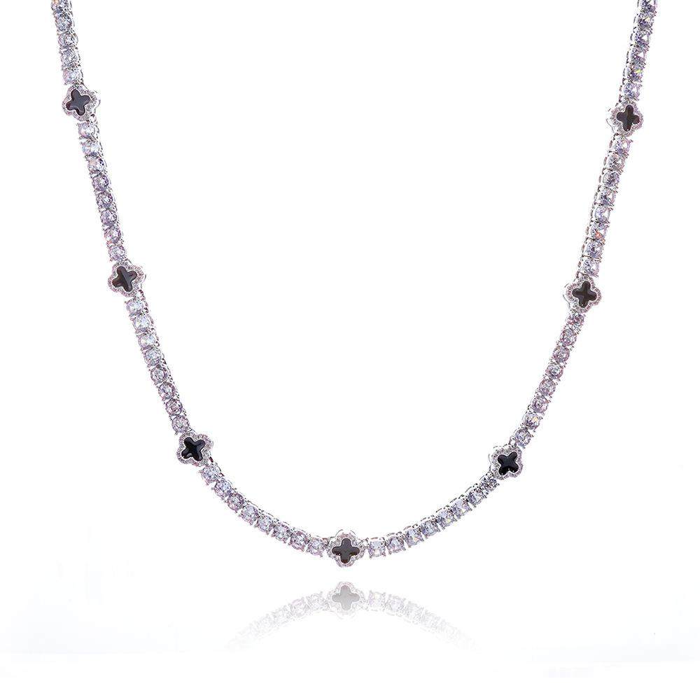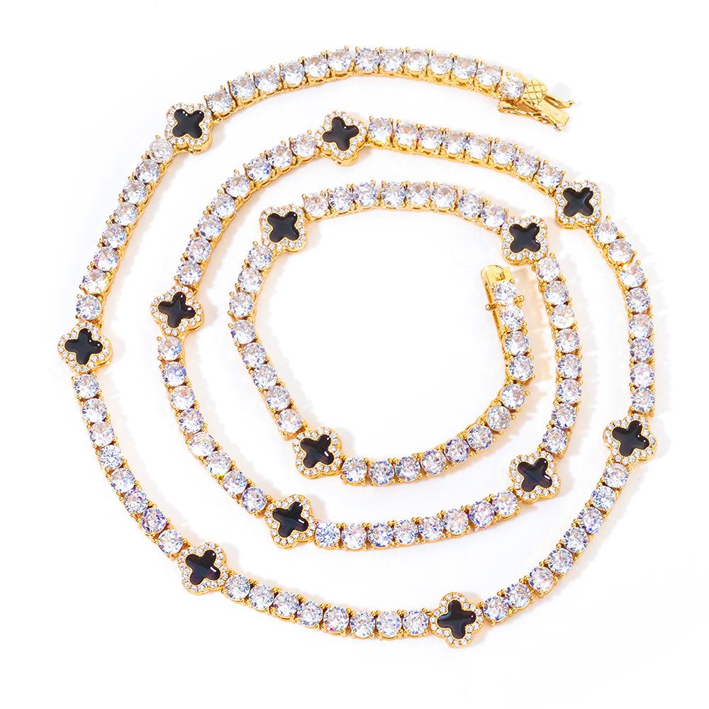 Collar de Cadena de Tenis de Zirconia Estilo Ins Transfronterizo Europeo y Americano, Trébol de Cuatro Hojas para Mujer, Joyería de Alta Gama, Cadena para Clavícula Hip-Hop