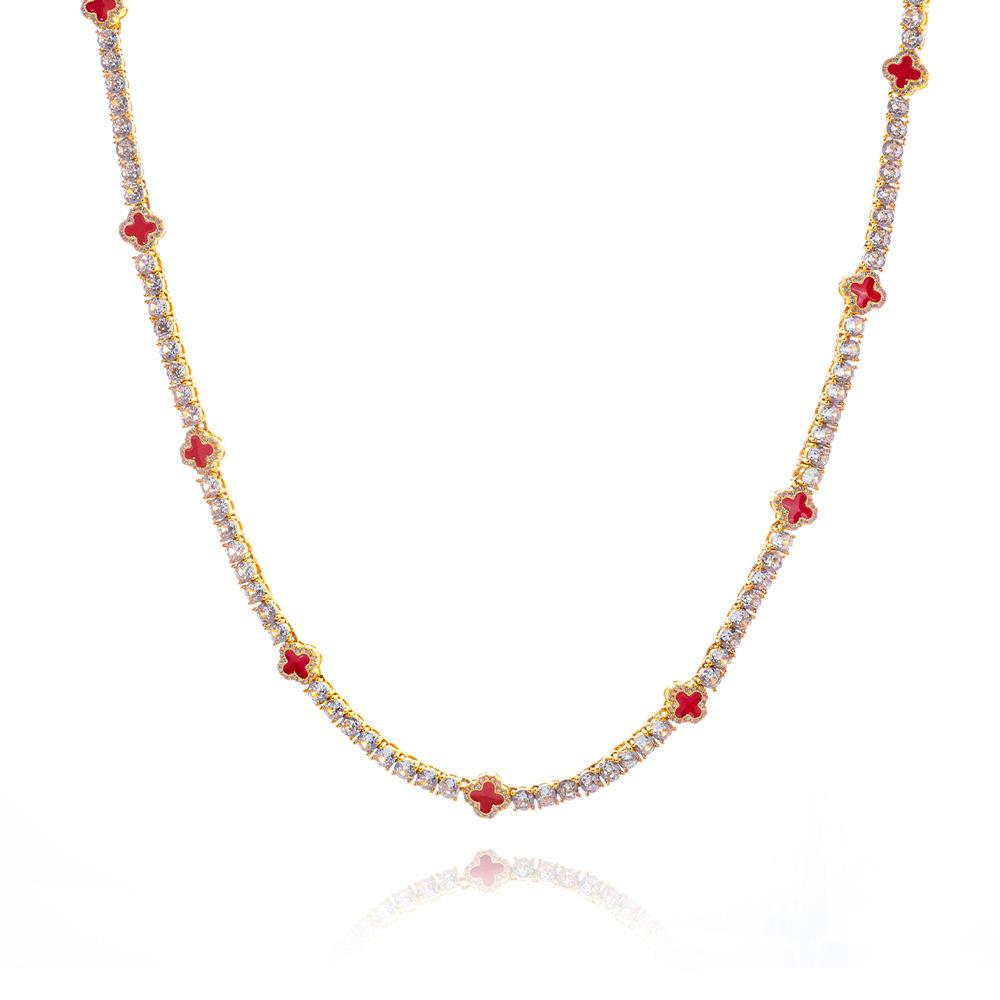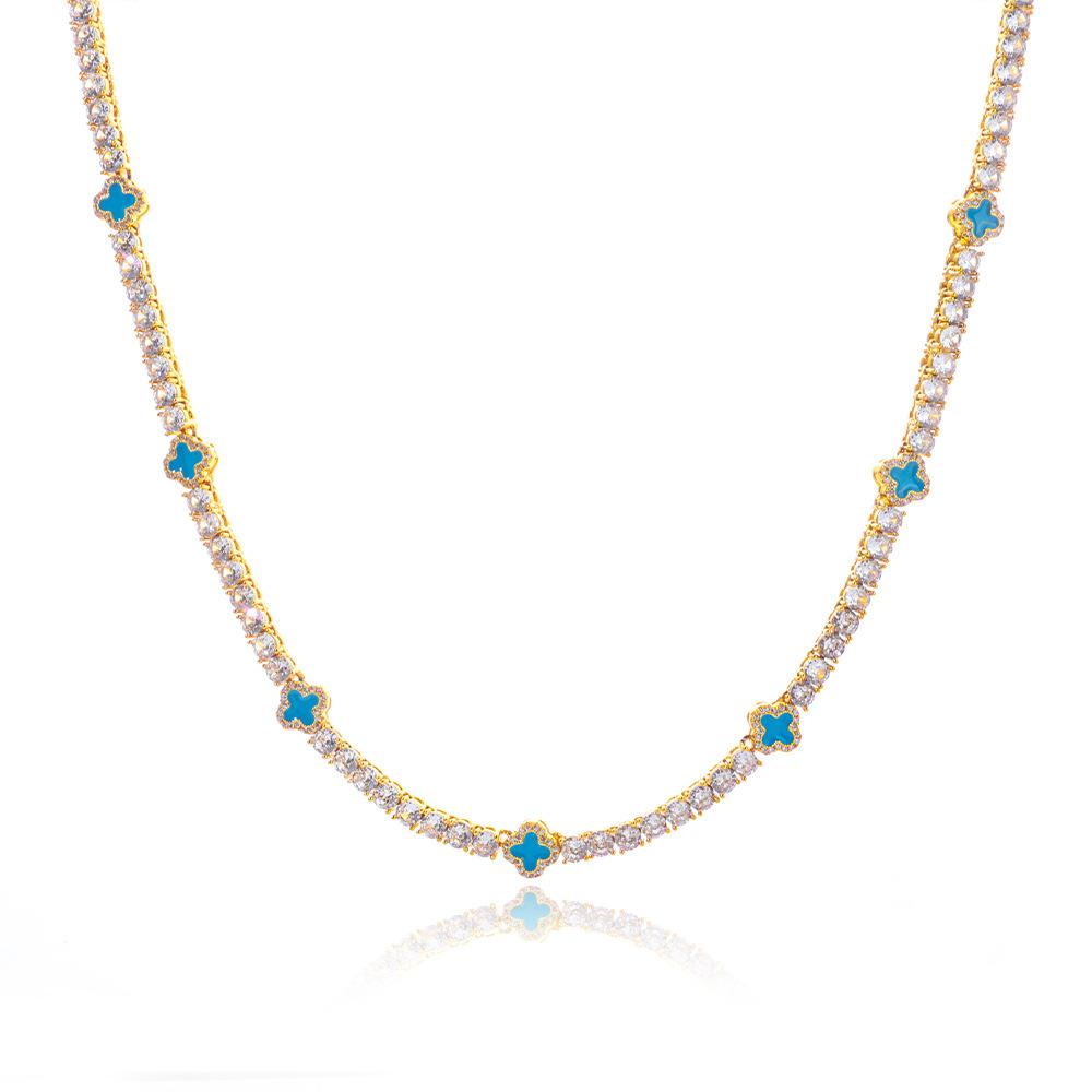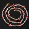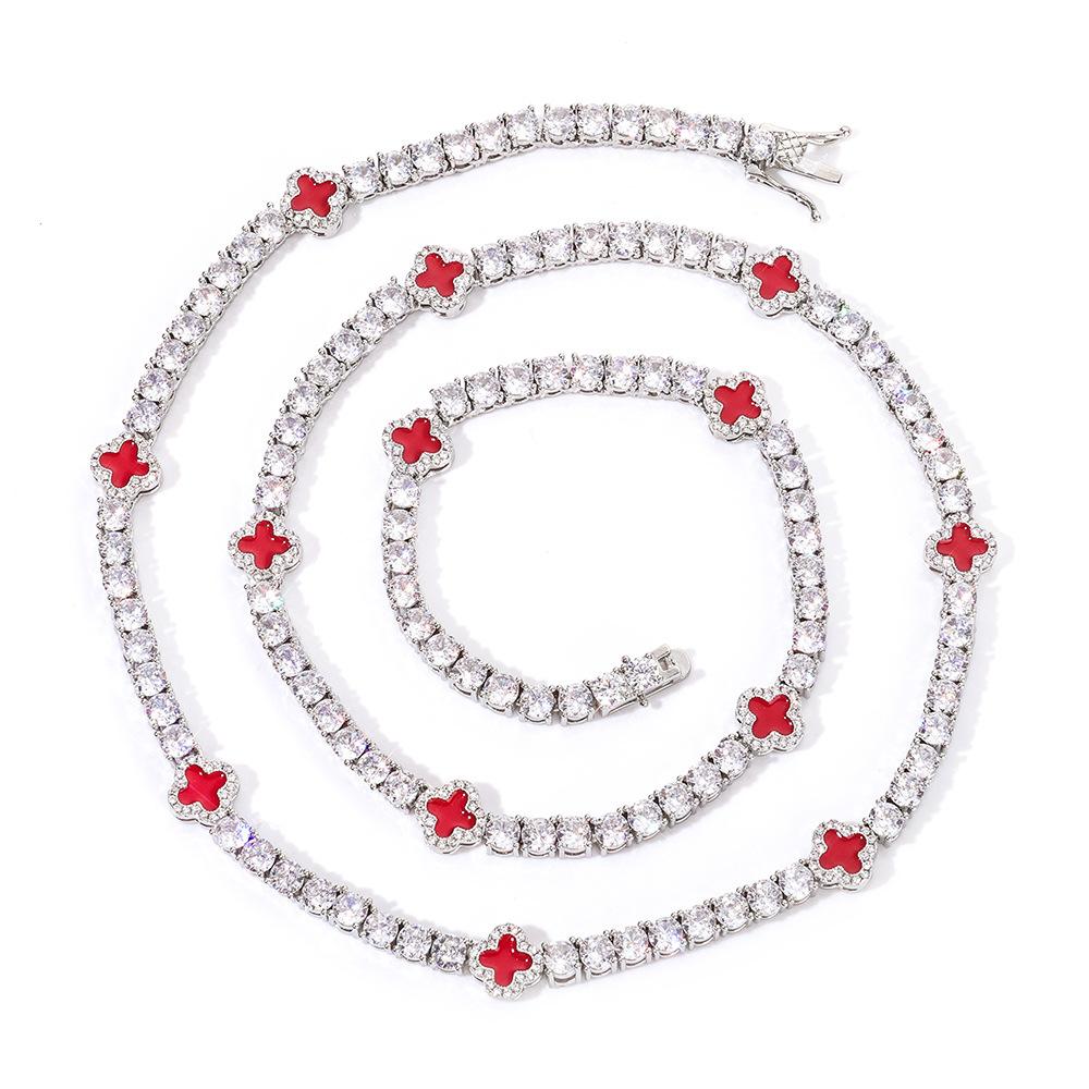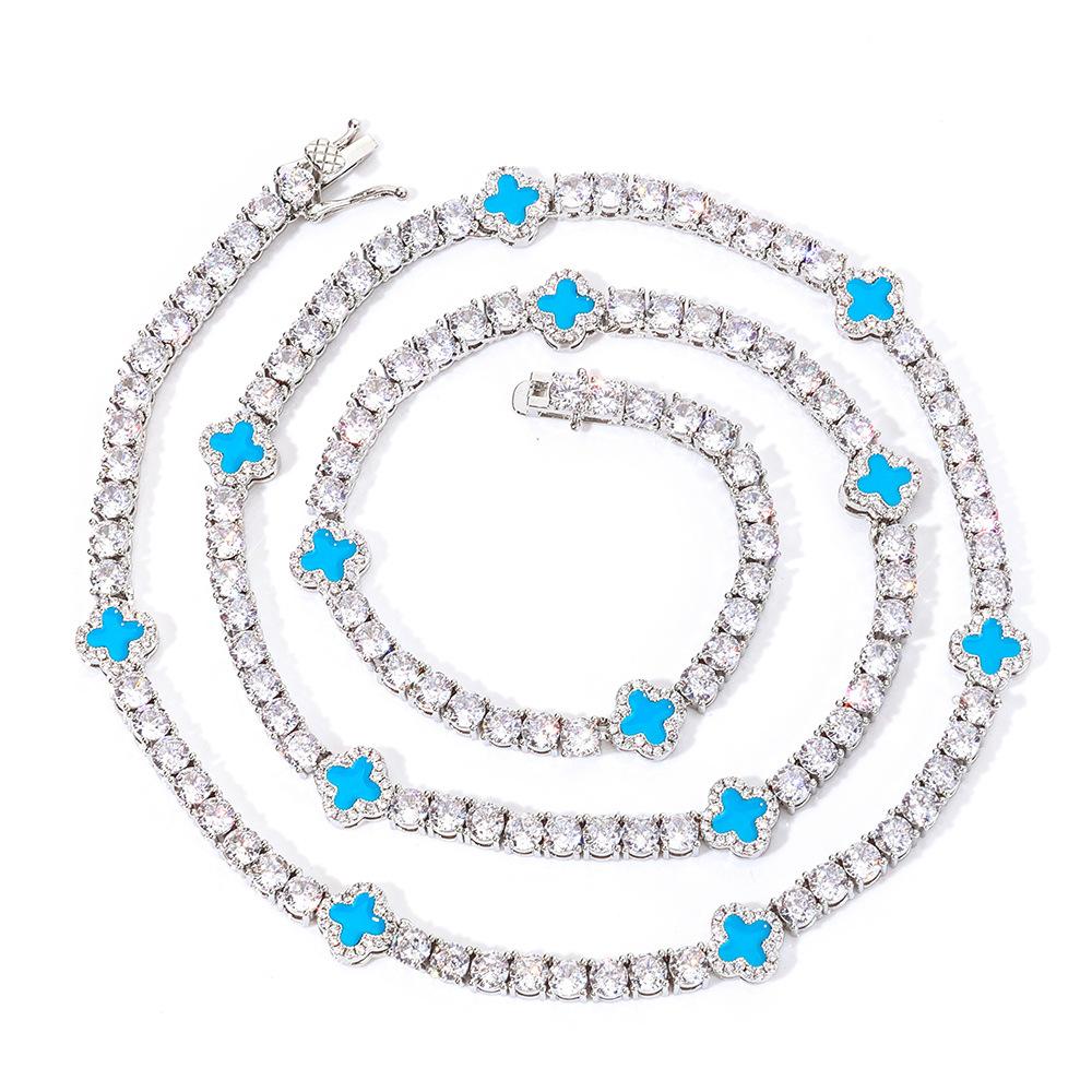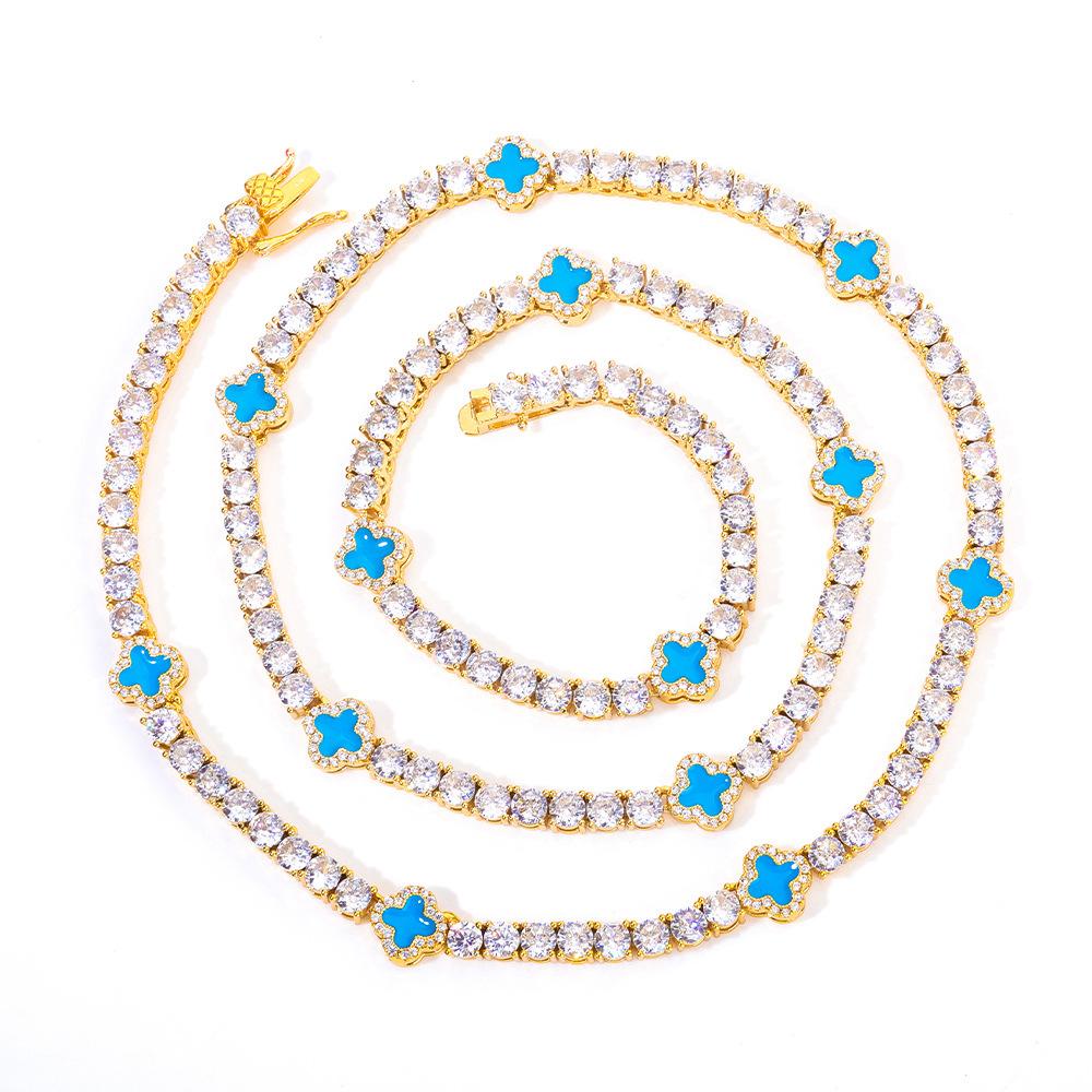 Collar de Cadena de Tenis de Zirconia Estilo Ins Transfronterizo Europeo y Americano, Trébol de Cuatro Hojas para Mujer, Joyería de Alta Gama, Cadena para Clavícula Hip-Hop