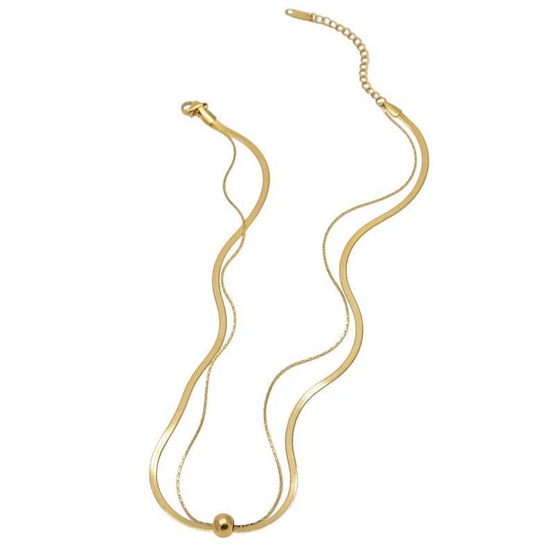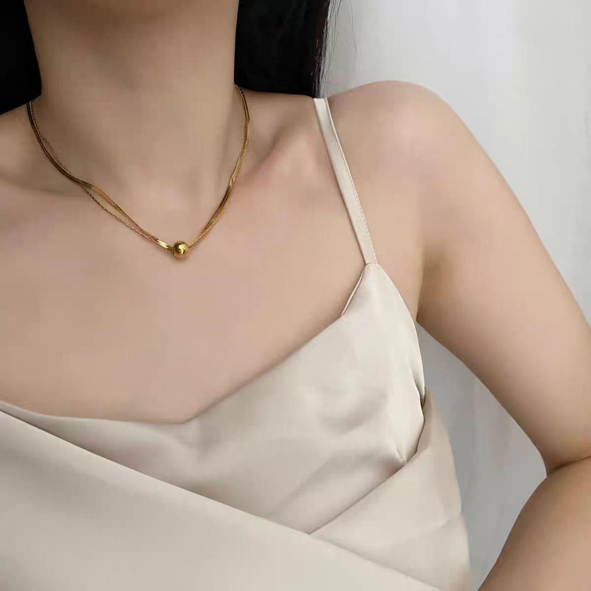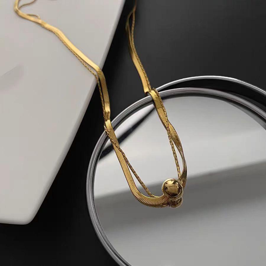 Acero de Titanio Nuevo Collar Único de Lujo Ligero con Bola de Transferencia de Doble Capa Oro Temperamento Cadena Clavicular de Alta Gama Mejor Amiga Collar Femenino