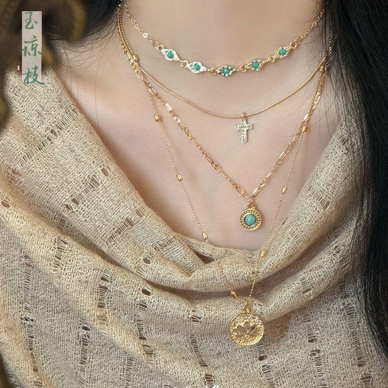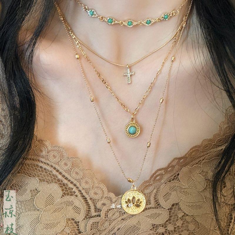 Collar Bohemio Dorado en Capas para Mujer Estilo Étnico Retro Nicho Alto Sentido del Diseño Gargantilla Cadena Clavícula