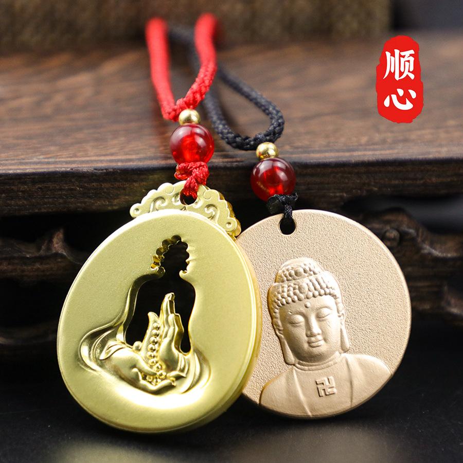 Collar Colgante Guanyin Pacífica Llavero Colgante Buda Seguro Nuevo Estilo Chino Hueco Bodhisattva Dios Guardián Colgante para Hombres y Mujeres
