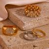 Moda Europea y Americana Nicho Anillo Simple Combinación de Joyería Acero Inoxidable Chapado en Oro de 18K Anillo Cuadrado de Zirconia Micropavé para Mujer
