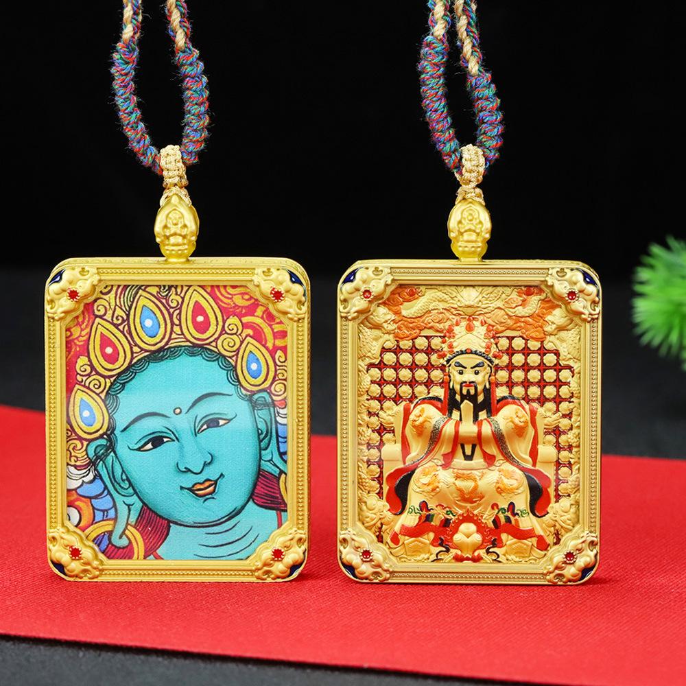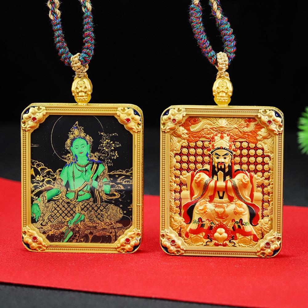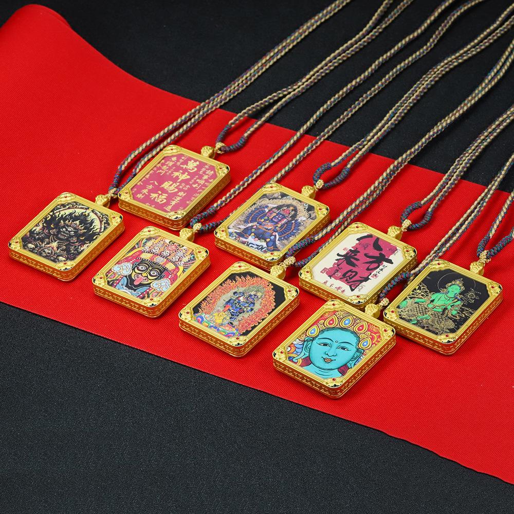 Colgante Thangka Repujado de Doble Cara Bestia Traga-Oro Zorro de Nueve Colas Caja Ga'U Rectangular Dragón Wuye Fabricante Listo para Envíos Venta al por Mayor