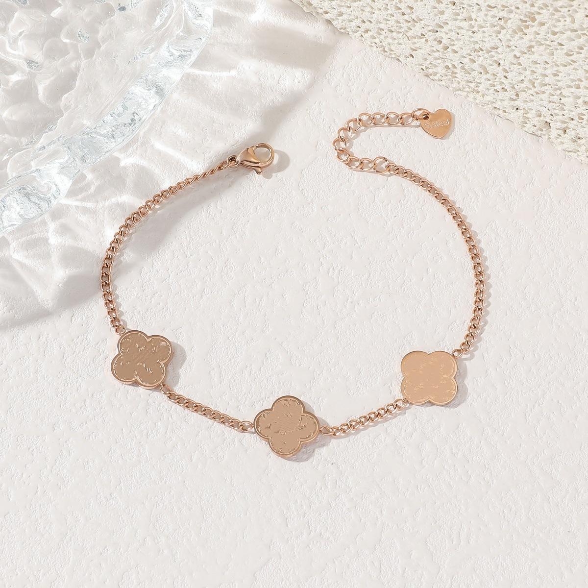 Nueva Pulsera de Acero Inoxidable Collar de Acero de Titanio Pulsera de Trébol de Cuatro Hojas Pulsera de Acero de Titanio de Alta Gama de Lujo Ligero Joyería para Pareja Femenina
