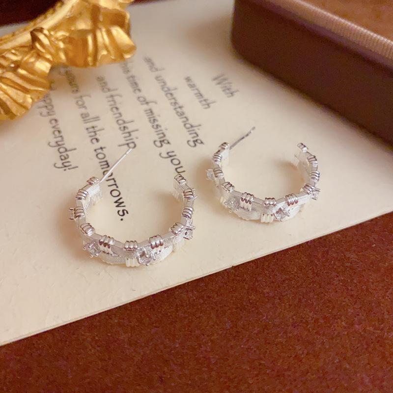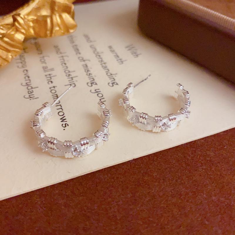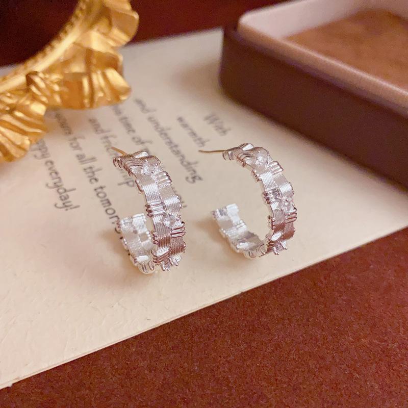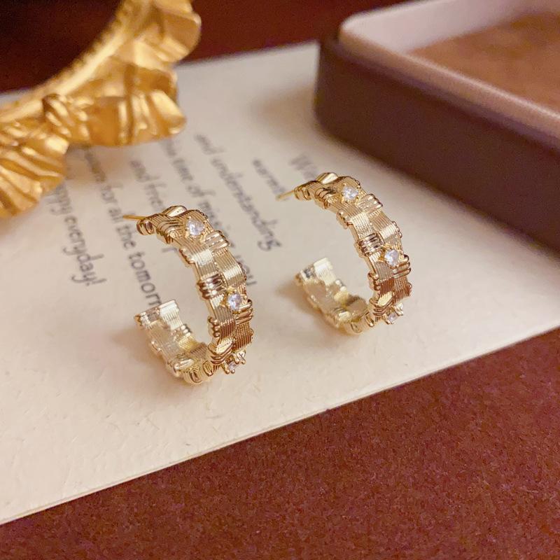 Aretes Europeos y Americanos de Moda Personalizada Transfronteriza de Amazon con Tejido de Metal Incrustado de Diamantes, Aretes Elegantes Simples Retro para Mujer