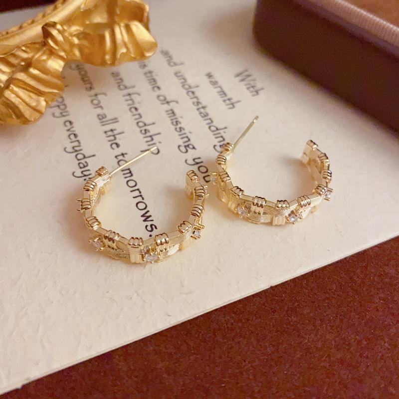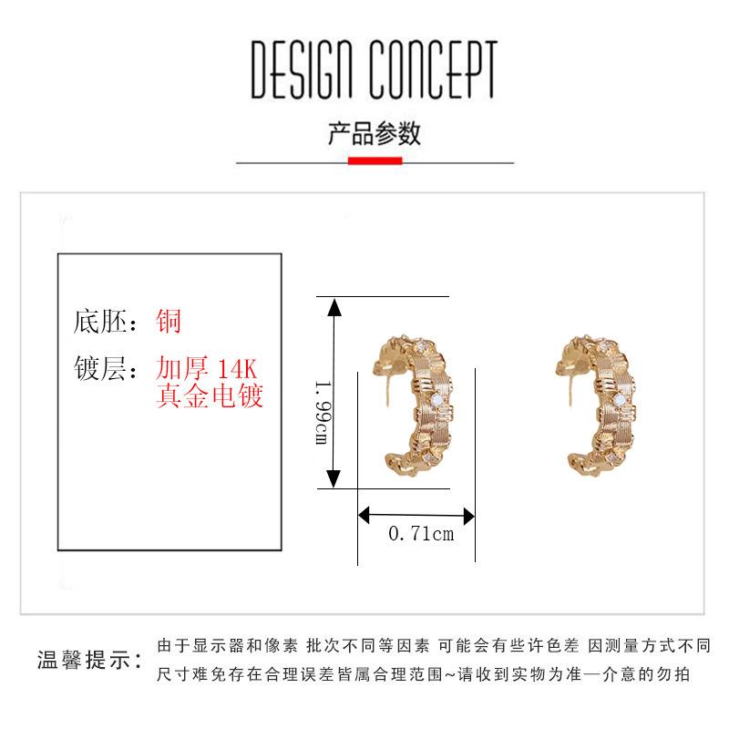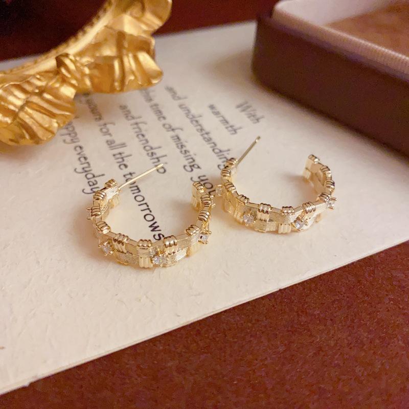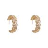 Gold-metal diamond braided c-shaped earrings (thick real gold plating)
