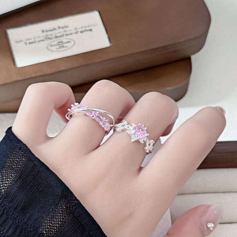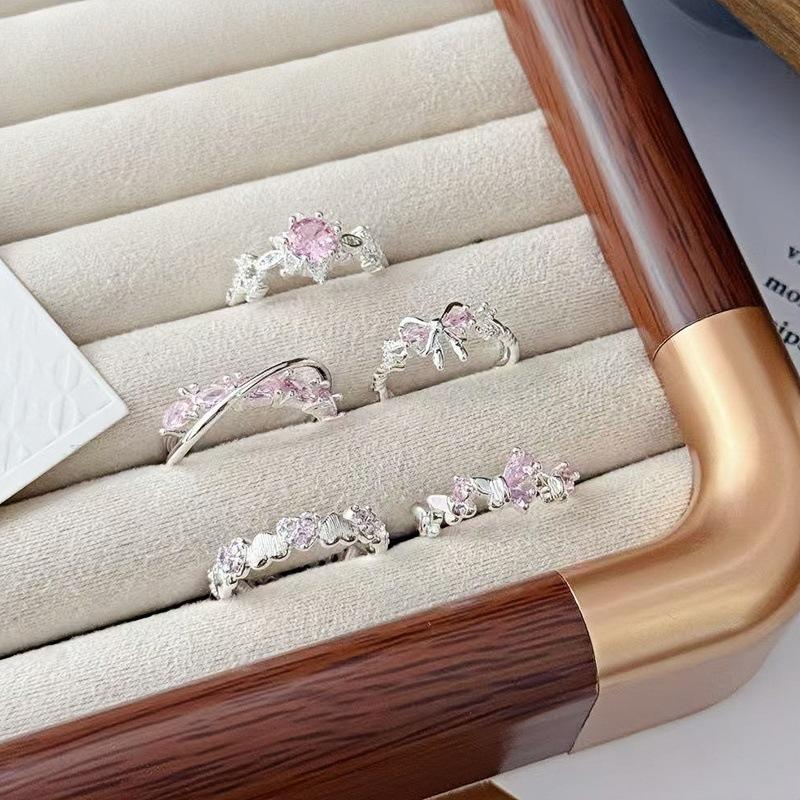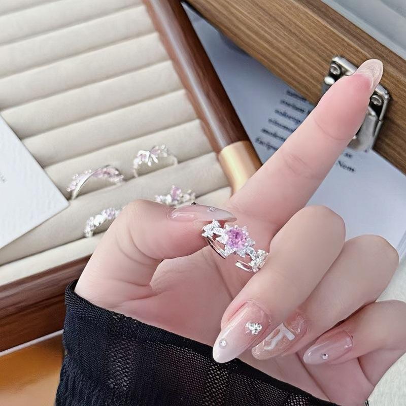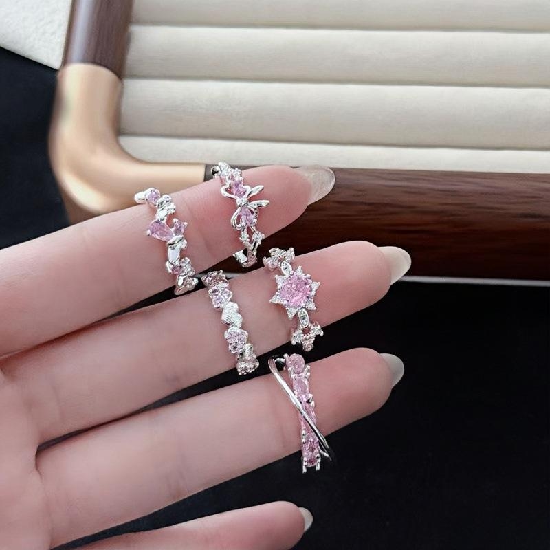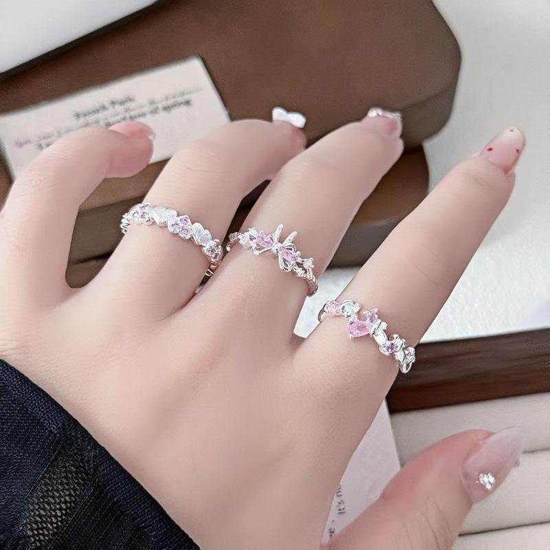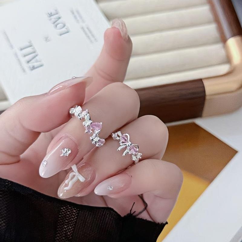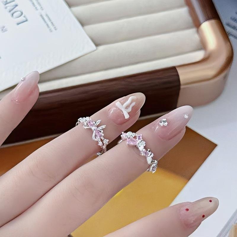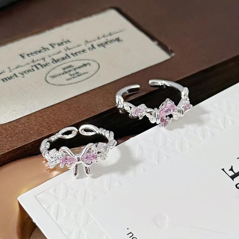 Anillo Abierto Pavé de Lazo de Zirconia Colorida Nicho de Alta Gama Lujo Ligero Exquisito Personalidad Súper Hada Anillo de Dedo Índice Mujer
