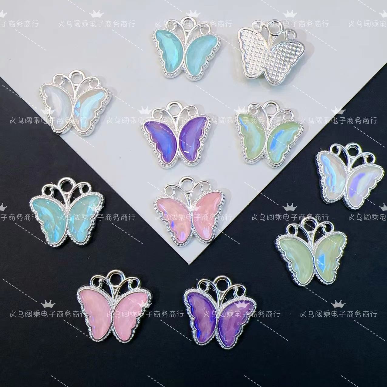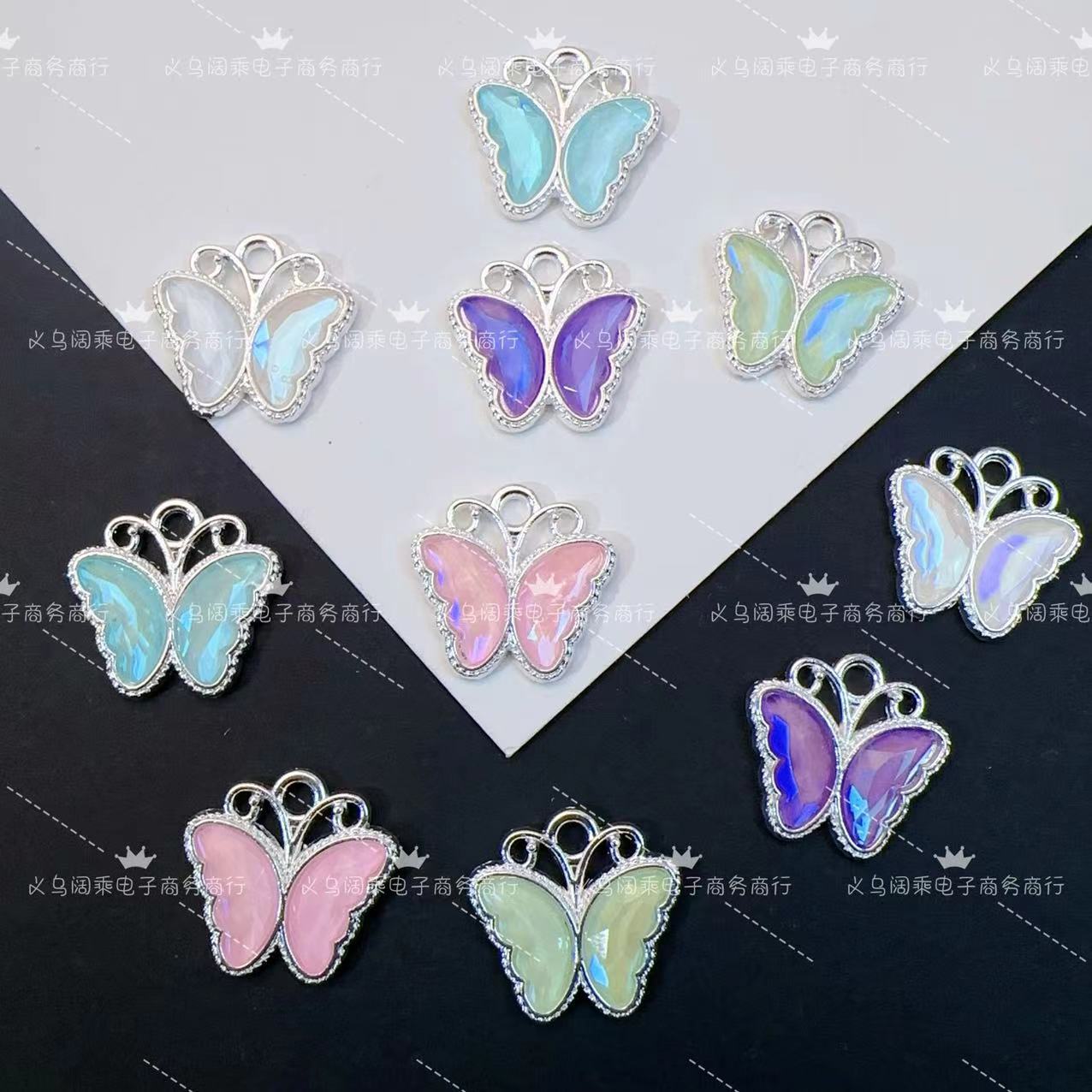 Nuevo Colgante de Mariposa Colorida Estéreo Micro-Incrustado Pulsera de Cuentas Hecha a Mano DIY Collar Colgante Aretes Accesorios de Aleación