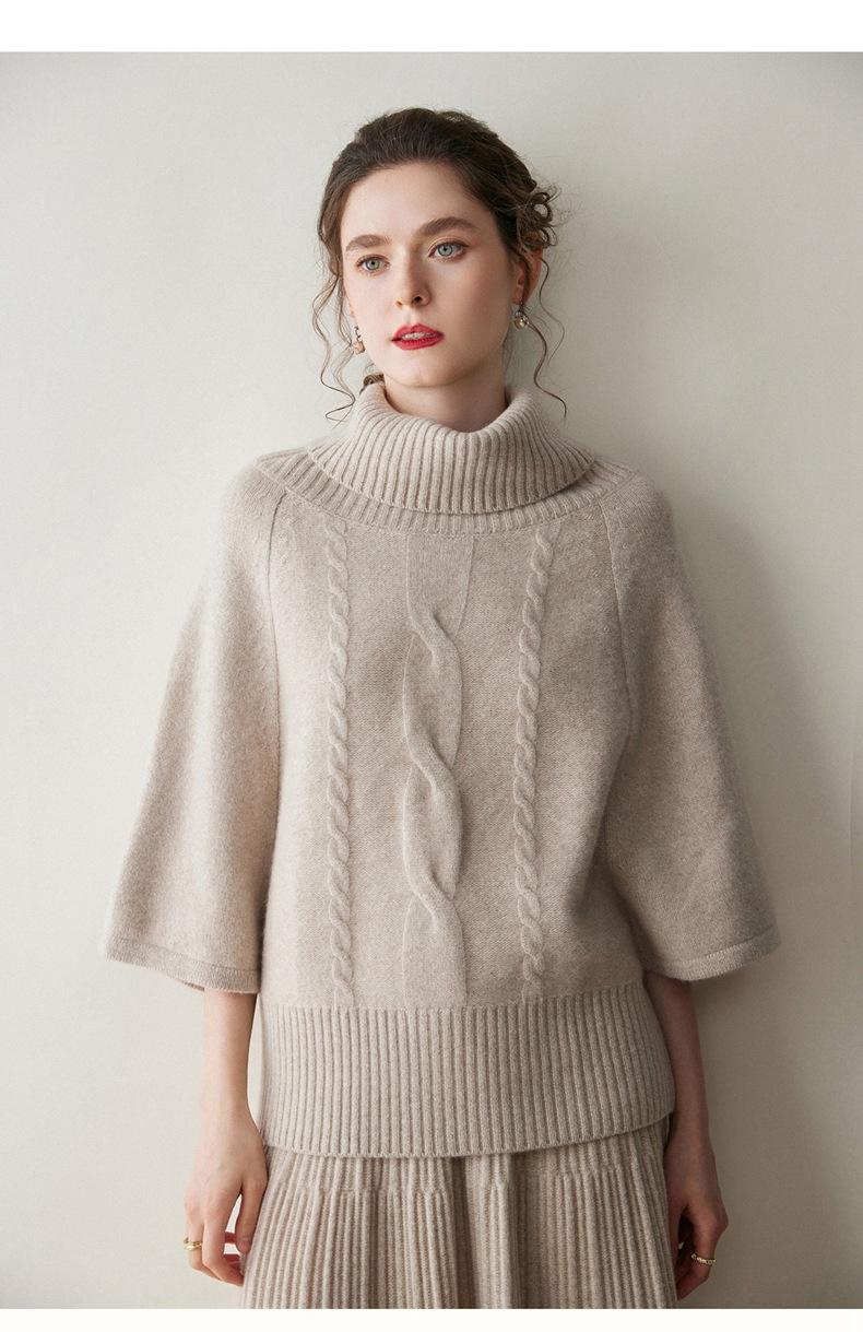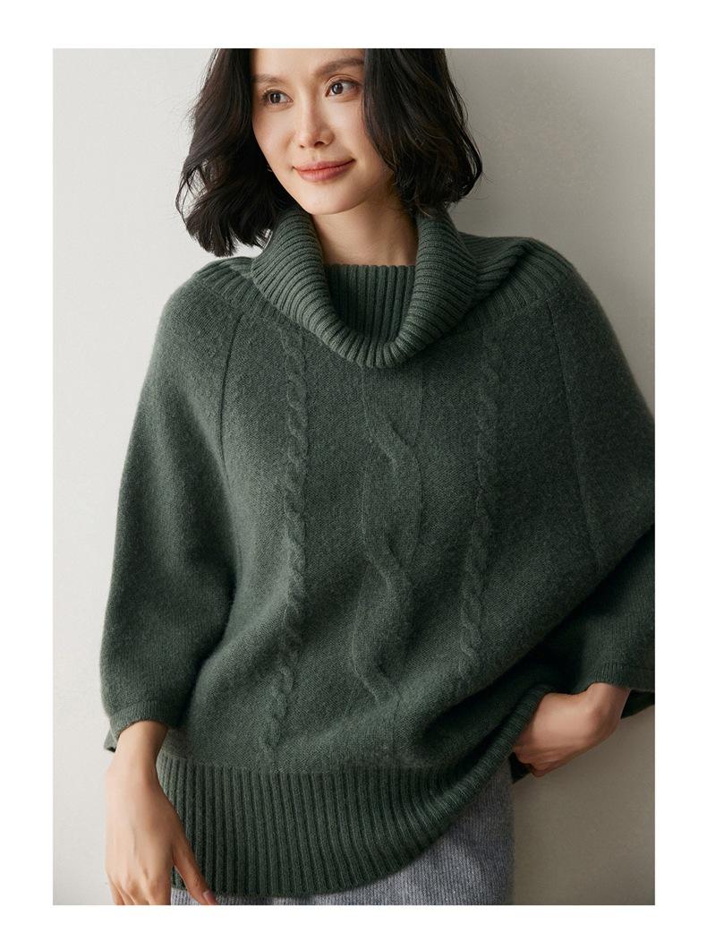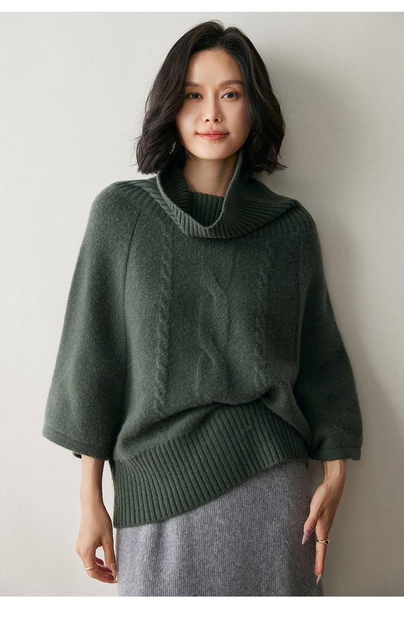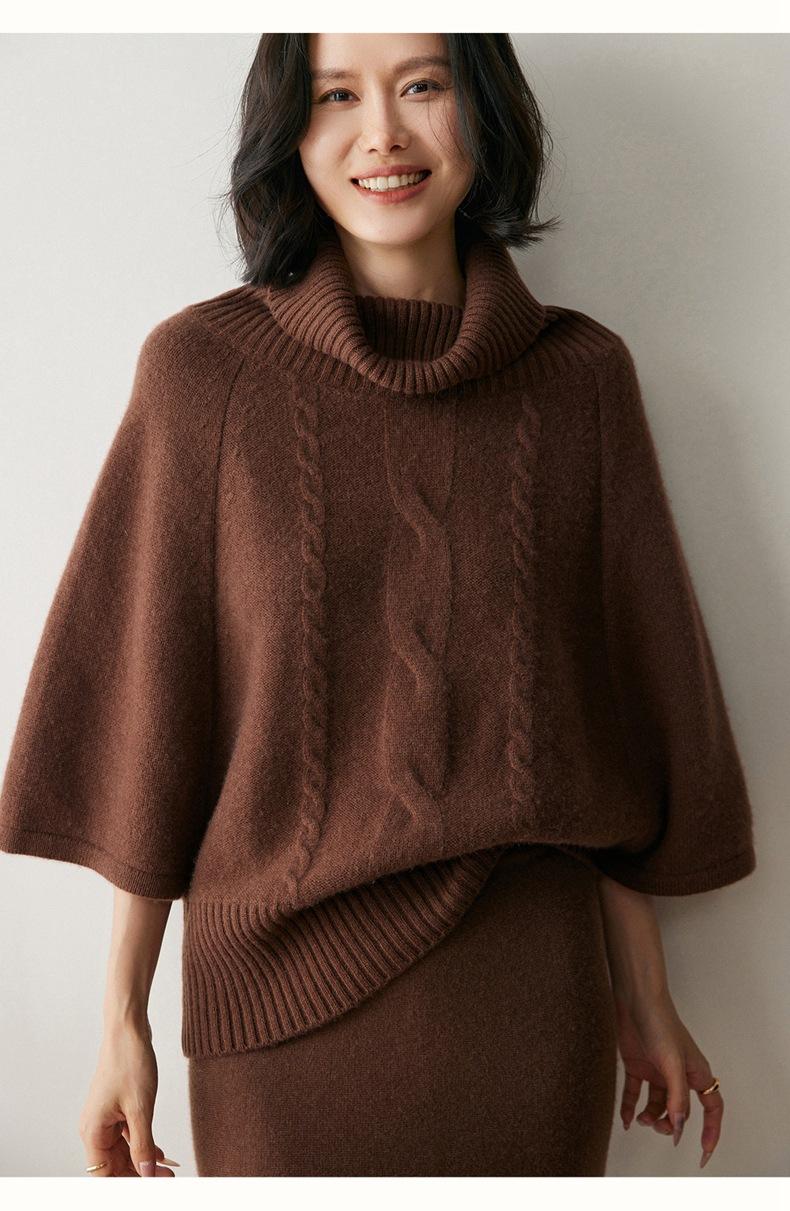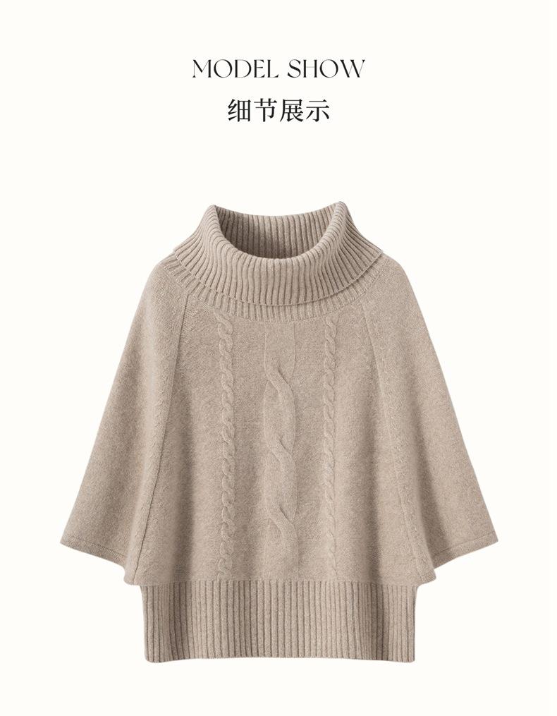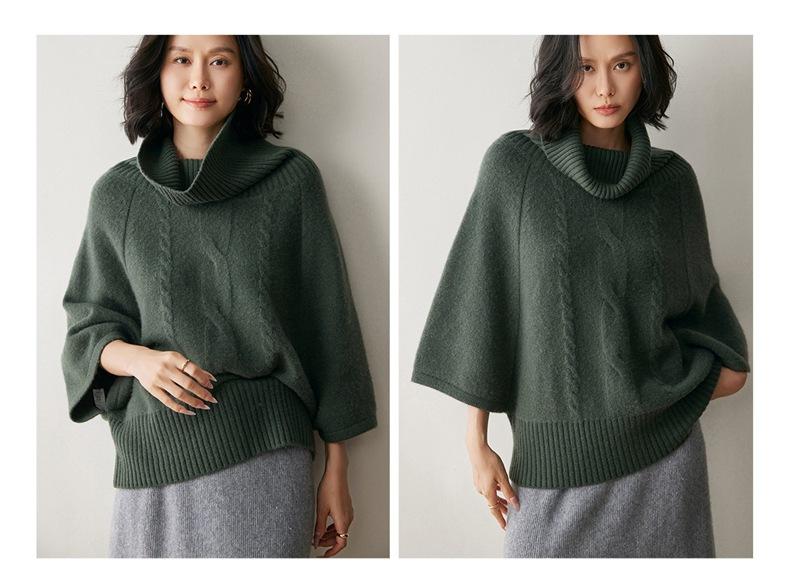 Top Chaleco de Lana de Punto Trenzado Retro de Cuello Alto para Mujer Cárdigan Capa Tejida Irregular Otoño Invierno Cachemira Chal Grueso