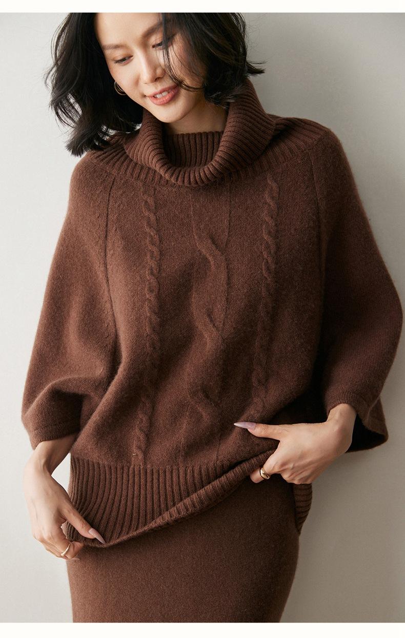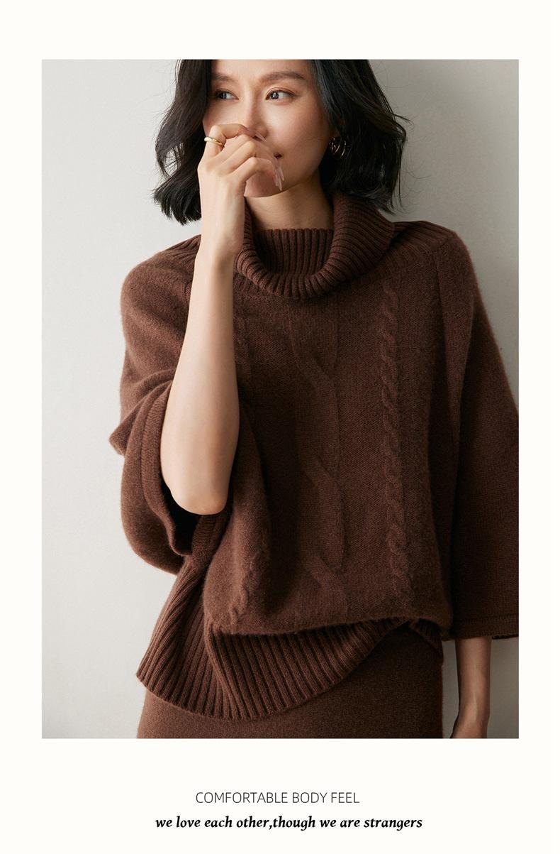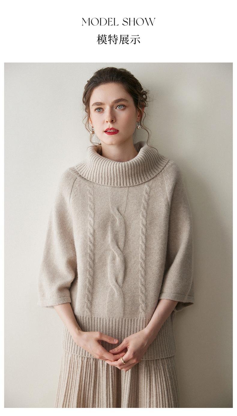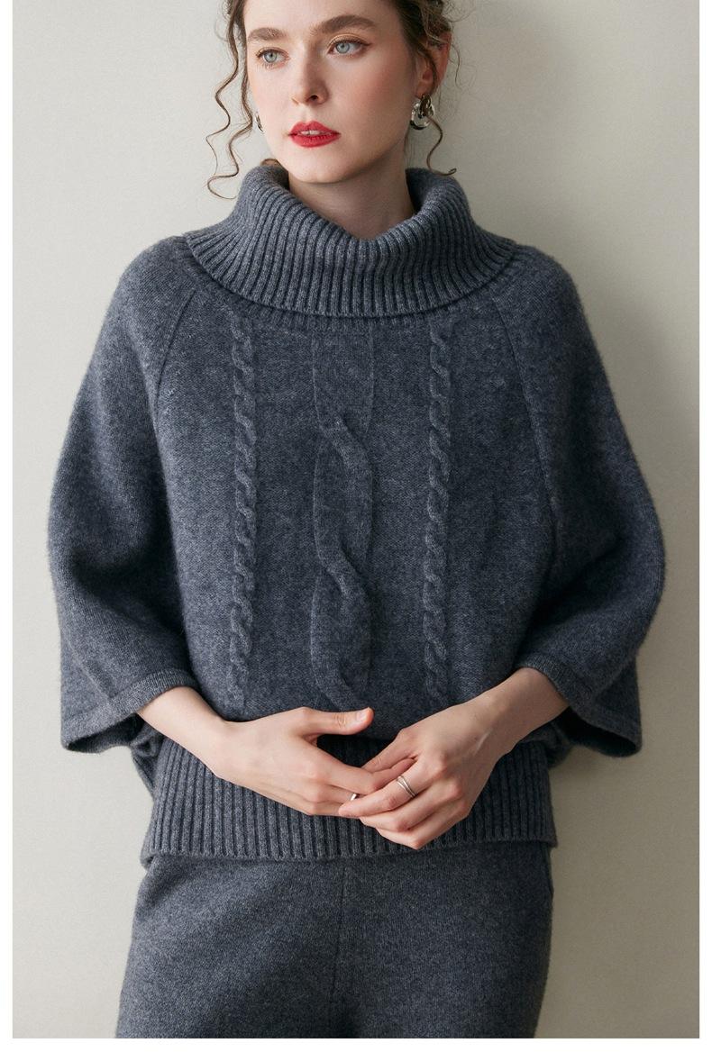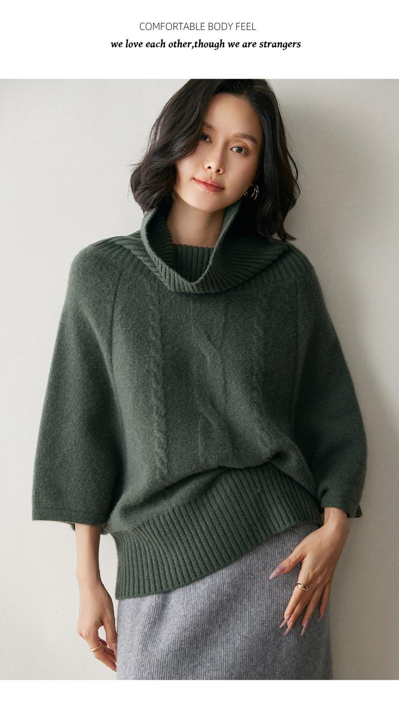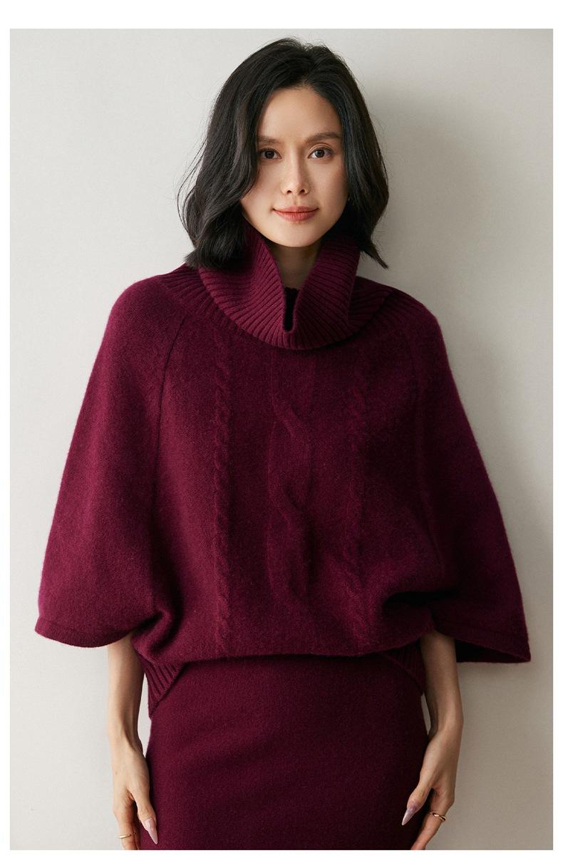 Top Chaleco de Lana de Punto Trenzado Retro de Cuello Alto para Mujer Cárdigan Capa Tejida Irregular Otoño Invierno Cachemira Chal Grueso