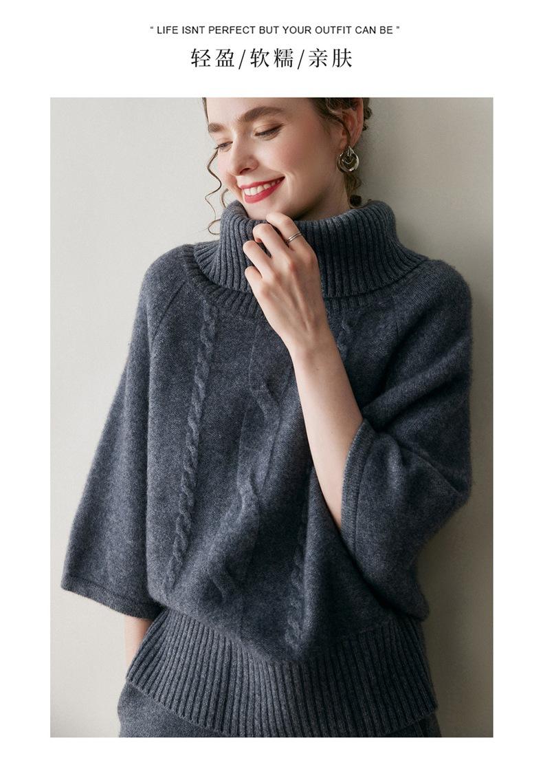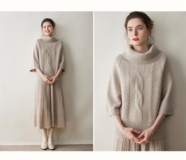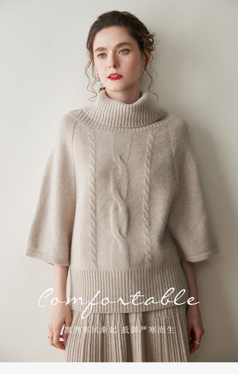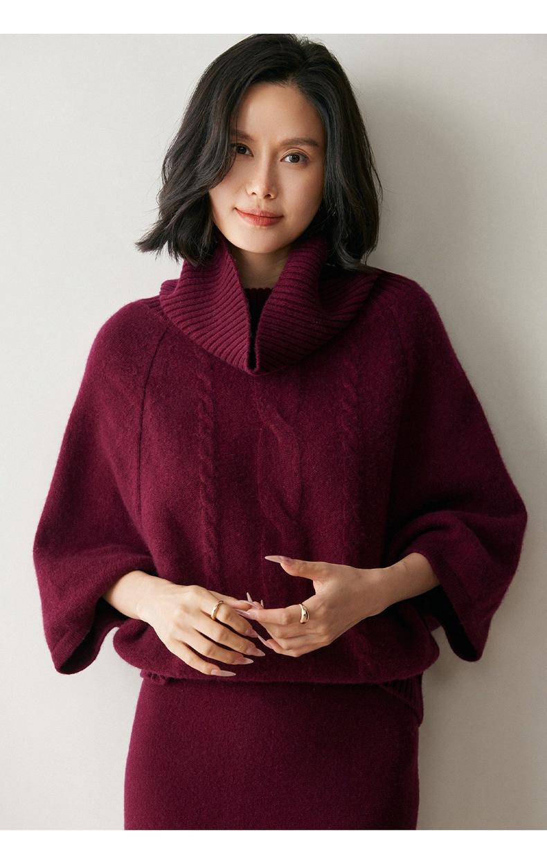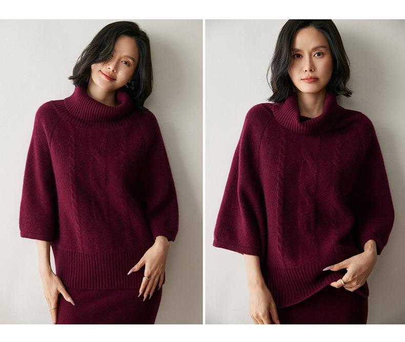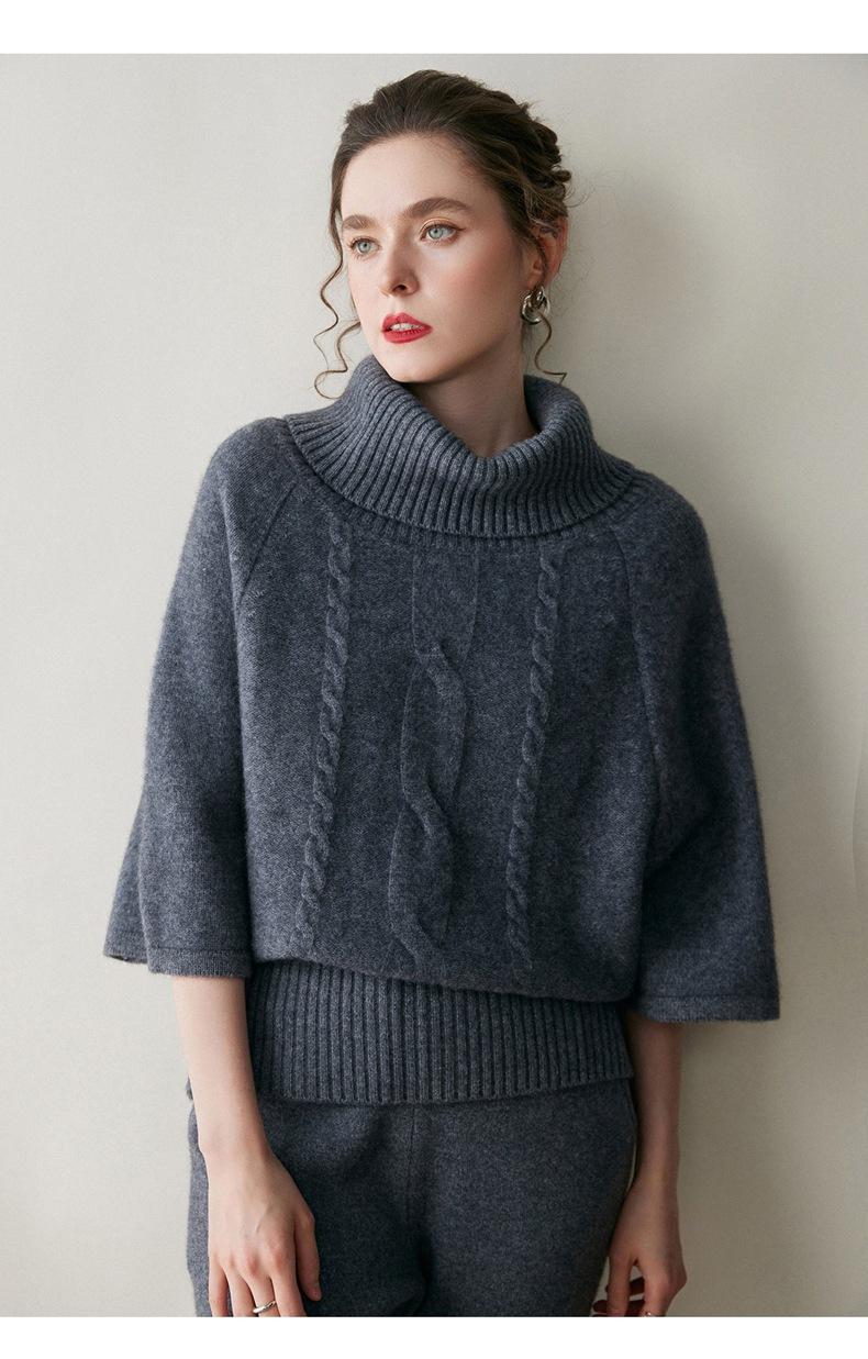 Top Chaleco de Lana de Punto Trenzado Retro de Cuello Alto para Mujer Cárdigan Capa Tejida Irregular Otoño Invierno Cachemira Chal Grueso