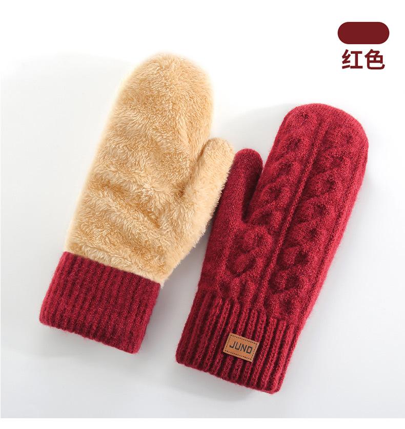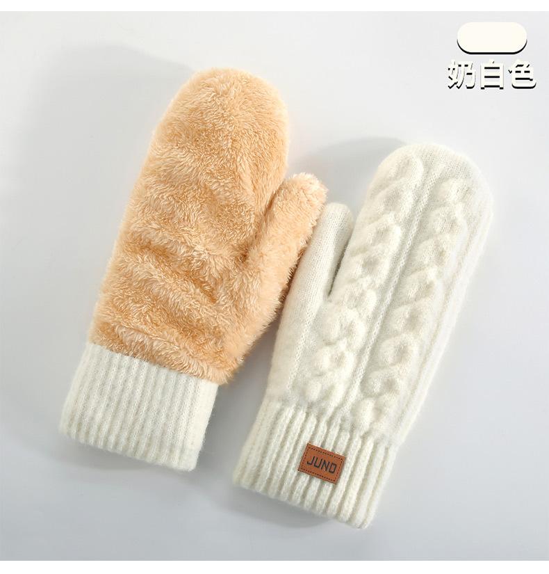 Guantes Cálidos de Invierno para Mujer Nuevos Mitones Forrados de Polar y Engrosados Cubrebolsa Doble Capa Dedos Guantes de Esquí Tejidos