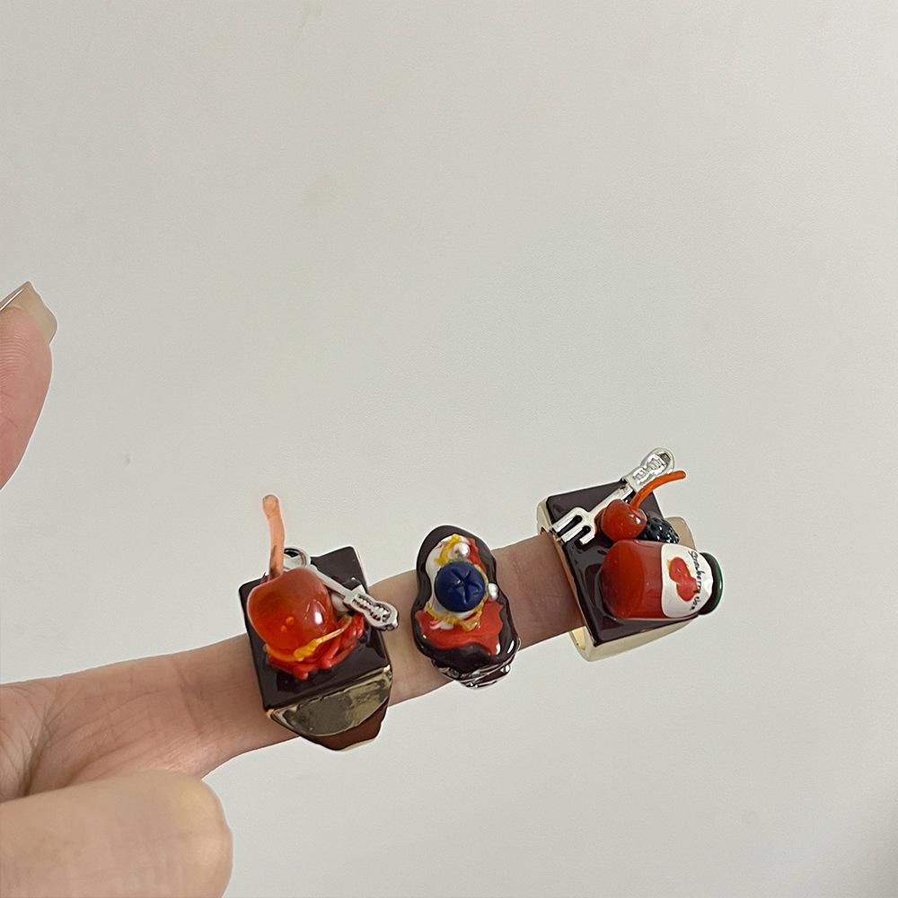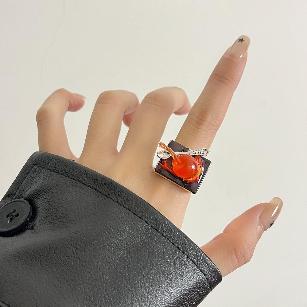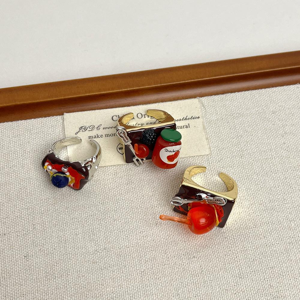 Anillo de Diseño Nicho Creativo Mini Estilismo de Alimentos para Mujer Vintage Personalizado Esmalte Goteado Abierto para Dedo Índice