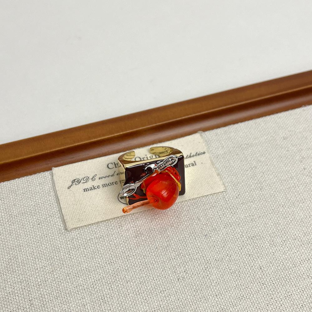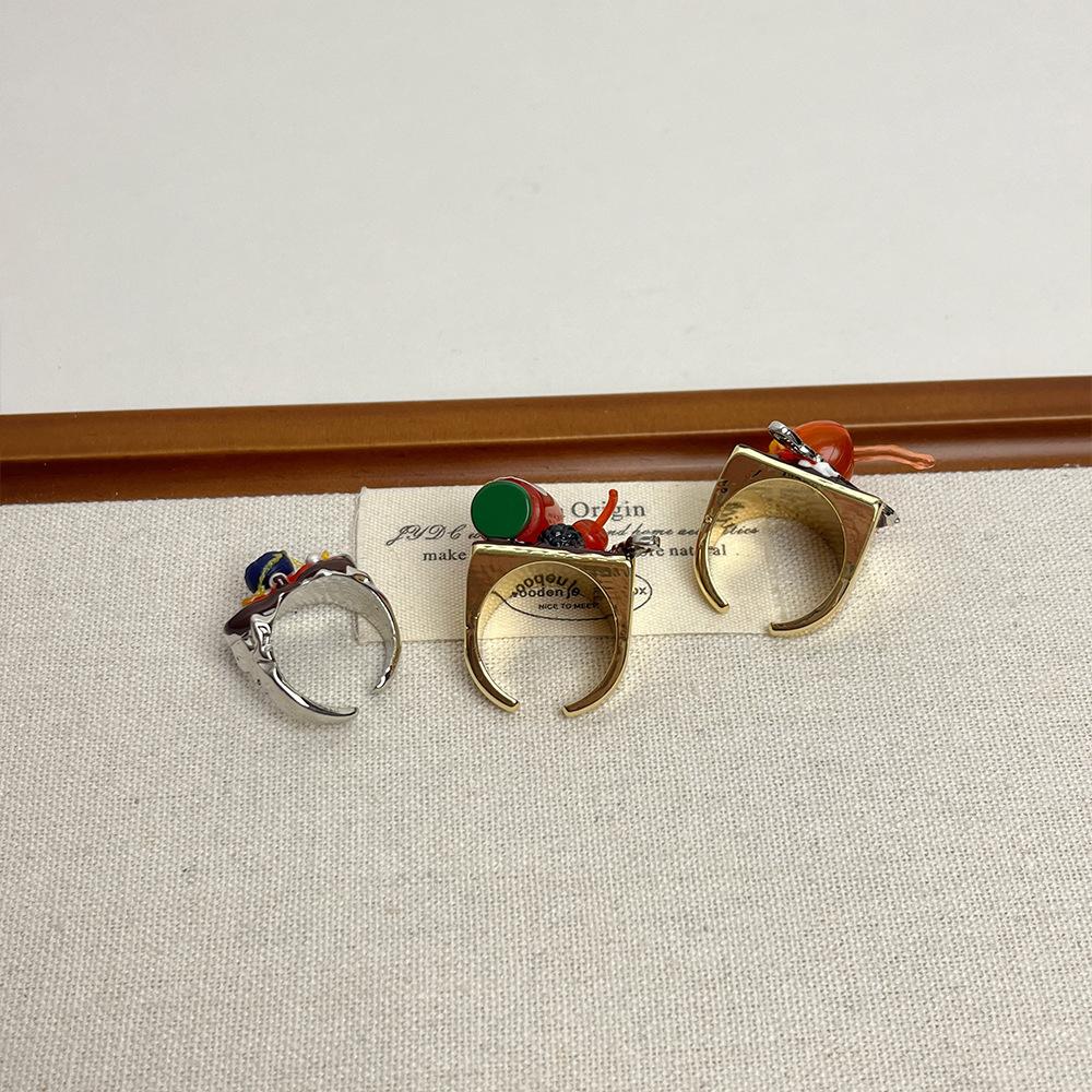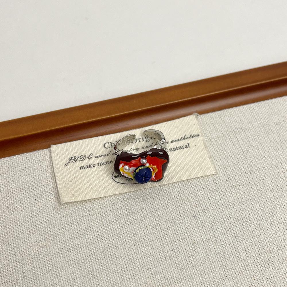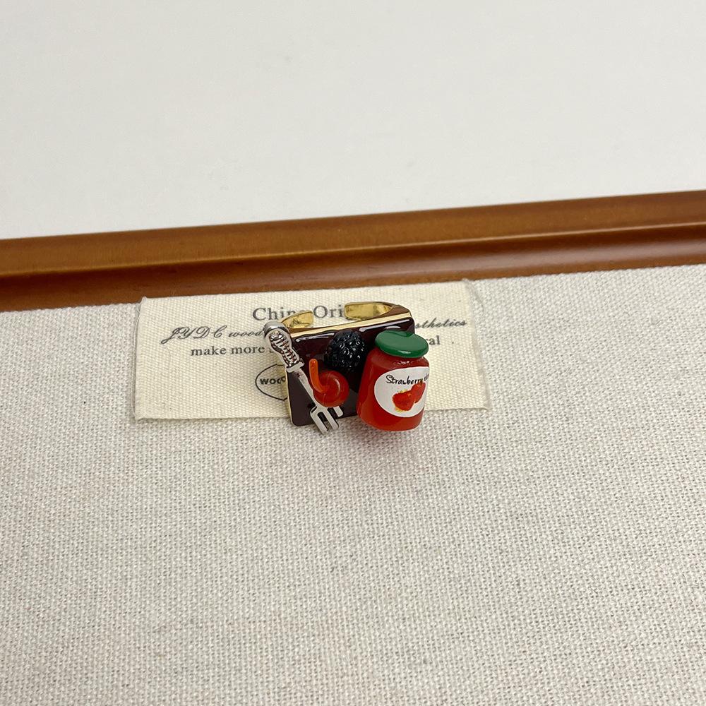 Anillo de Diseño Nicho Creativo Mini Estilismo de Alimentos para Mujer Vintage Personalizado Esmalte Goteado Abierto para Dedo Índice