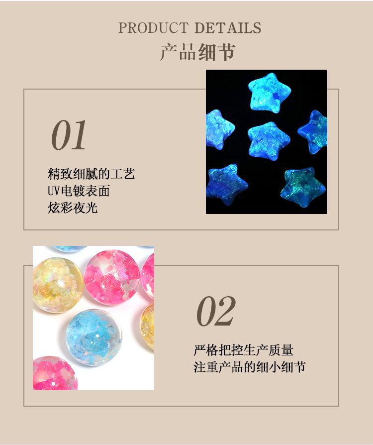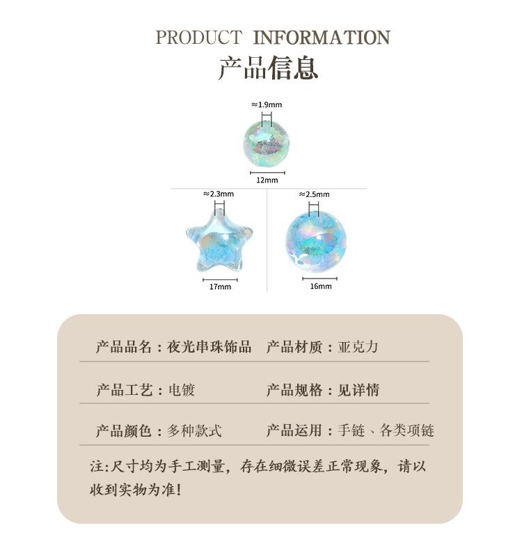 Luminous acrylic beads (1), Luminous acrylic beads (2), Glow-in-the-dark star beads