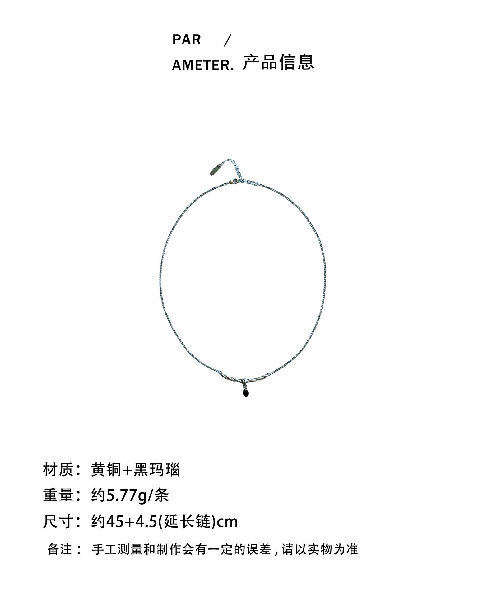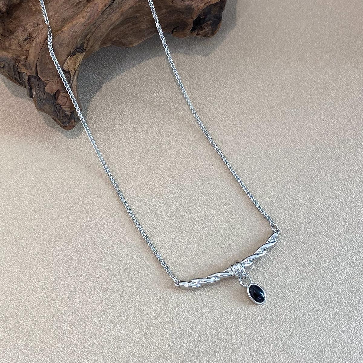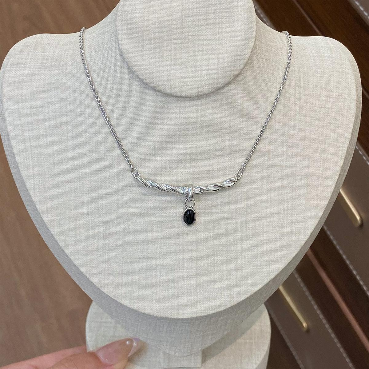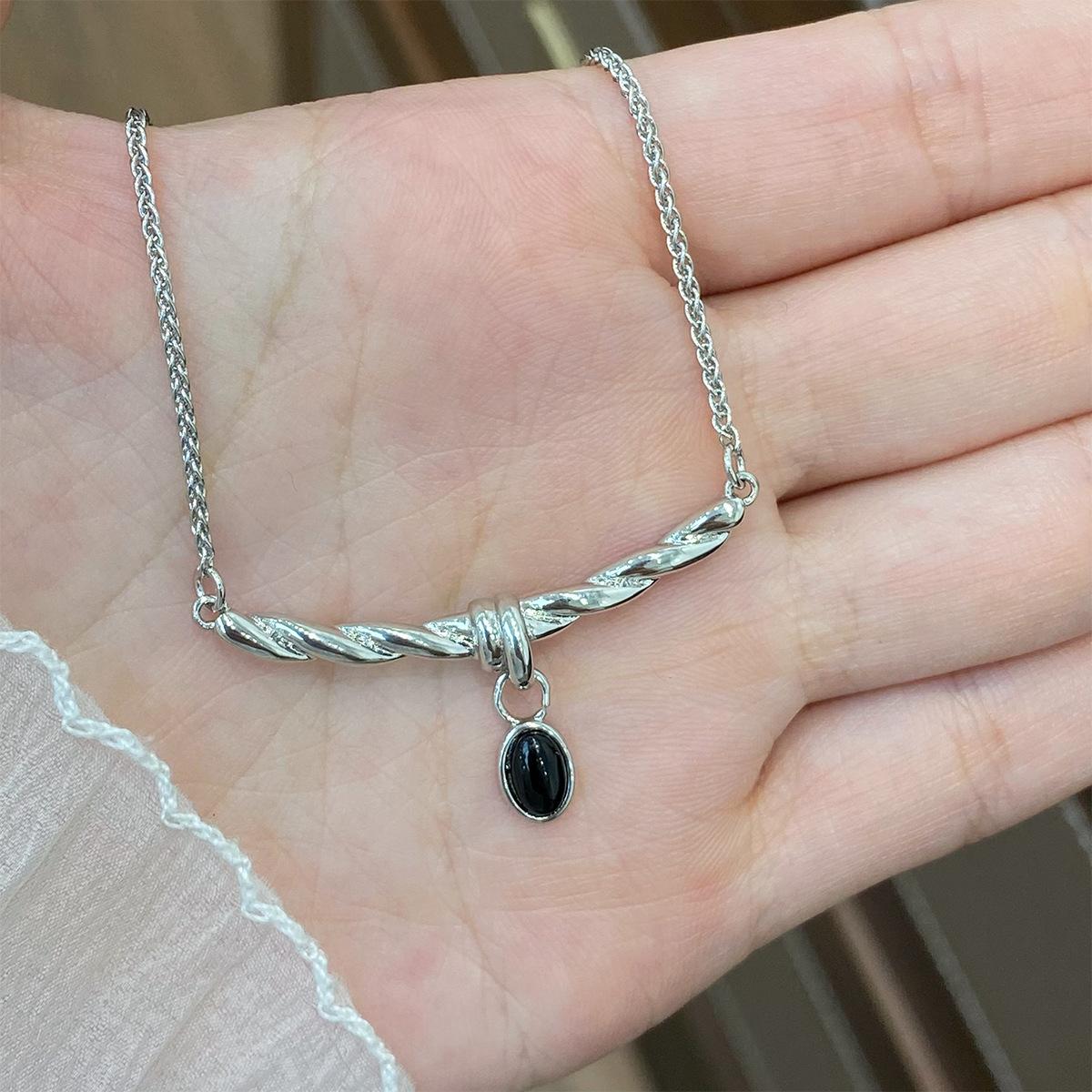 Collar para Mujer con Colgante Ovalado de Ágata Negra de Diseño Retro Europeo y Americano, Nicho de Lujo Ligero, Versátil, Cadena para Clavícula de Alta Gama