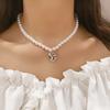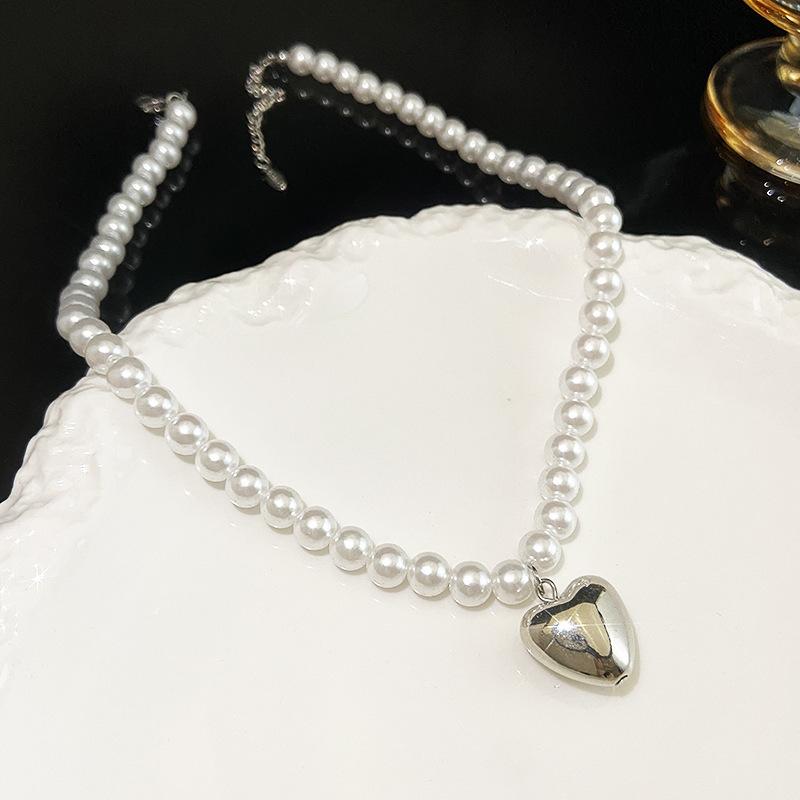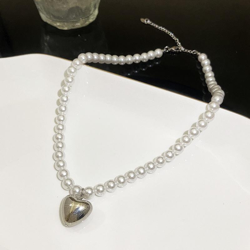 Collar de Perlas de Amor, Cadena Simple y Versátil para la Clavícula, Collar de Diseño Retro Francés, Venta al por Mayor para Mujeres