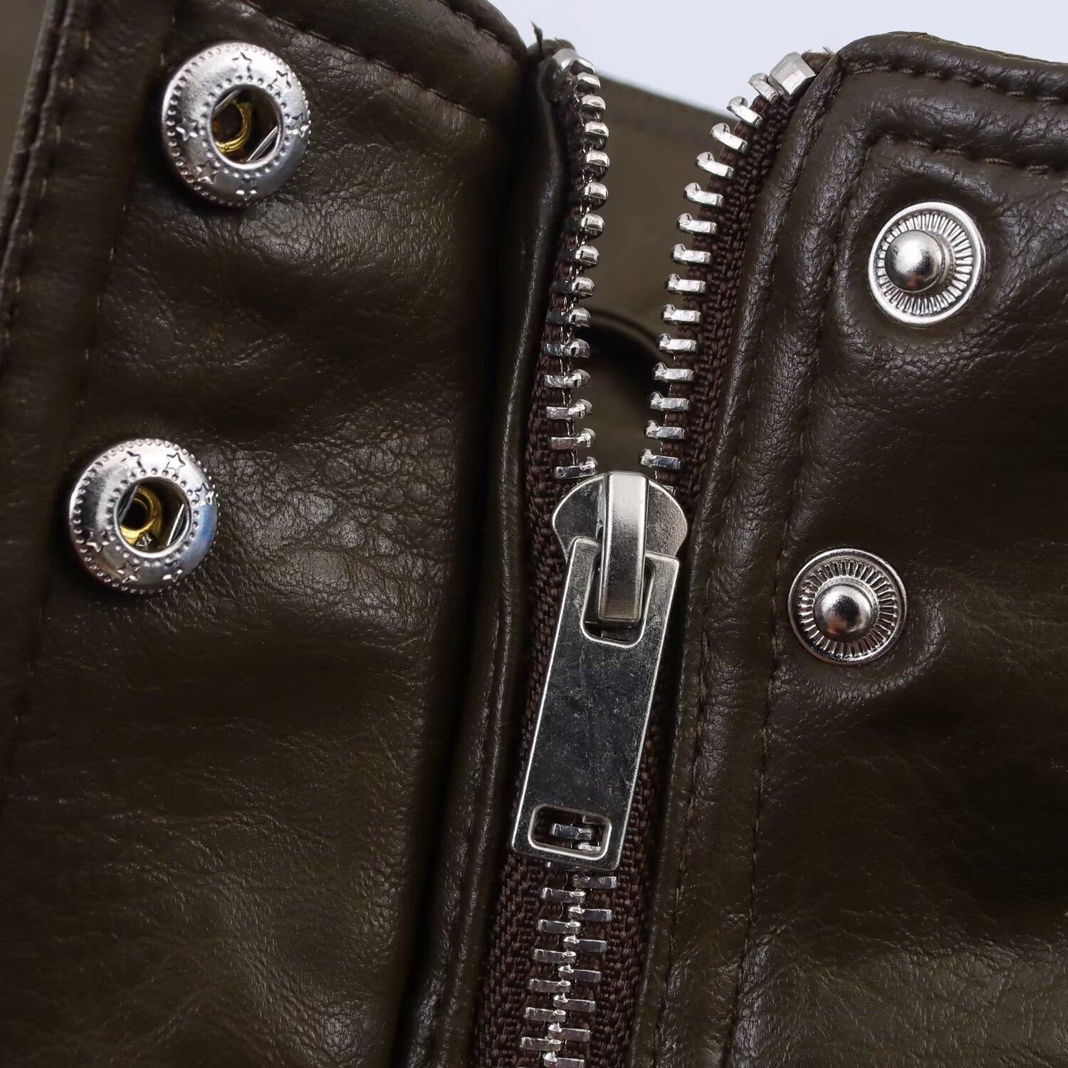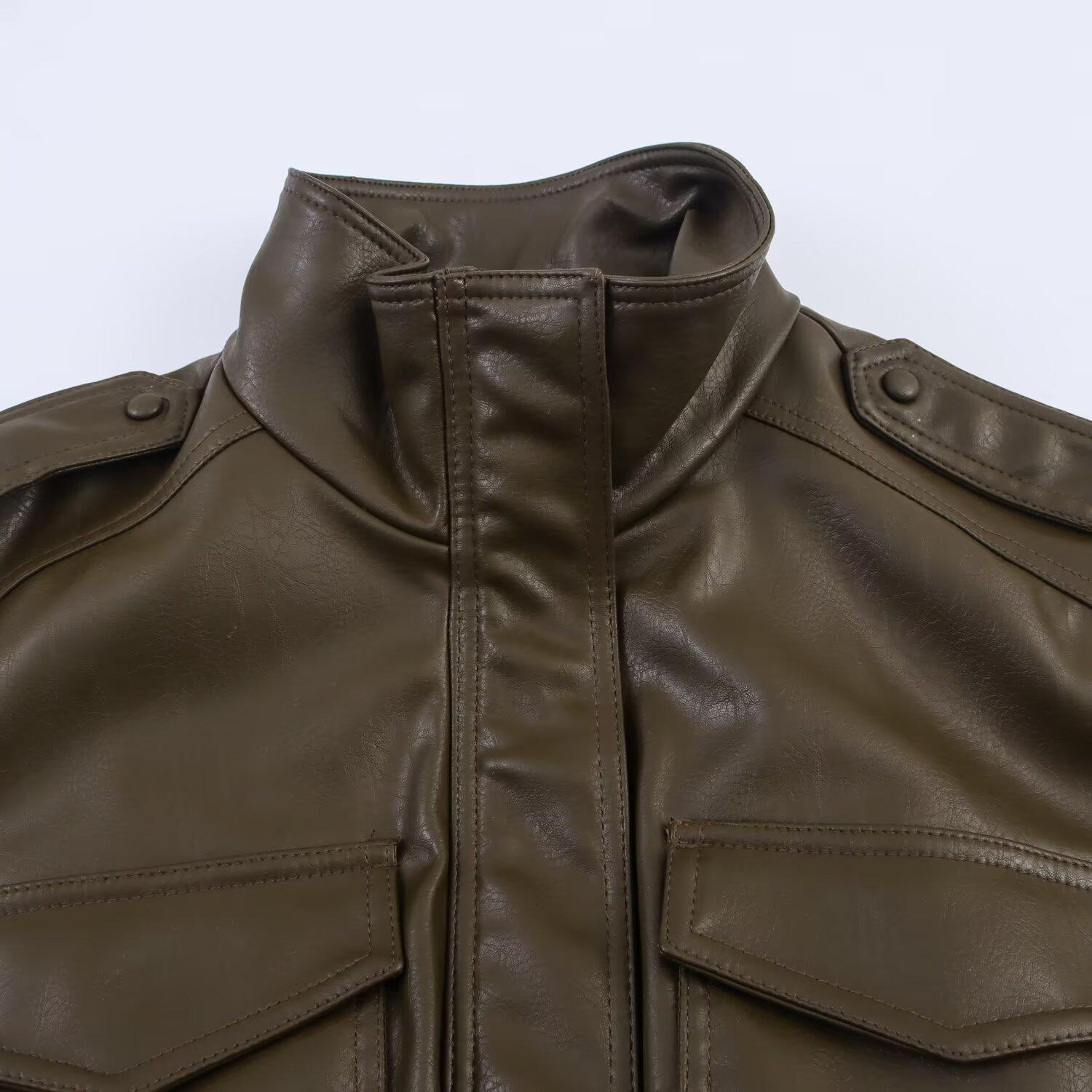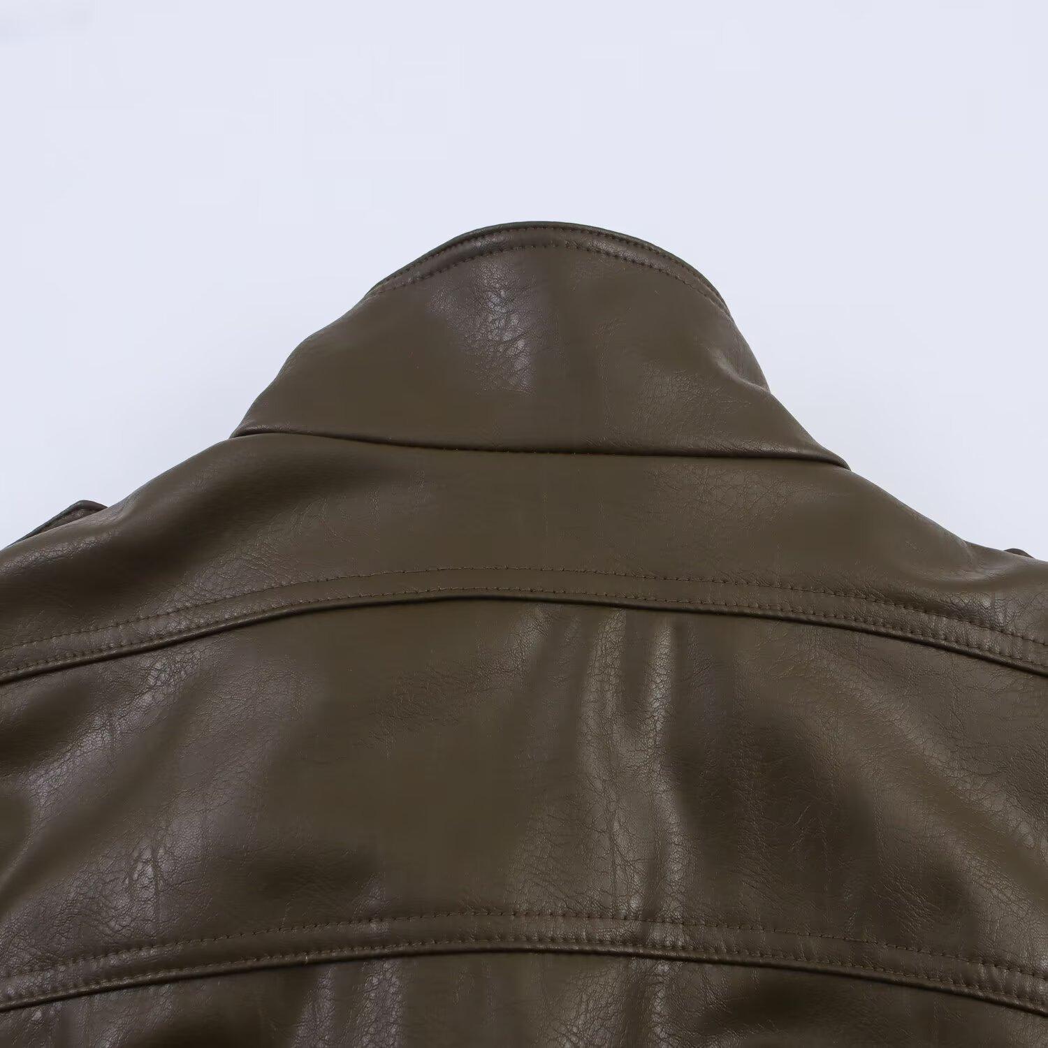 2025 Otoño Nuevo Europeo y Americano Transfronterizo Moda Urbana para Mujer Casual Piel Sintética Chaqueta Corta w025 11796