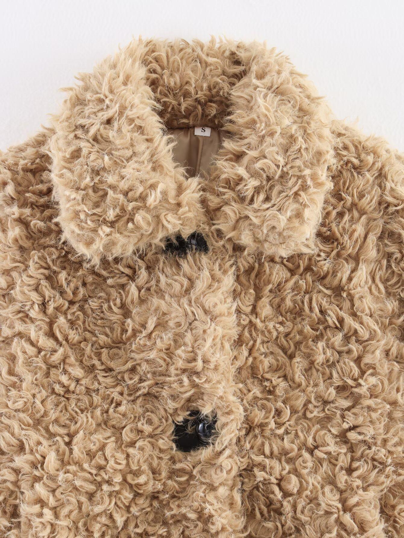 2025 Otoño/Invierno Nuevo Abrigo de Shearling con Solapa de Moda Urbana para Mujer Transfronterizo Europeo y Americano w050 5076