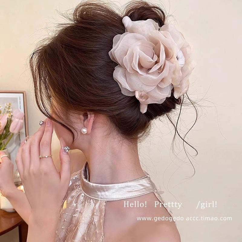 Pinza para el Cabello Delicada de Flor y Perla para Mujer, Sentido de Alta Gama 2025 Nueva Pinza de Tiburón para la Parte Trasera de la Cabeza, Accesorios para el Cabello