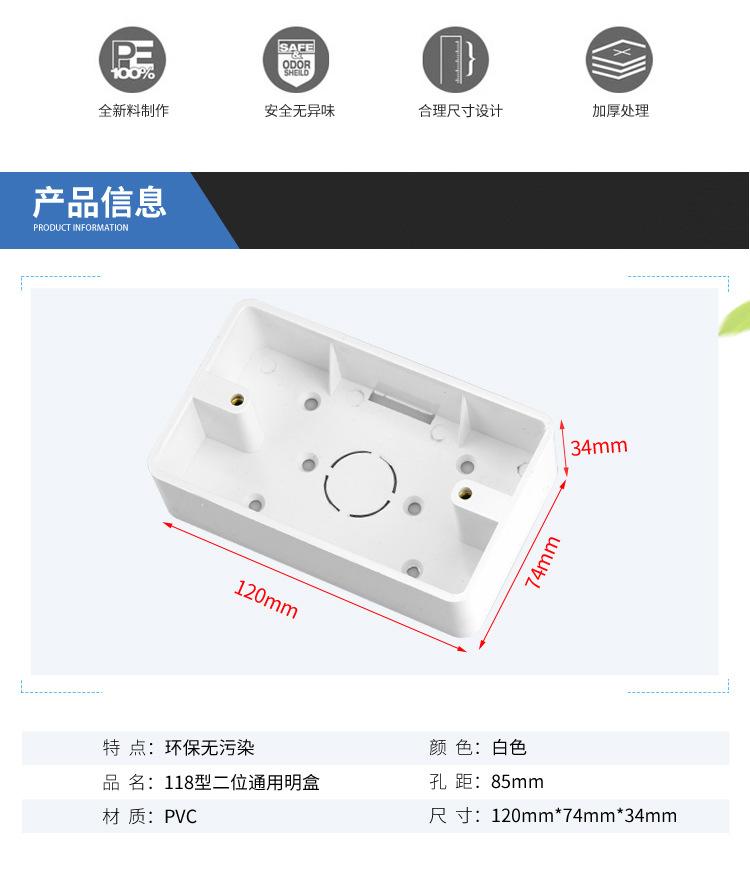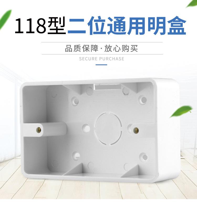 Caja Ming tipo 118 de dos posiciones caja abierta para cableado vista PVC engrosado retardante de llama caja abierta interruptor toma de corriente canaleta caja de conexiones