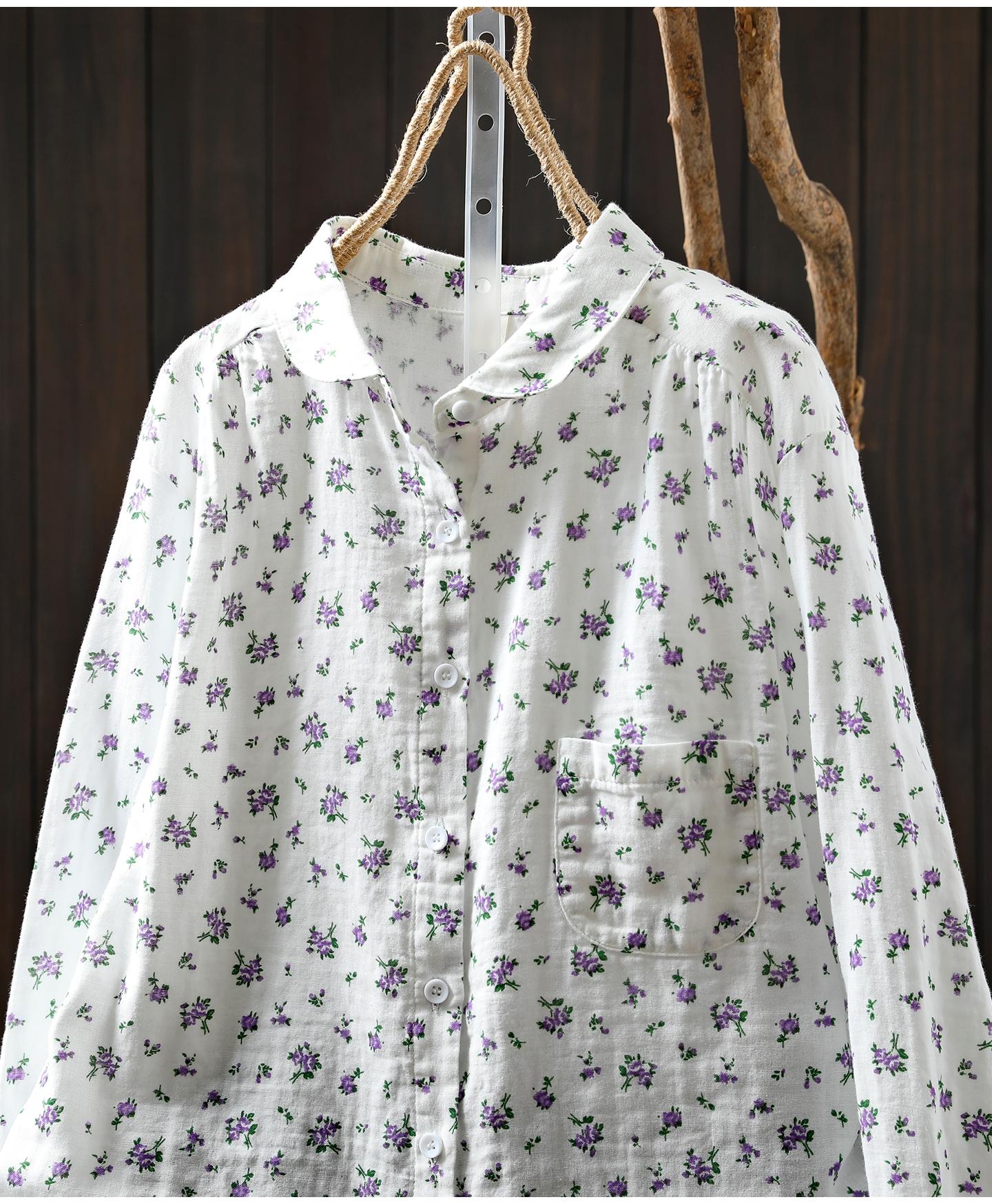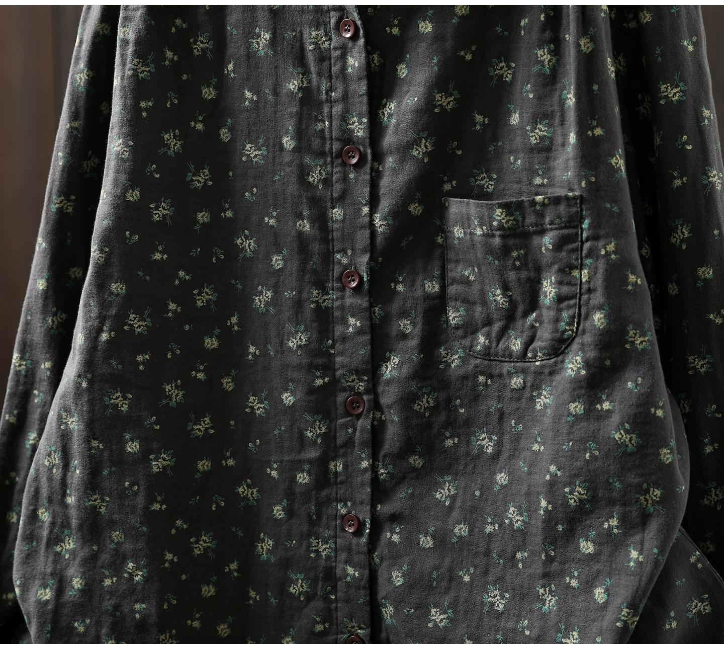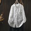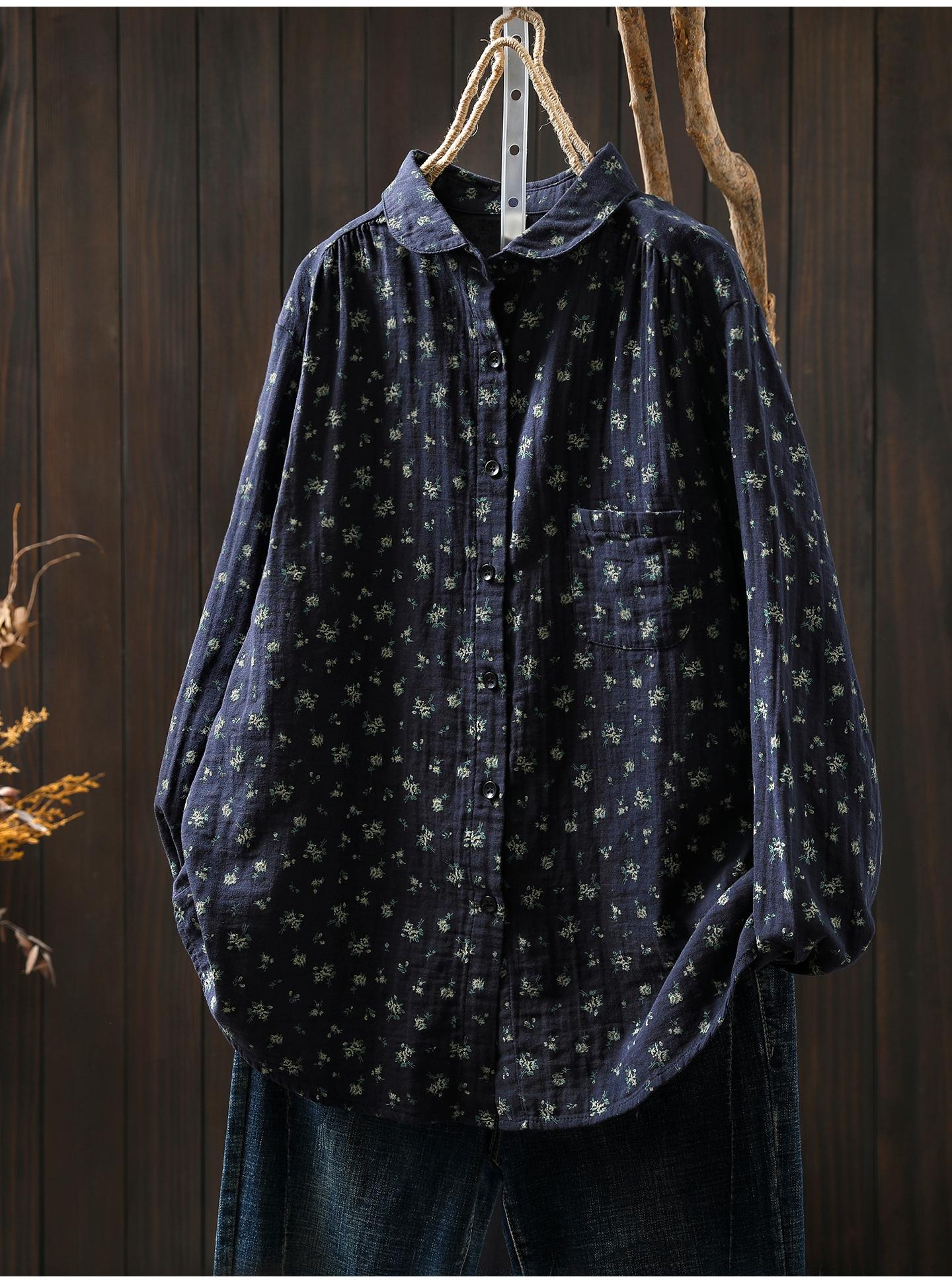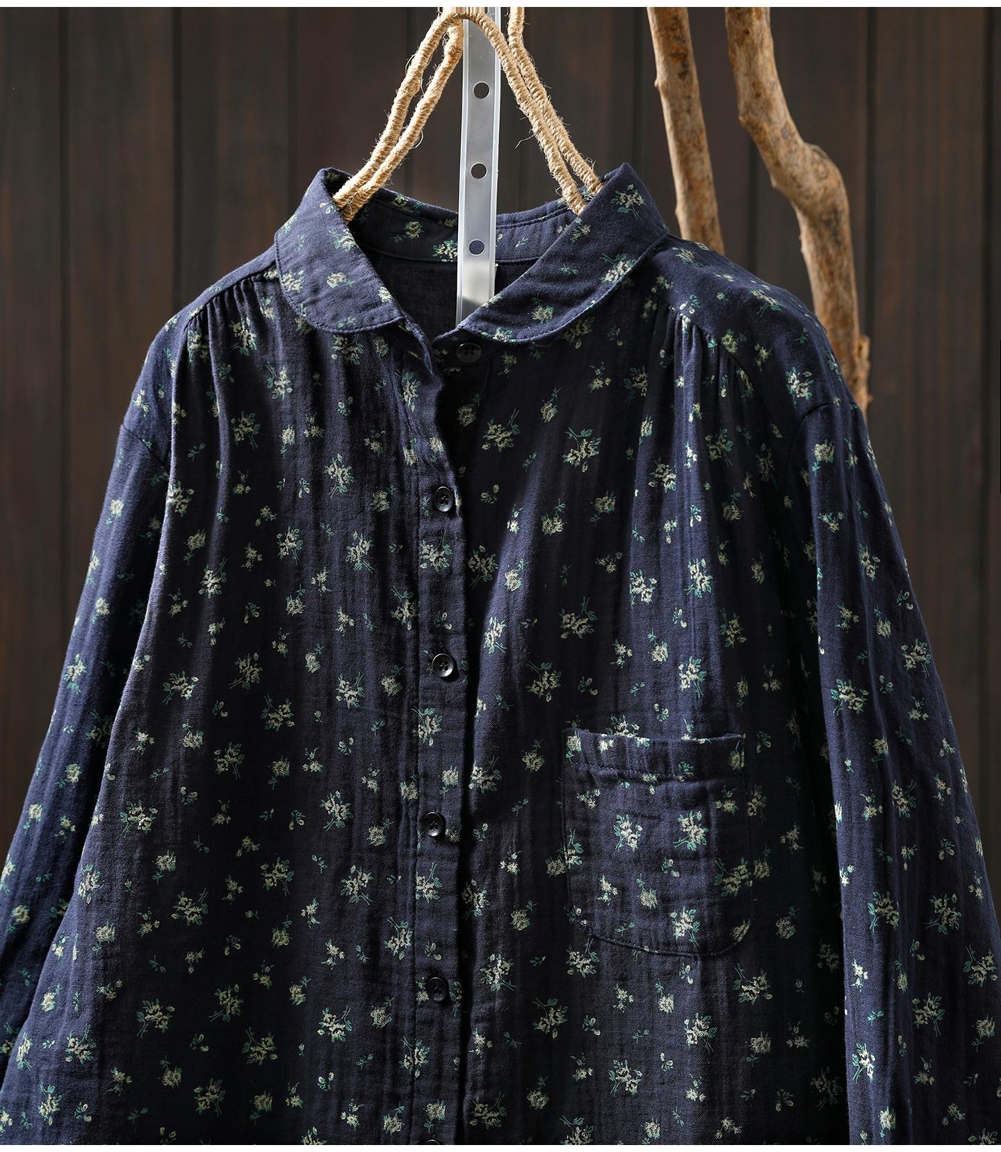Camisa de mujer 2025 nueva doble capa gasa de algodón floral retro artística versátil holgada adelgazante manga larga