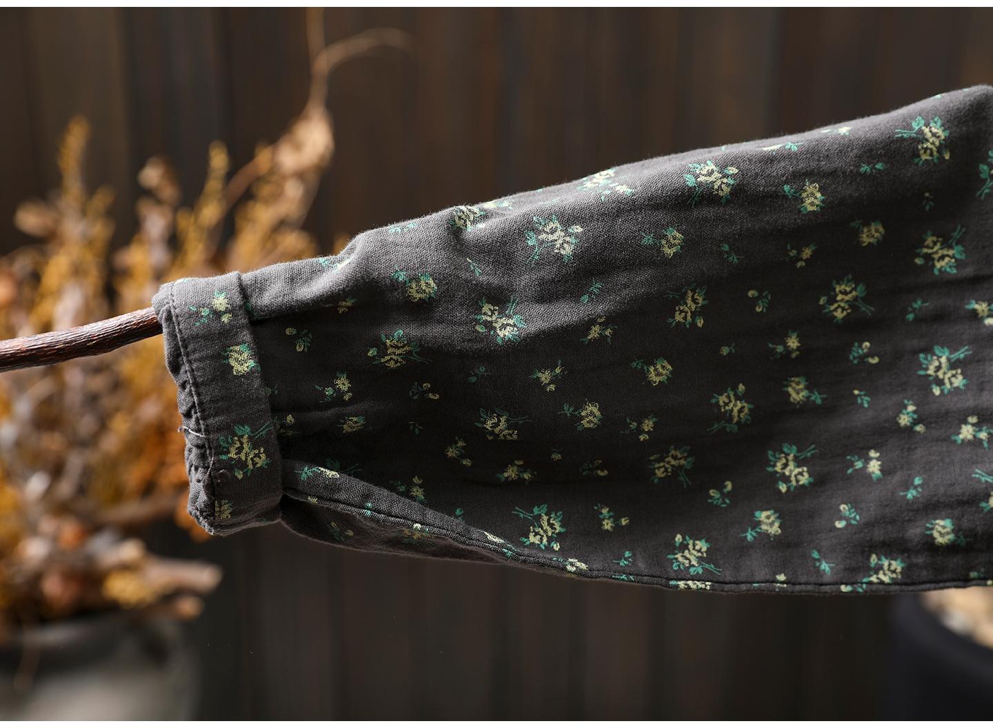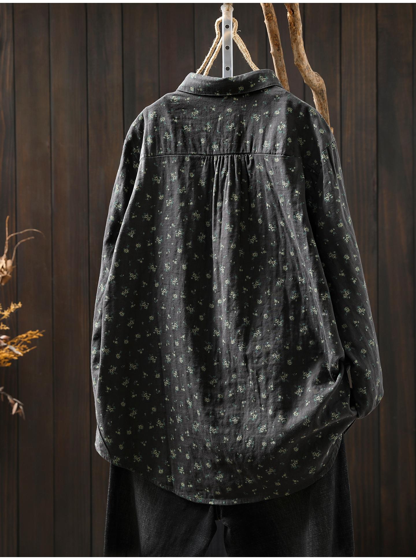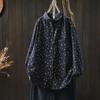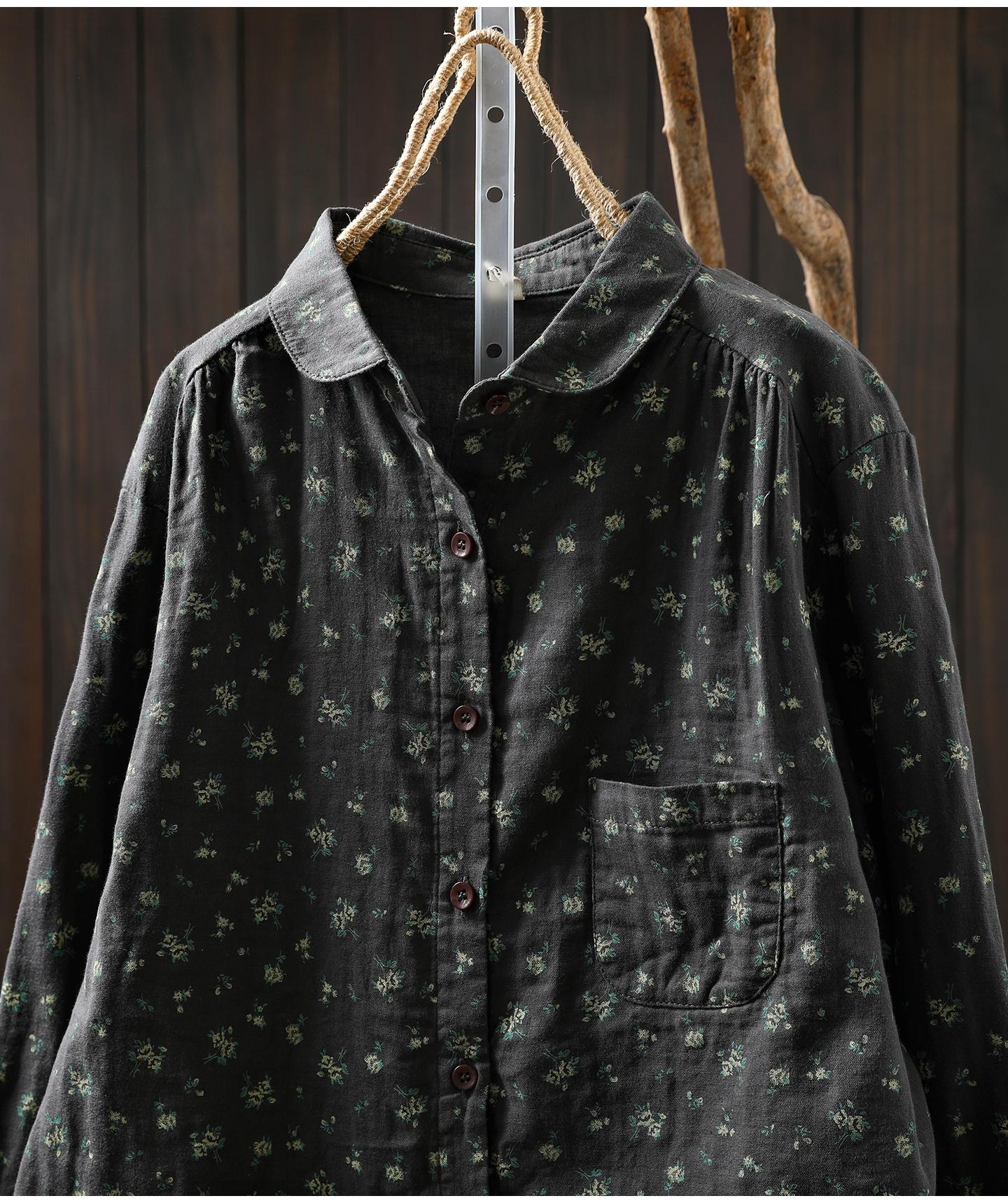 Camisa de mujer 2025 nueva doble capa gasa de algodón floral retro artística versátil holgada adelgazante manga larga