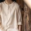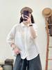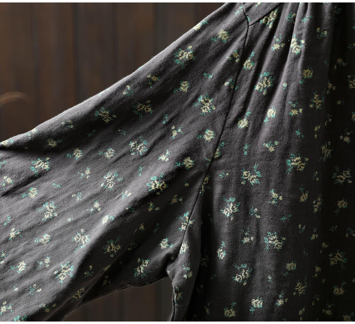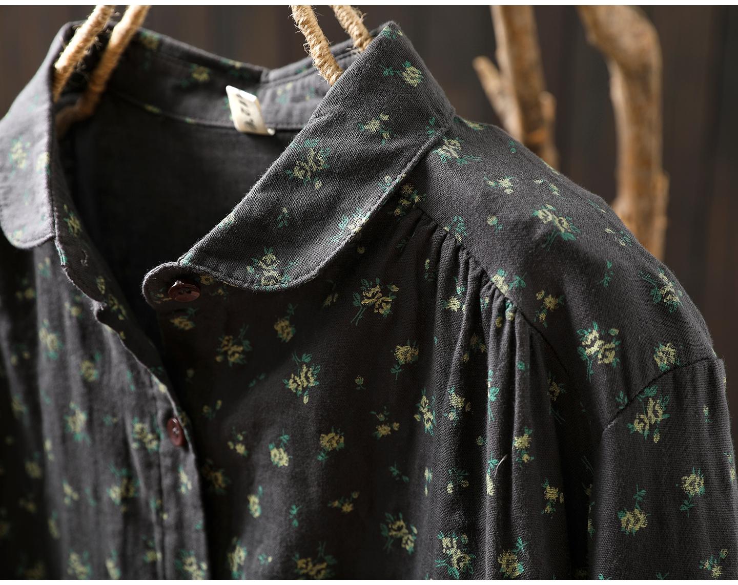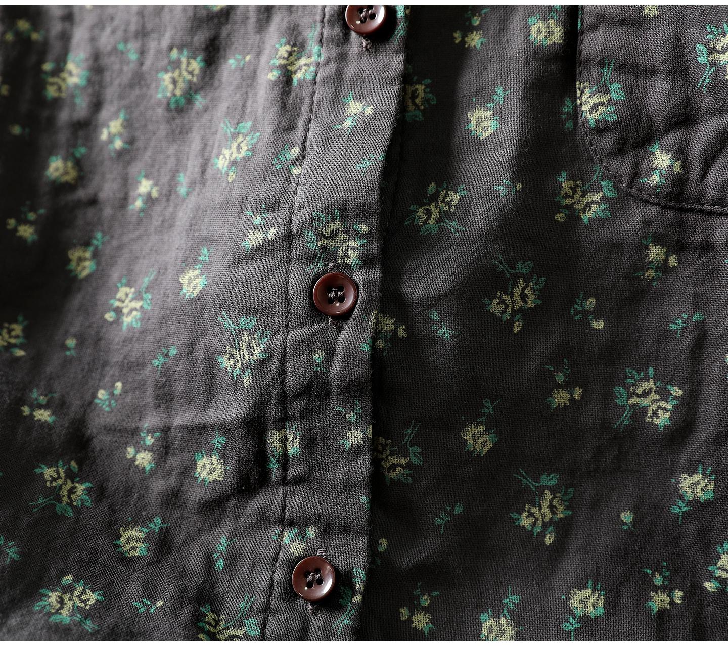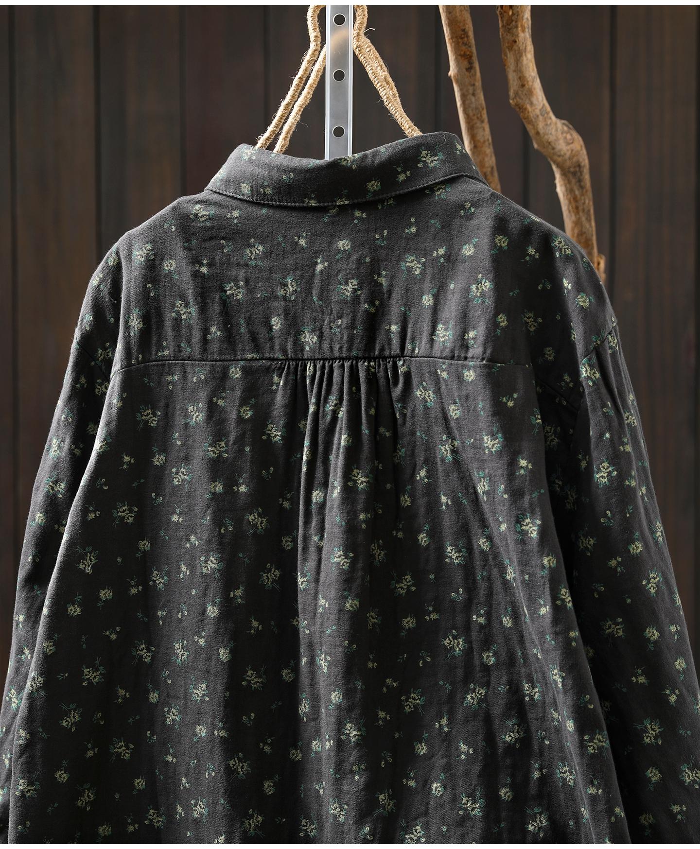 Camisa de mujer 2025 nueva doble capa gasa de algodón floral retro artística versátil holgada adelgazante manga larga