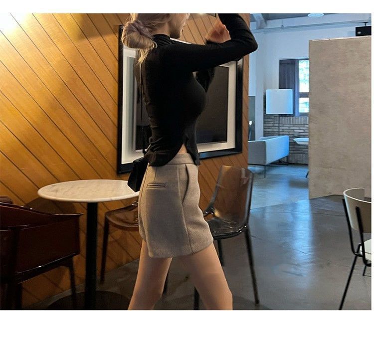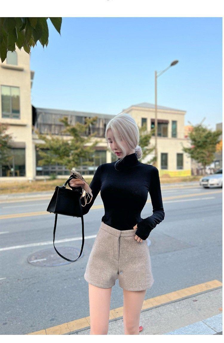 Camiseta de cuello alto ajustada para mujer, irregular, sexy, de manga larga, ajustada, con cuello apilado, top sencillo que combina con todo.